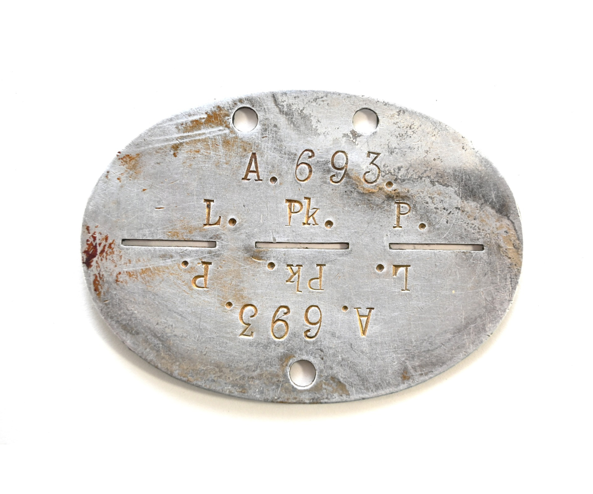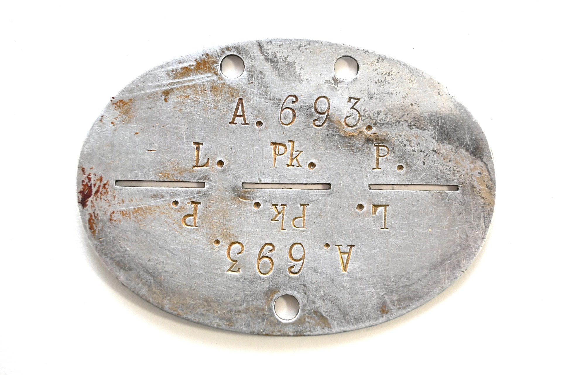 The tag shows overall normal signs of wear. It belonged to a member/civlian who served within the Luftpark Paderborn. This was the supply and repair depots of Fliegerhorst Paderborn where aircraft were serviced, repaired, stored, or equipped before being sent to front-line units.
