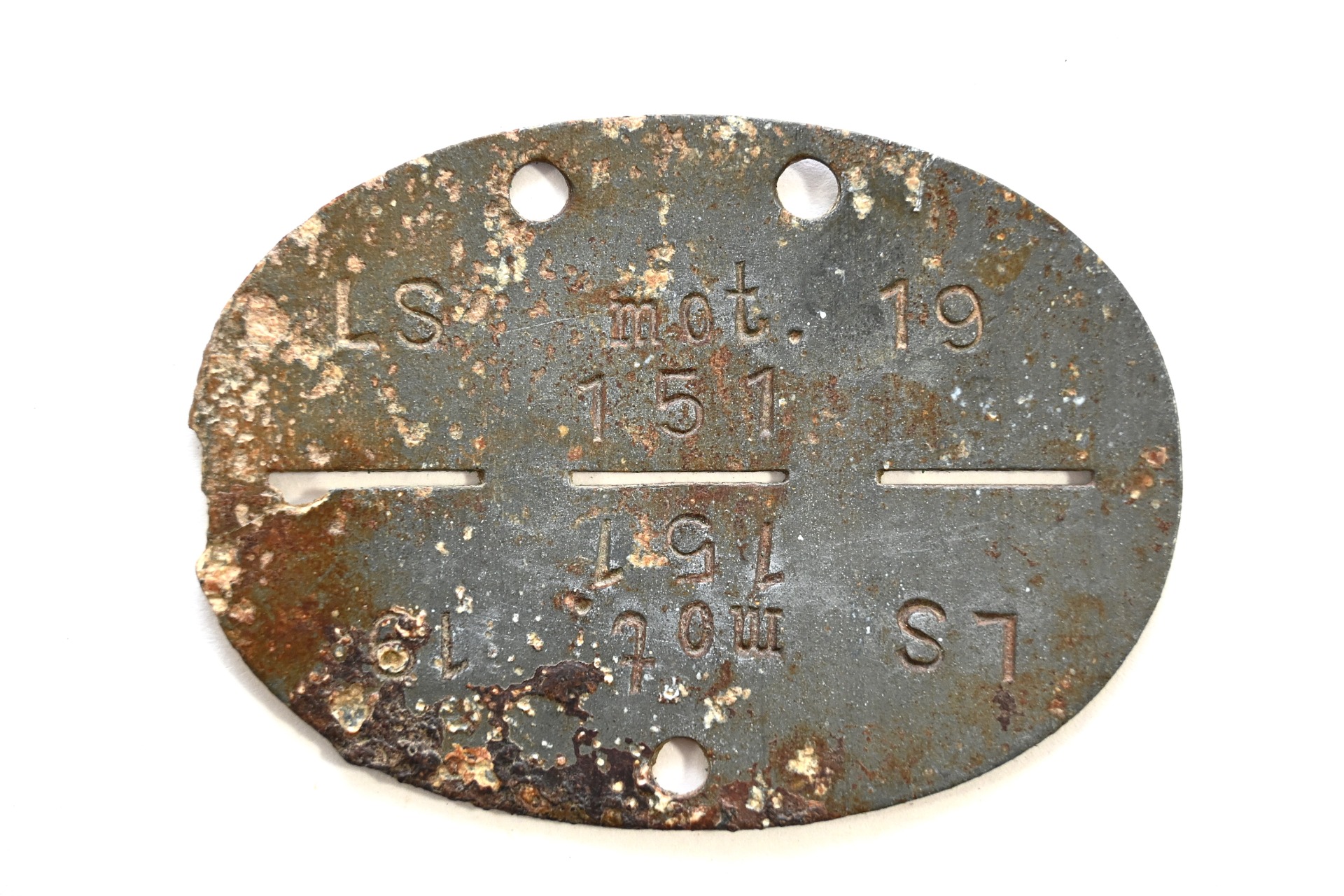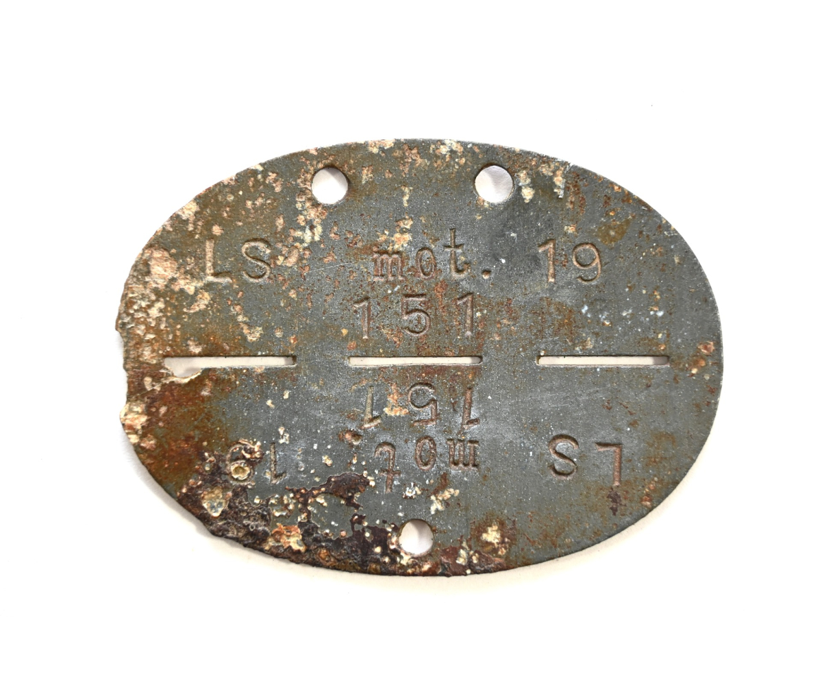 The tag or 'Erkennungsmarke' shows overall signs of wear. It belonged to a member who served within the Luftschutz Abteilung (mot) der Luftwaffe 19.
