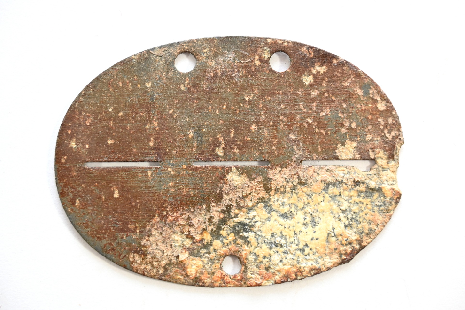 Worn zinc Luftschutz related tag.
