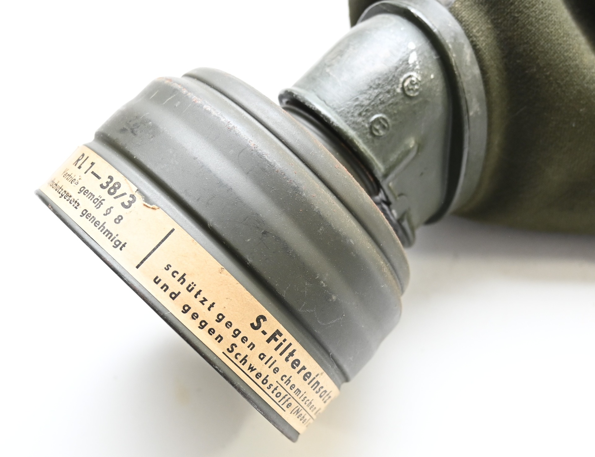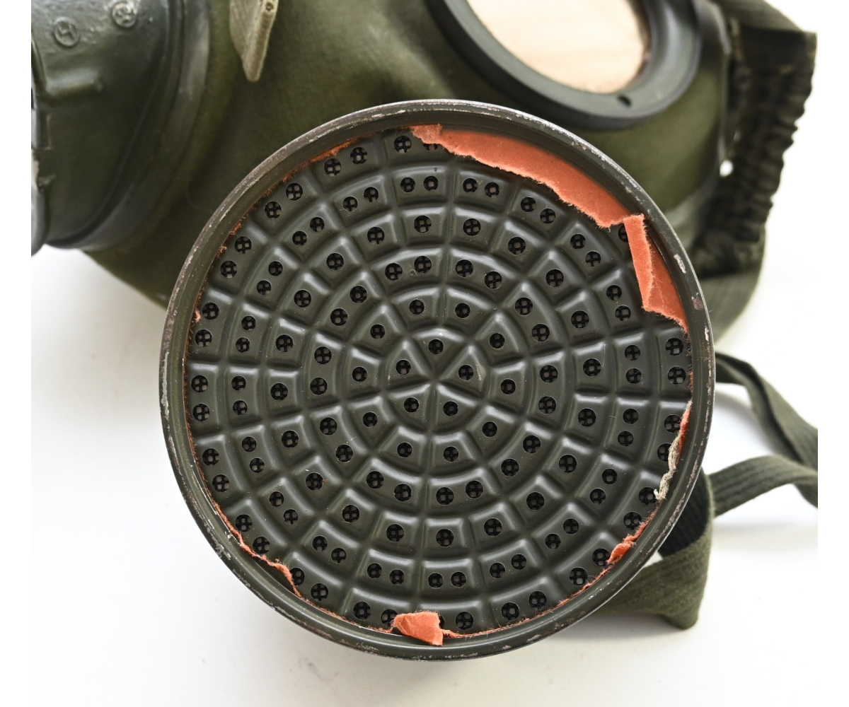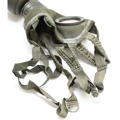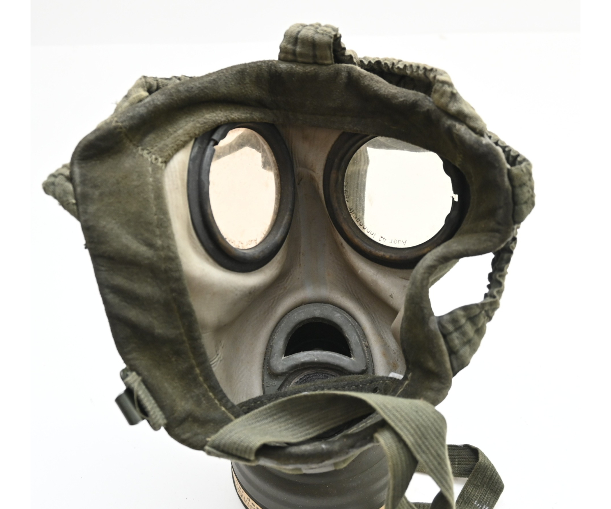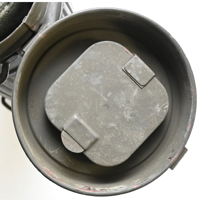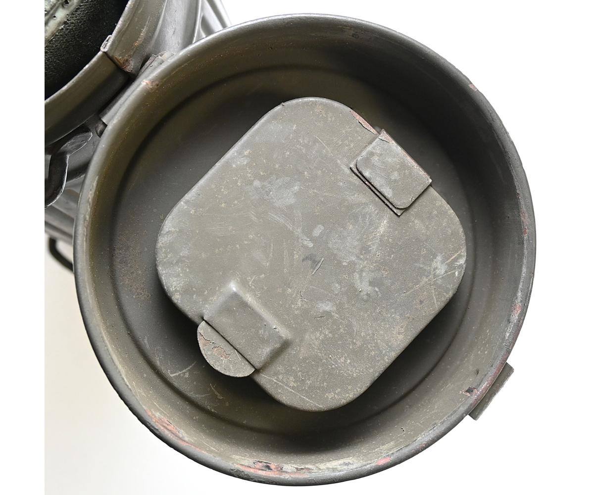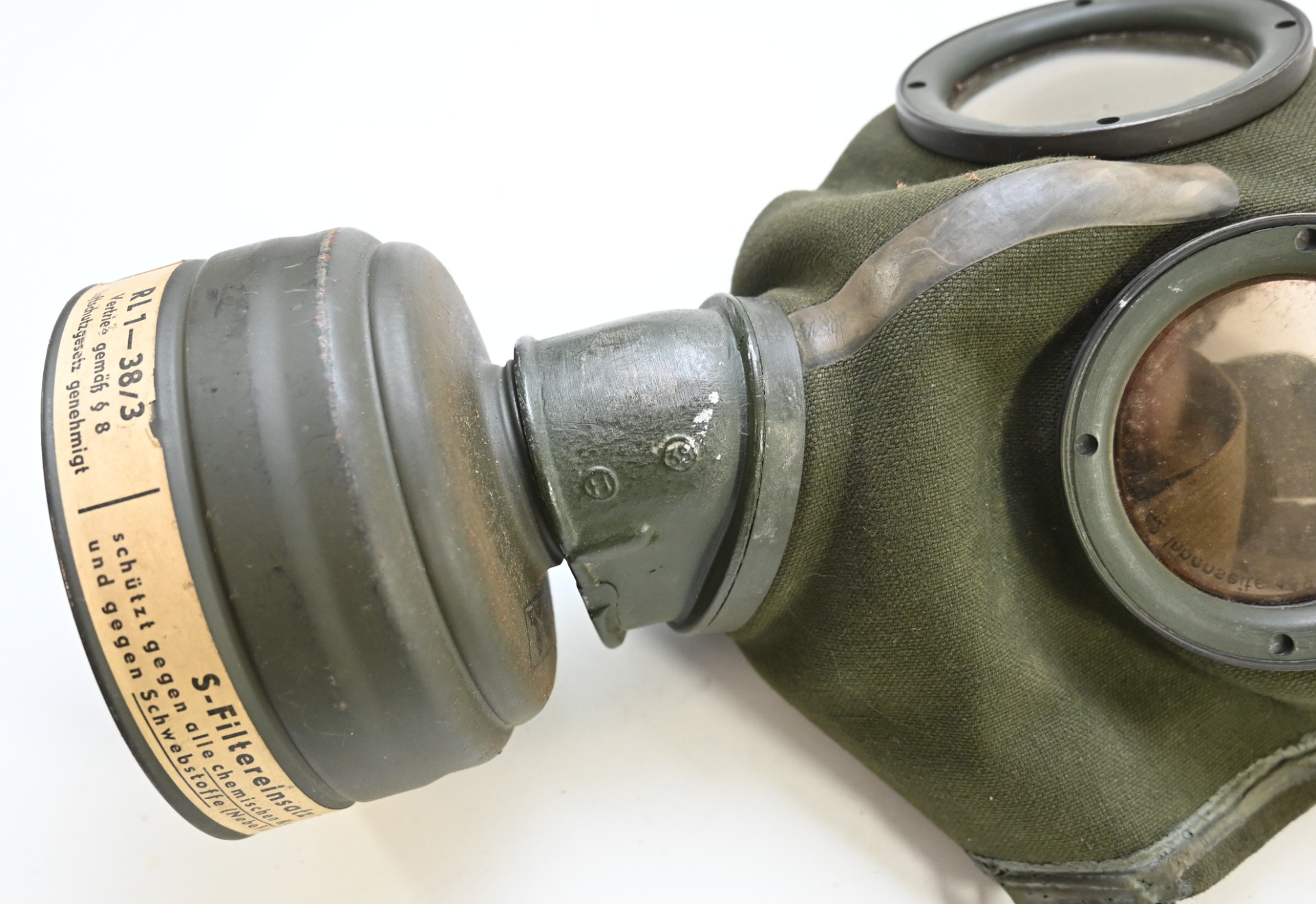 The set shows overall minor signs of wear. The canister contains all of its original paint. Named on the bottom 'Scholz'. The mask is made out of canvas and is still supple and in super conditon. it's dated 1939. Complete with all straps. The label on the filter is intact and the filter is marked with multiple stamps.