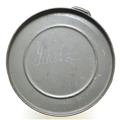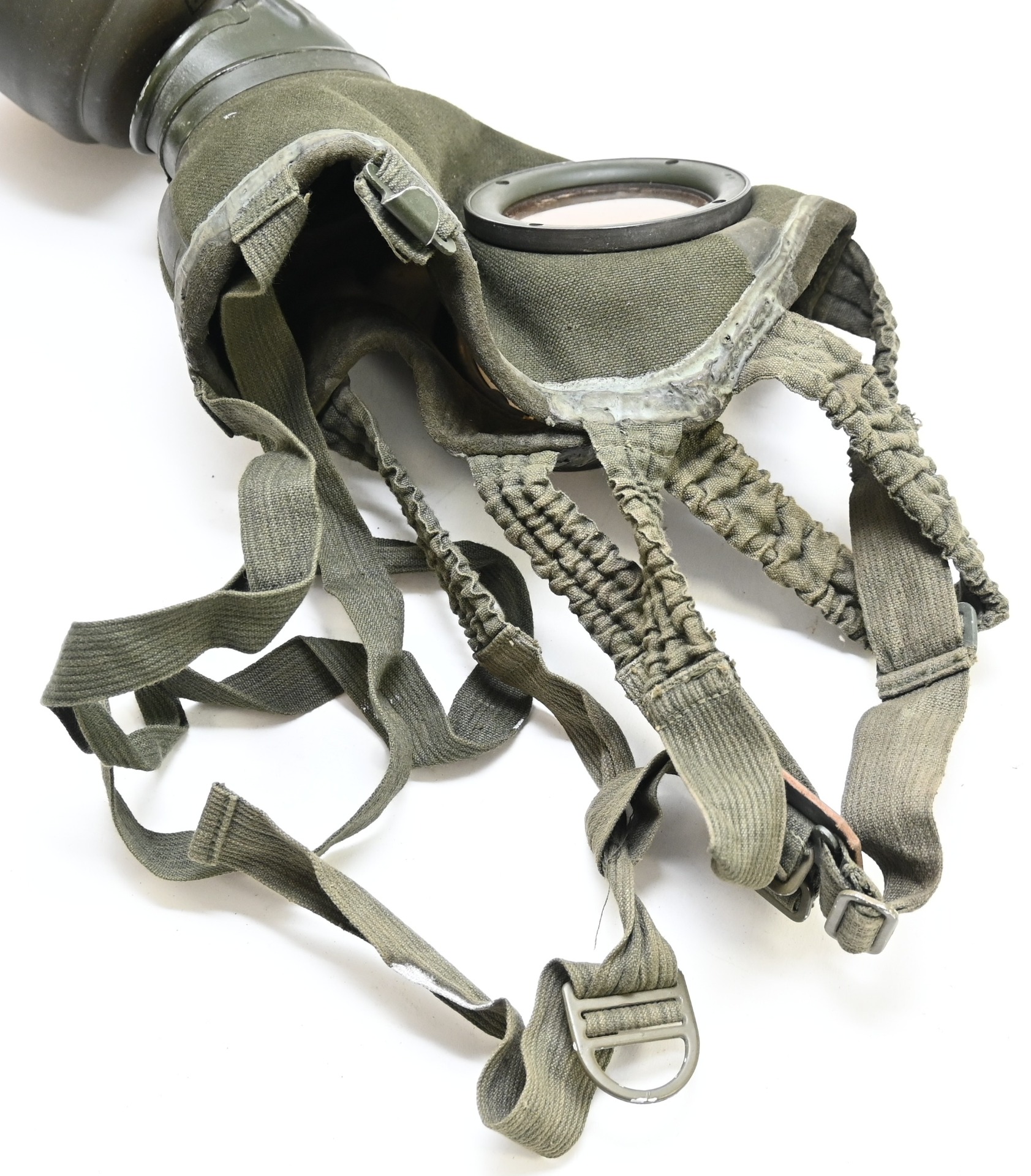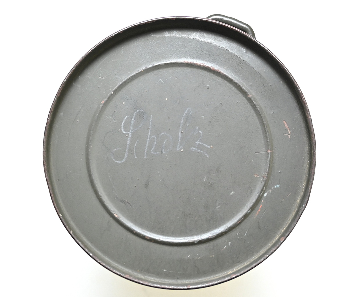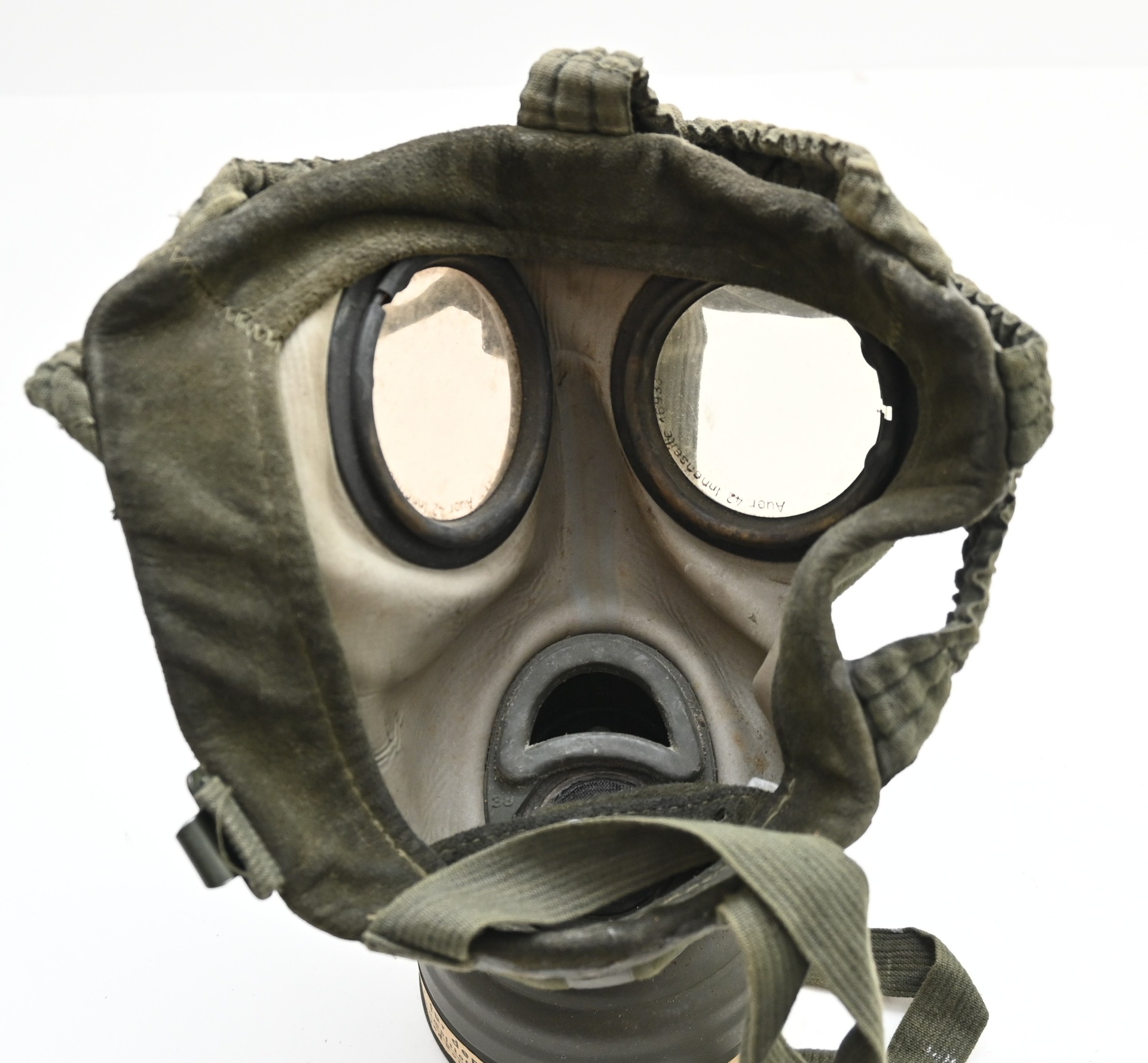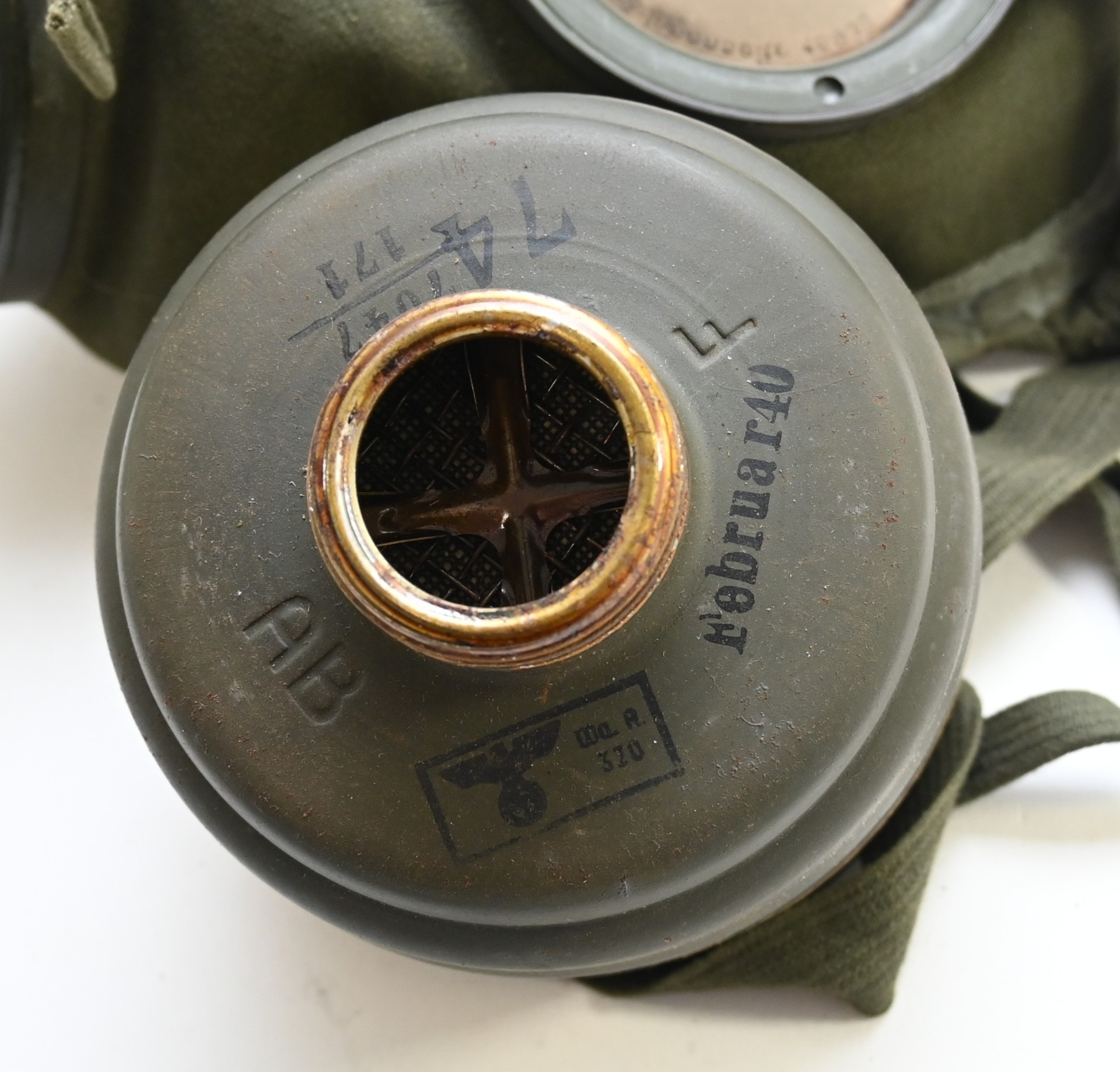 The set shows overall minor signs of wear. The canister contains all of its original paint. Named on the bottom 'Scholz'. The mask is made out of canvas and is still supple and in super conditon. it's dated 1939. Complete with all straps. The label on the filter is intact and the filter is marked with multiple stamps.