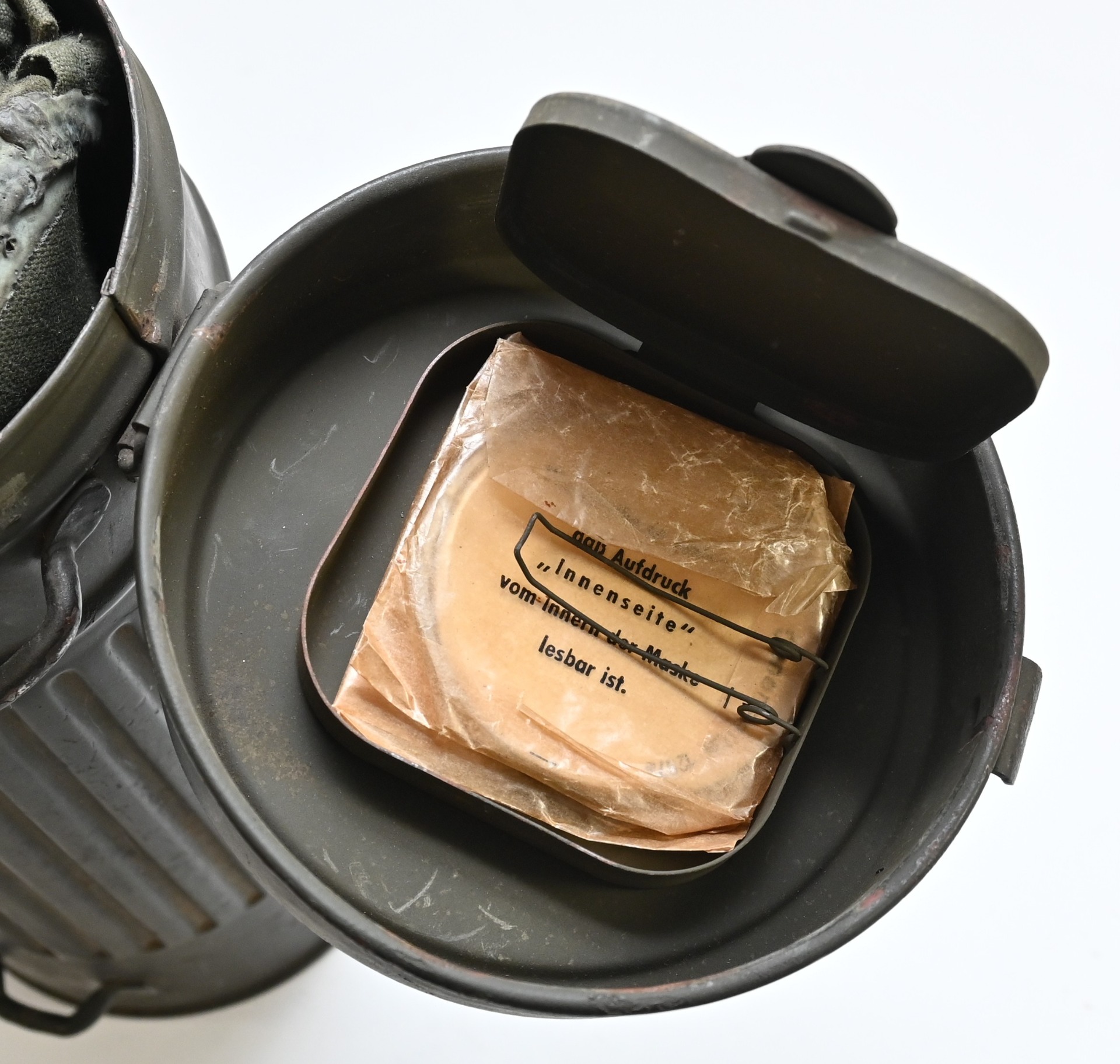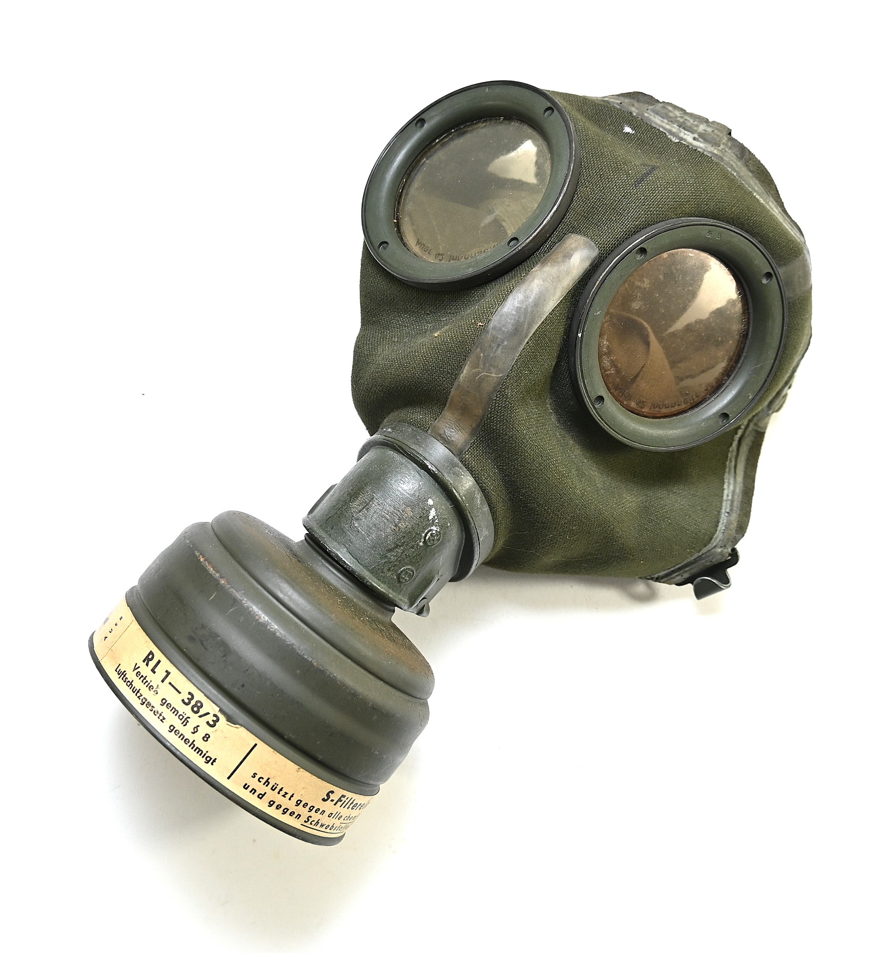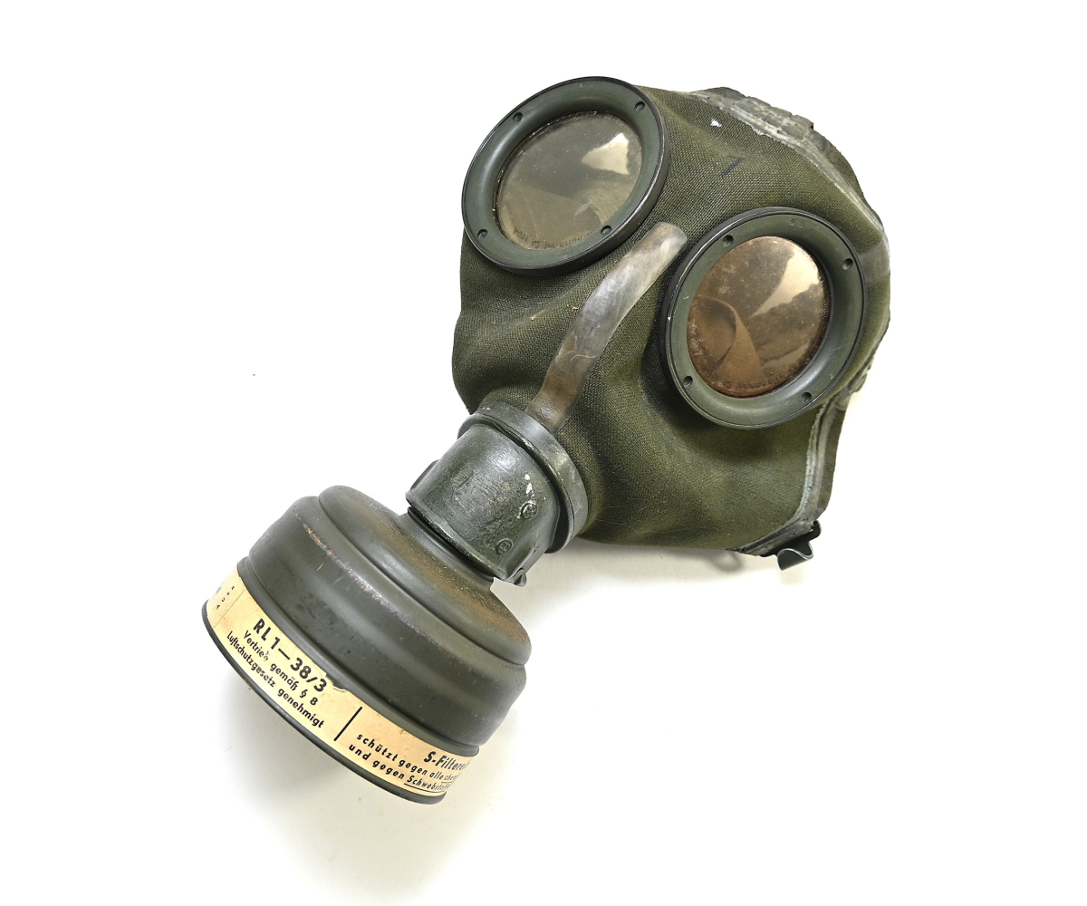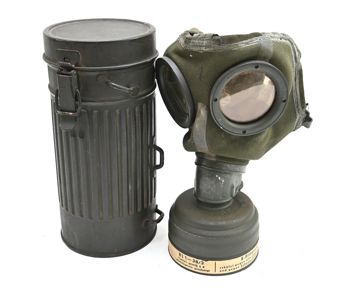 Very nice Luftwaffe Luftschutz gasmask in canister in very good condition.