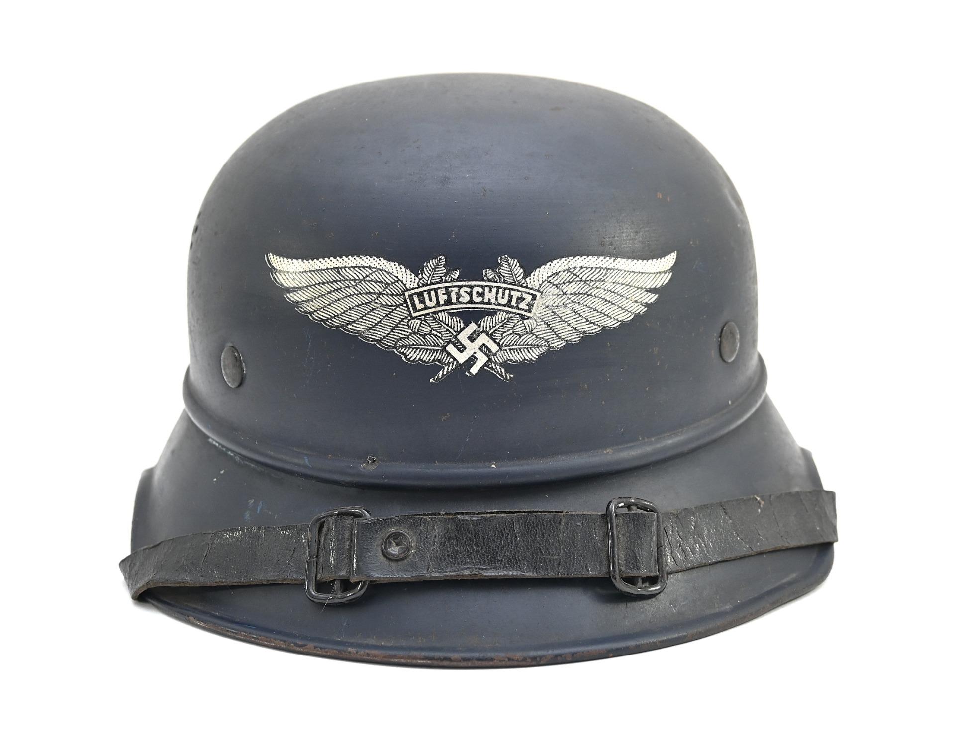 Nice 3-piece constructed Luftschutz 'Gladiator' helmet in used, but good condition.