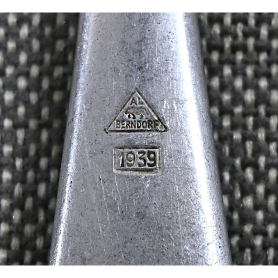 The fork shows overall normal signs of wear. Nicely marked with the Luftwaffe acceptance eagle and on the back bij the maker. It's dated 1939.