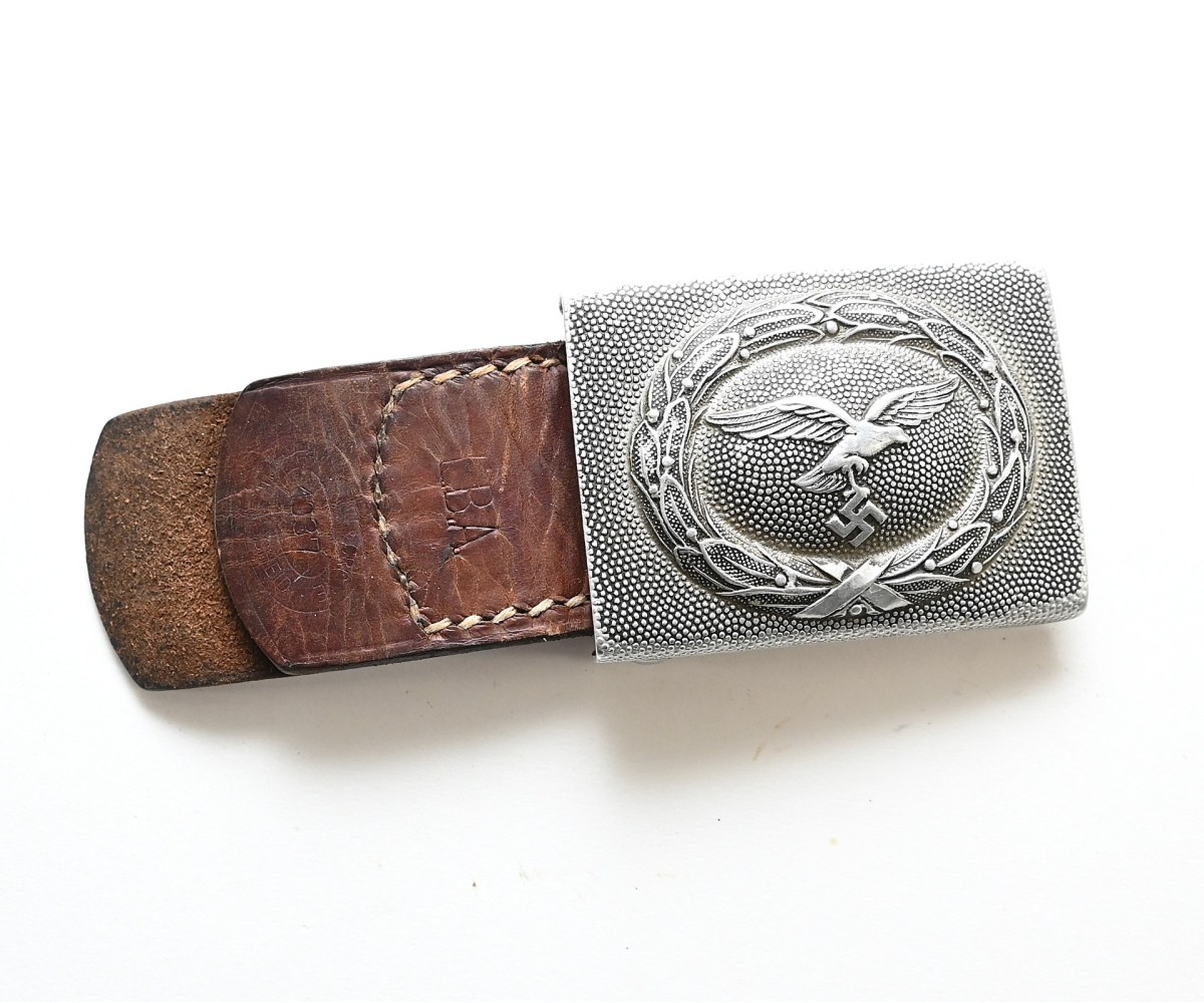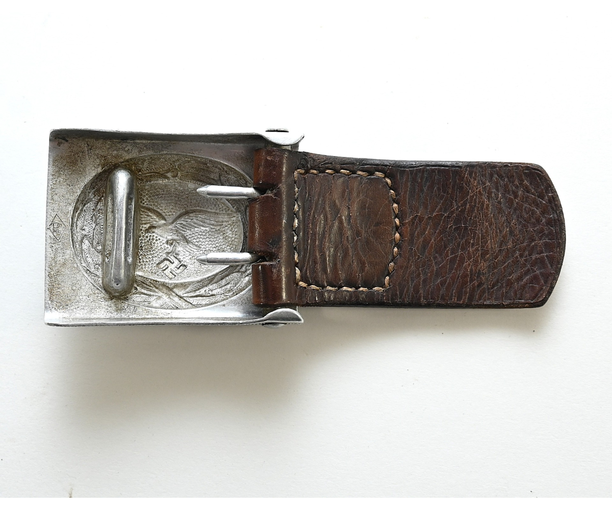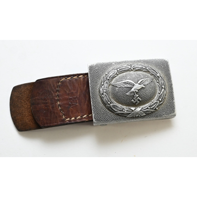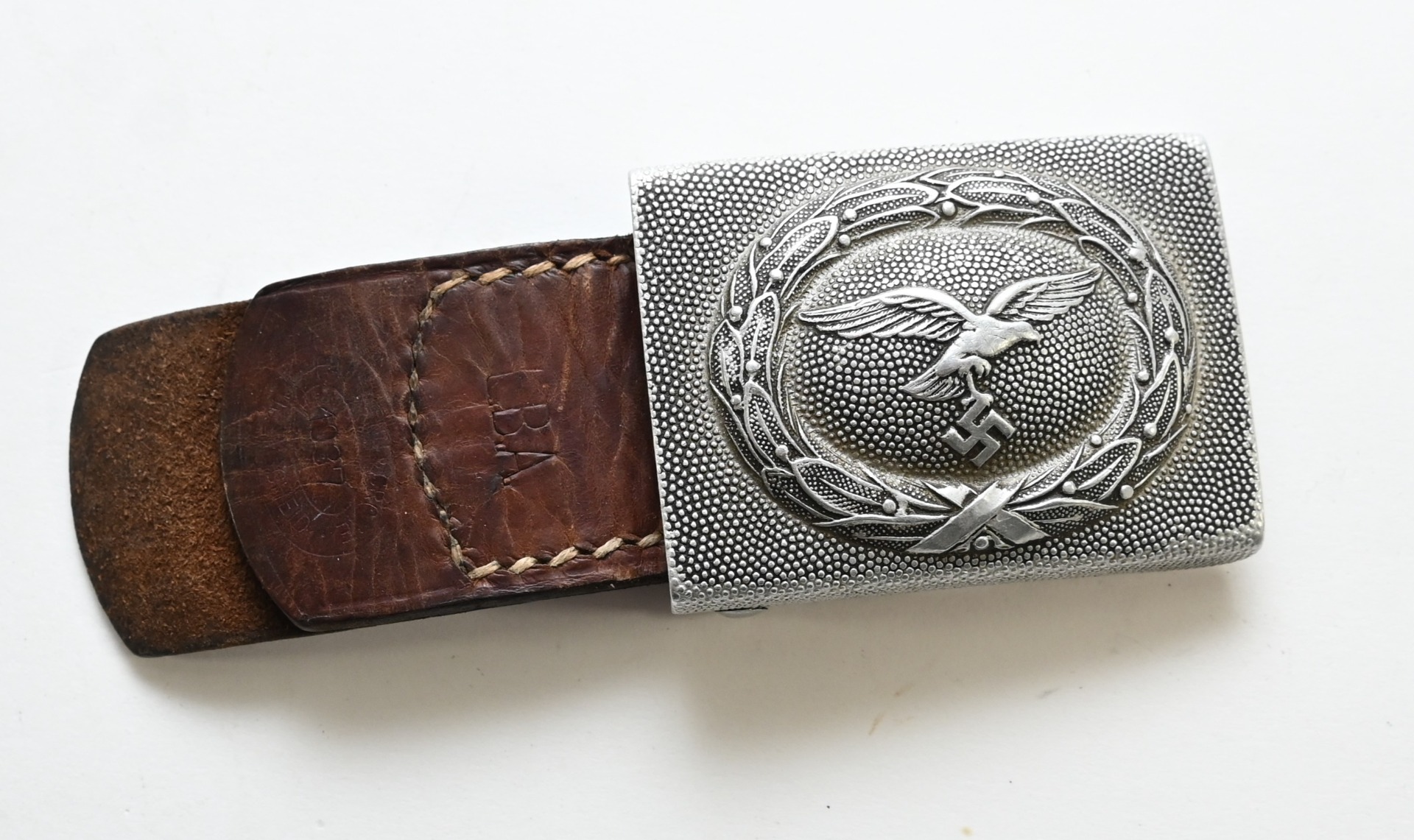 Nice aluminium Luftwaffe buckle with leather tab in good condition from a harder to find maker.