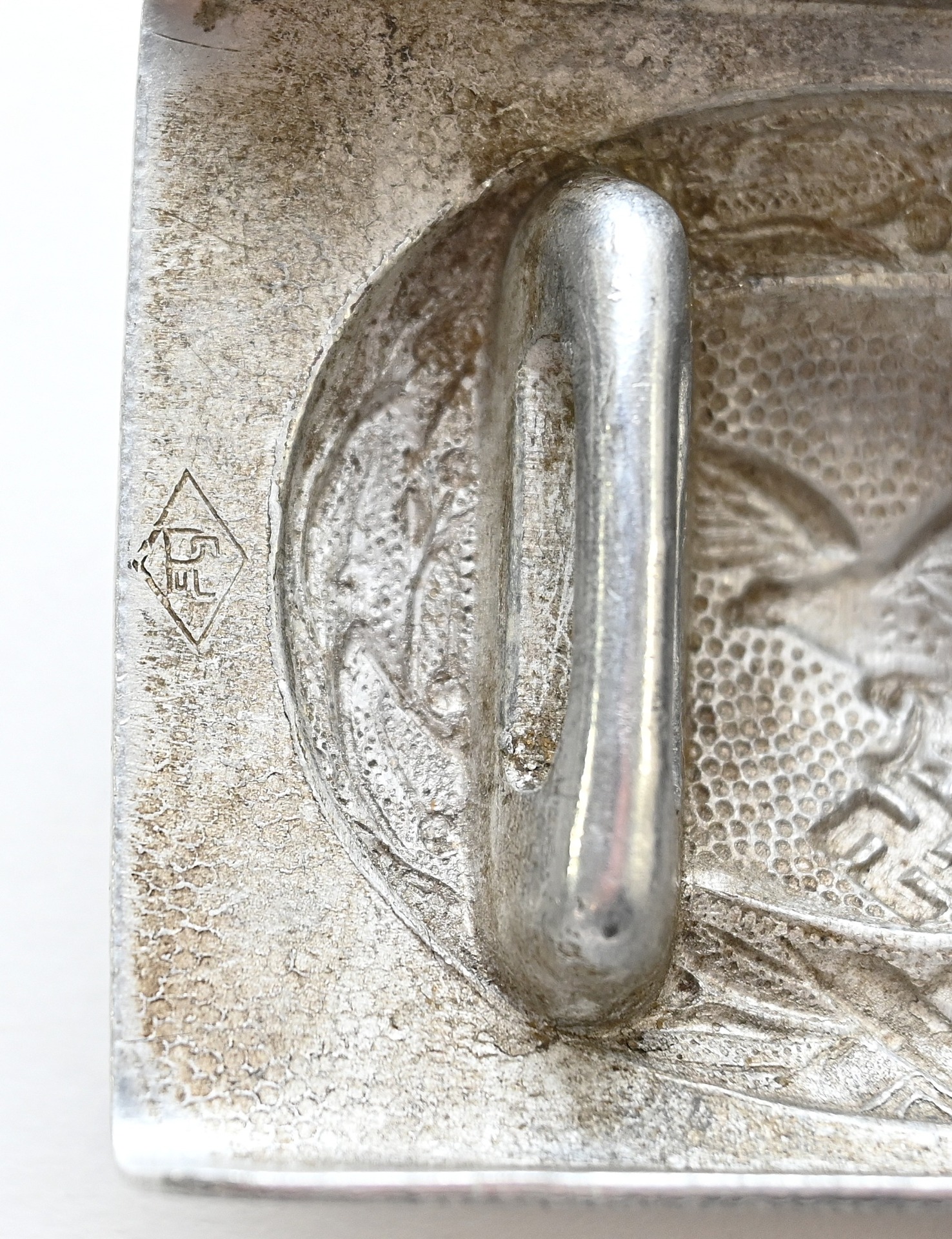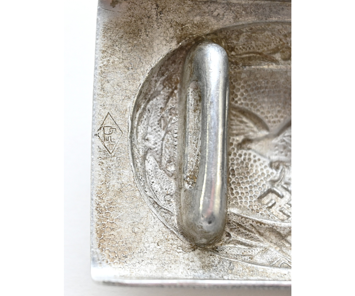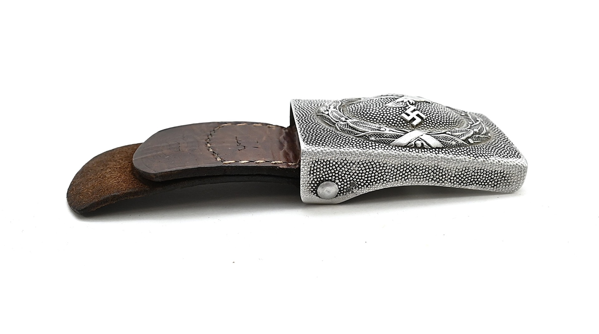 Nice aluminium Luftwaffe buckle with leather tab in good condition from a harder to find maker.