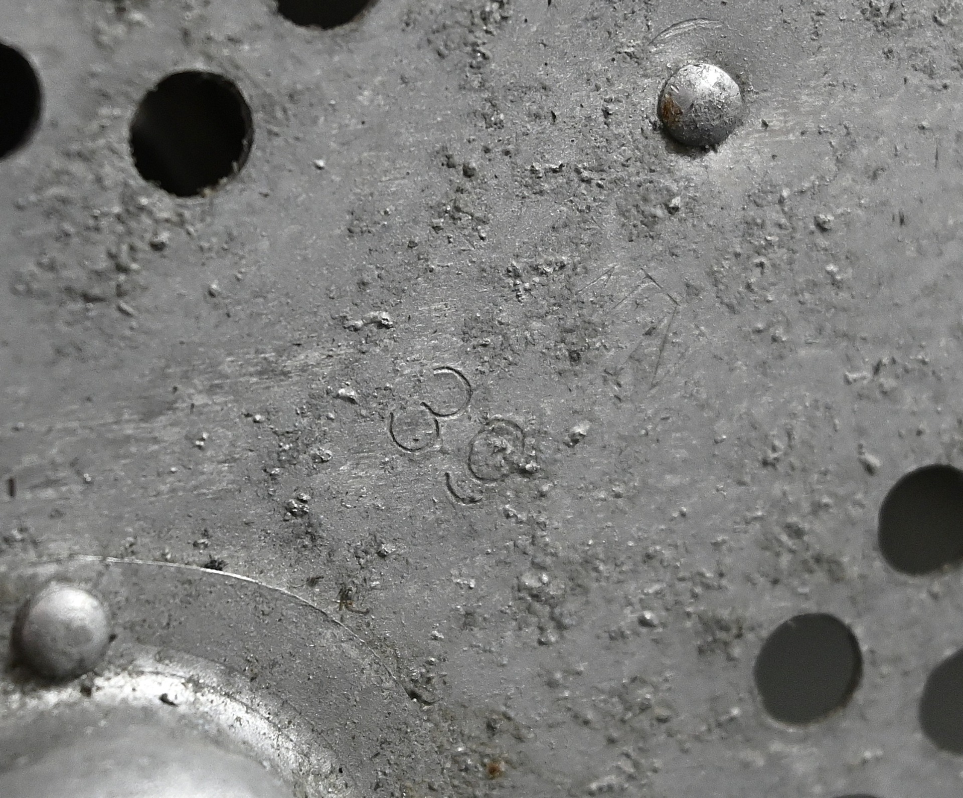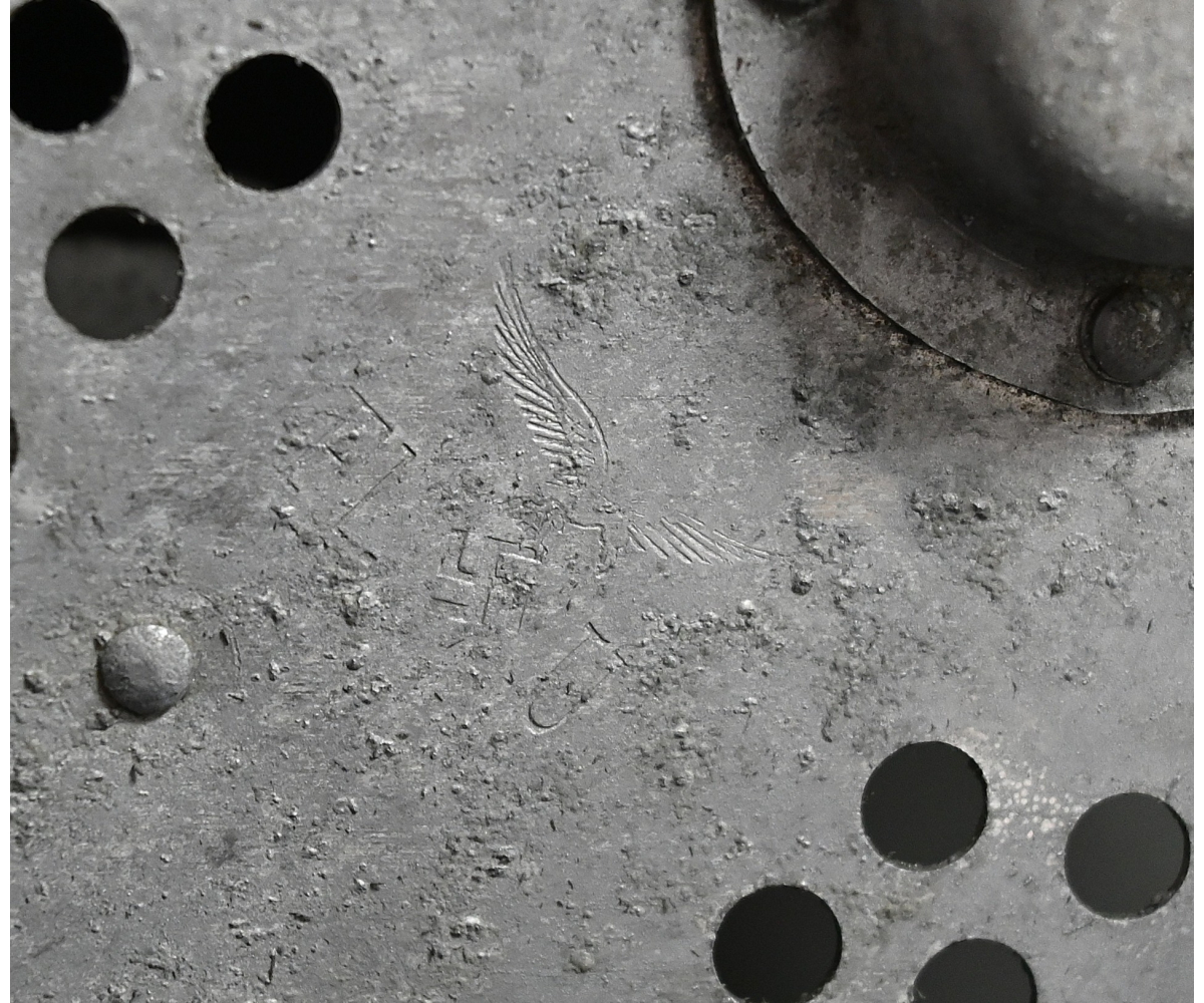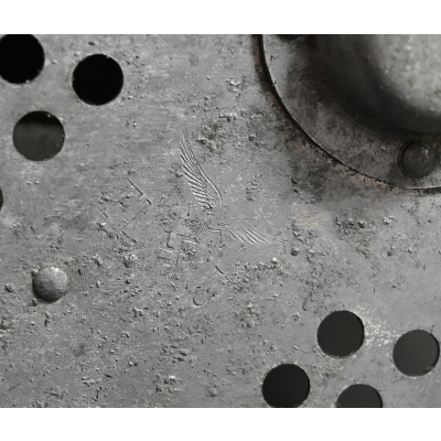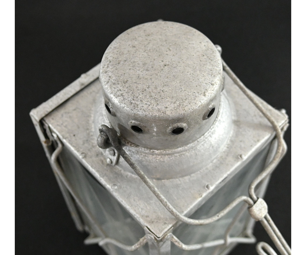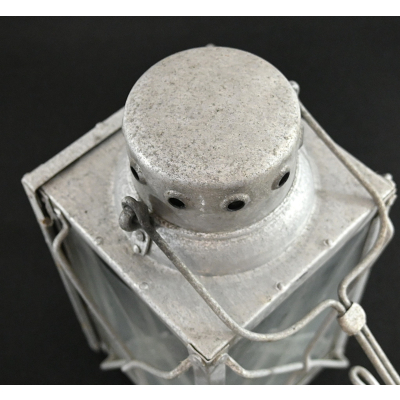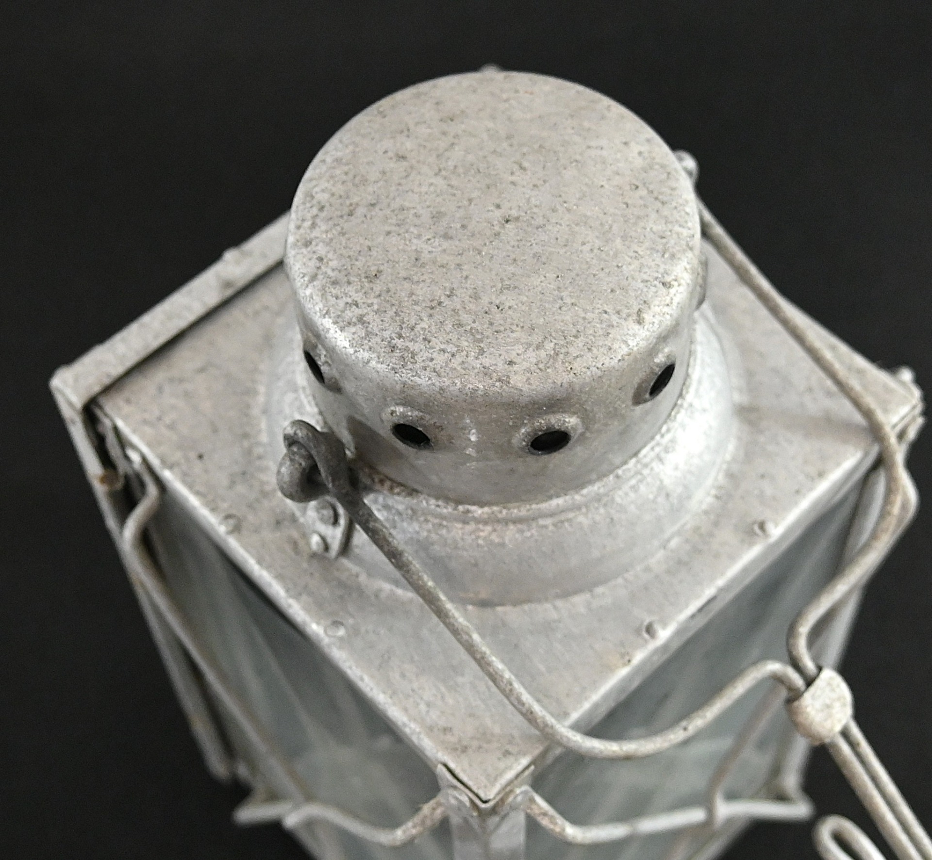 The lantern or ' Laterne' shows overall signs of wear. Four glass windows are pressent. The lamp is nicely marked with a Luftwaffe eagle on the bottom, maker marked 'M.W.M' and dated 1939.