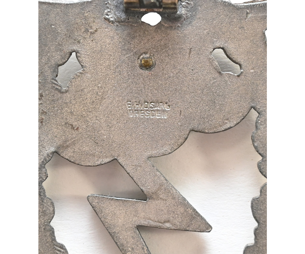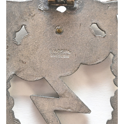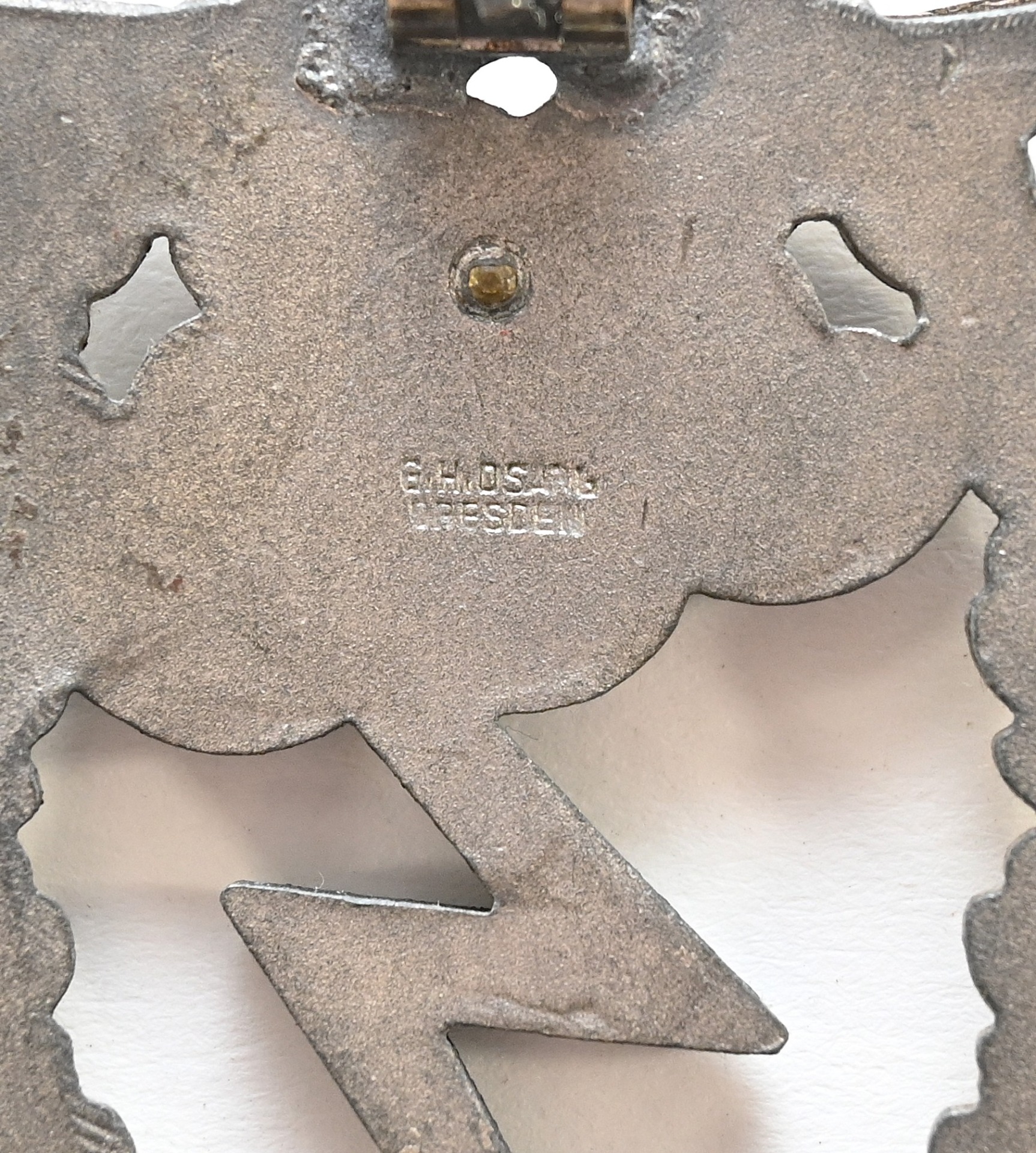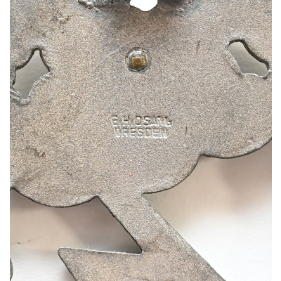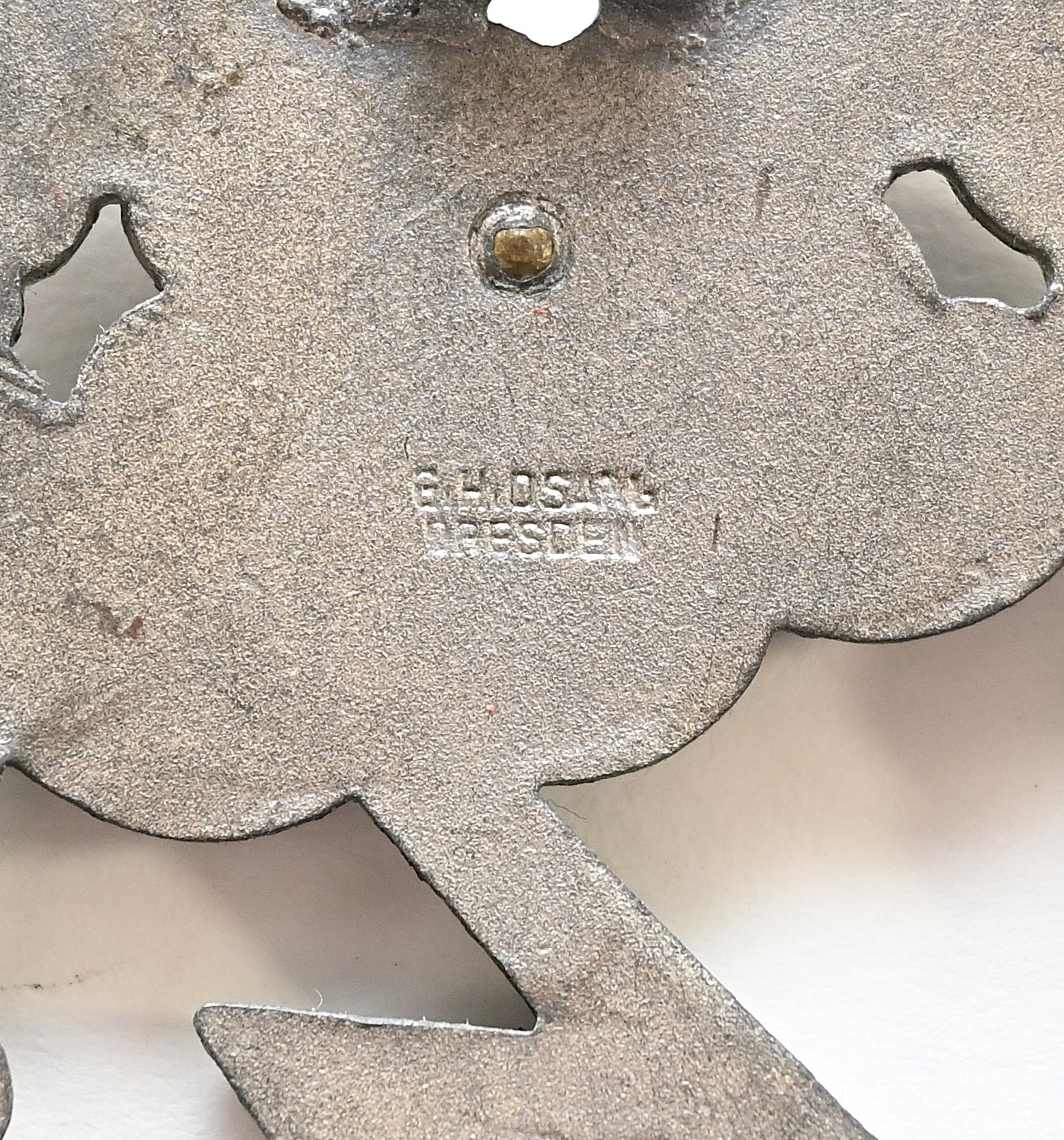 The badge shows normal signs of use and still has a almost all of its shiny finish and period blue paint. It's complete with working pin and catch. Marked on the back with 'G.H.Osang'from Dresden.