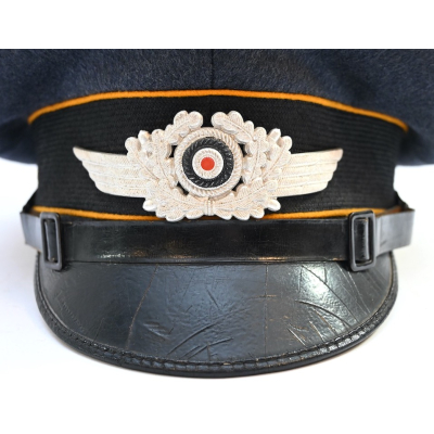 The sweat diamond is also present and marked by the scarce maker 'Ad Höper' from 'Celle'. There was a large airbase at 'Celle', which was used by the Luftwaffe throughout the entire war. The size of the visor cap is approx. 56/57.
