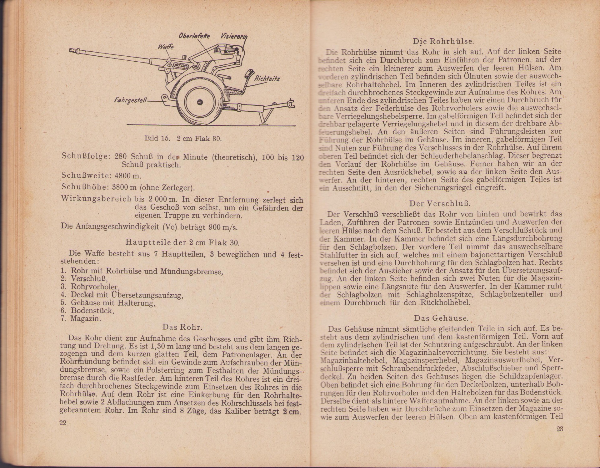 Very nice and hard to find Luftwaffe 2cm Flak 30 instruction booklet in used, but good condition.