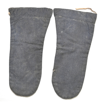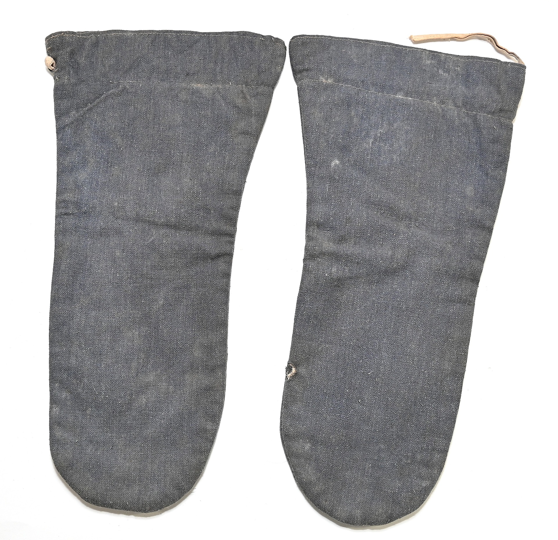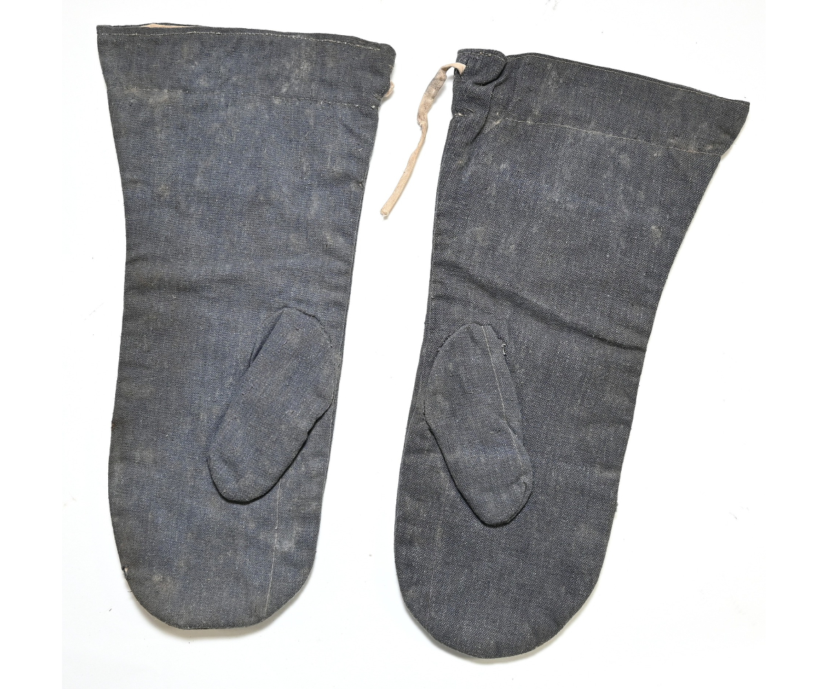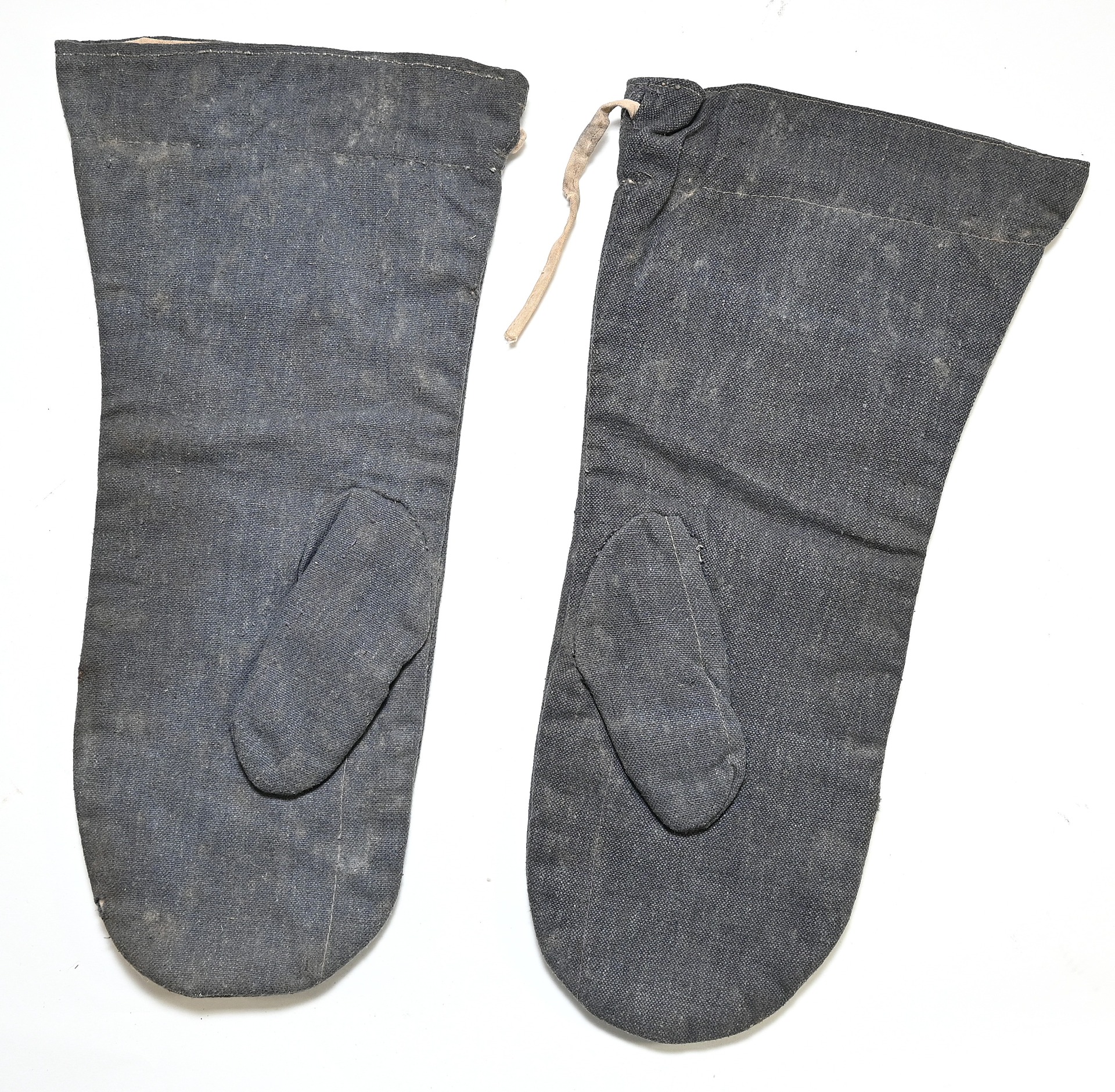 A pair of blue Luftwafe reversible winter gloves in worn condition.
