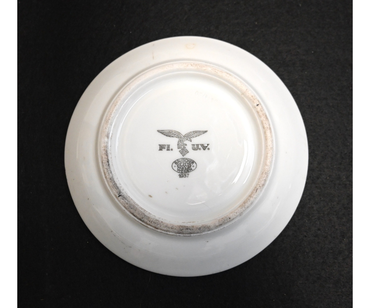 The saucer is in good condition. It shows normal signs of usage/scratches. It's nicely maker marked by 'Bauscher' from 'Weiden', marked with the Luftwaffe eagle and dated '1937'. The diameter (approx): 14,5cm