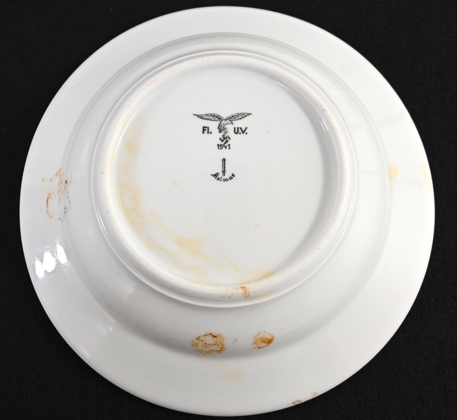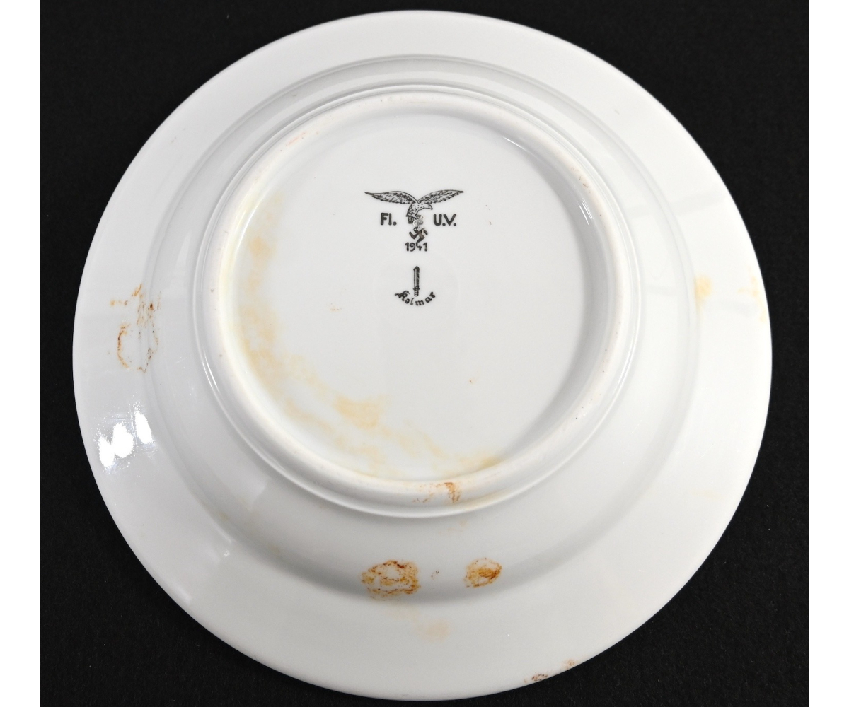 The overall condition of the plate is used but good. Shows normal signs of user wear/scratches/staines. Nicely marked with the Luftwaffe eagle, the maker and date of production '1941'. The diameter is approx 23,5cm.