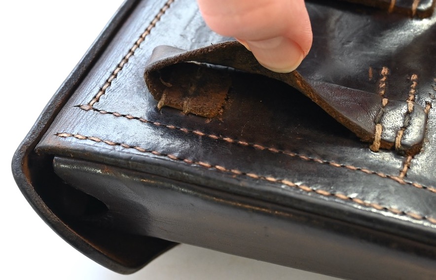 The leather of the holster and straps are supple. Both loops at the back have some missing stitching at the top (everything is photographed), however both loops are firmly attached to the holster at both the top and bottom and are fully usable!
