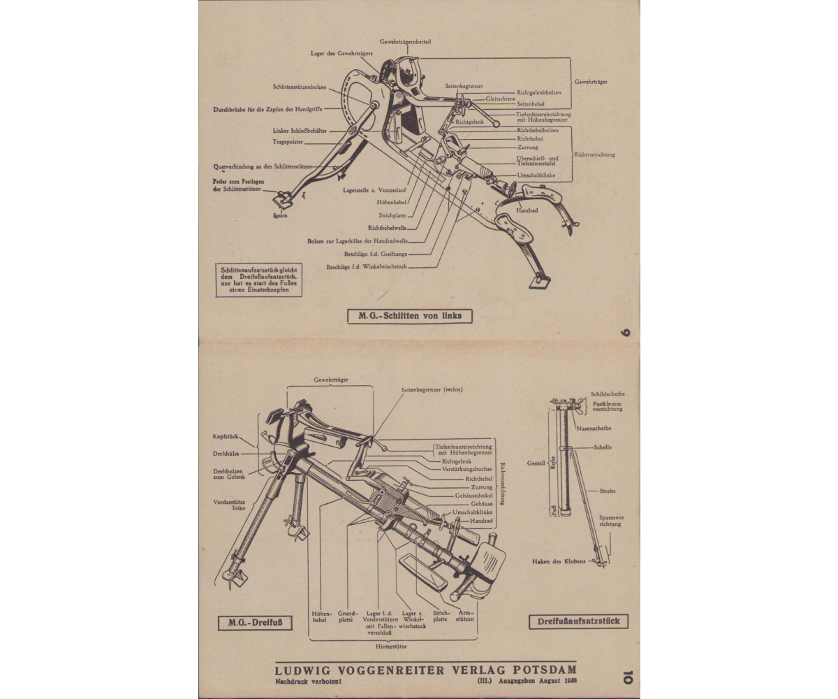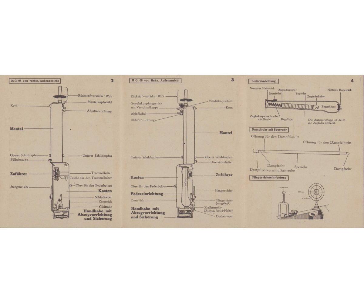 Very nice 'Das M.G.08 (s.M.G.)' instruction flyer or 'Waffentafeln' in excellent condition.
