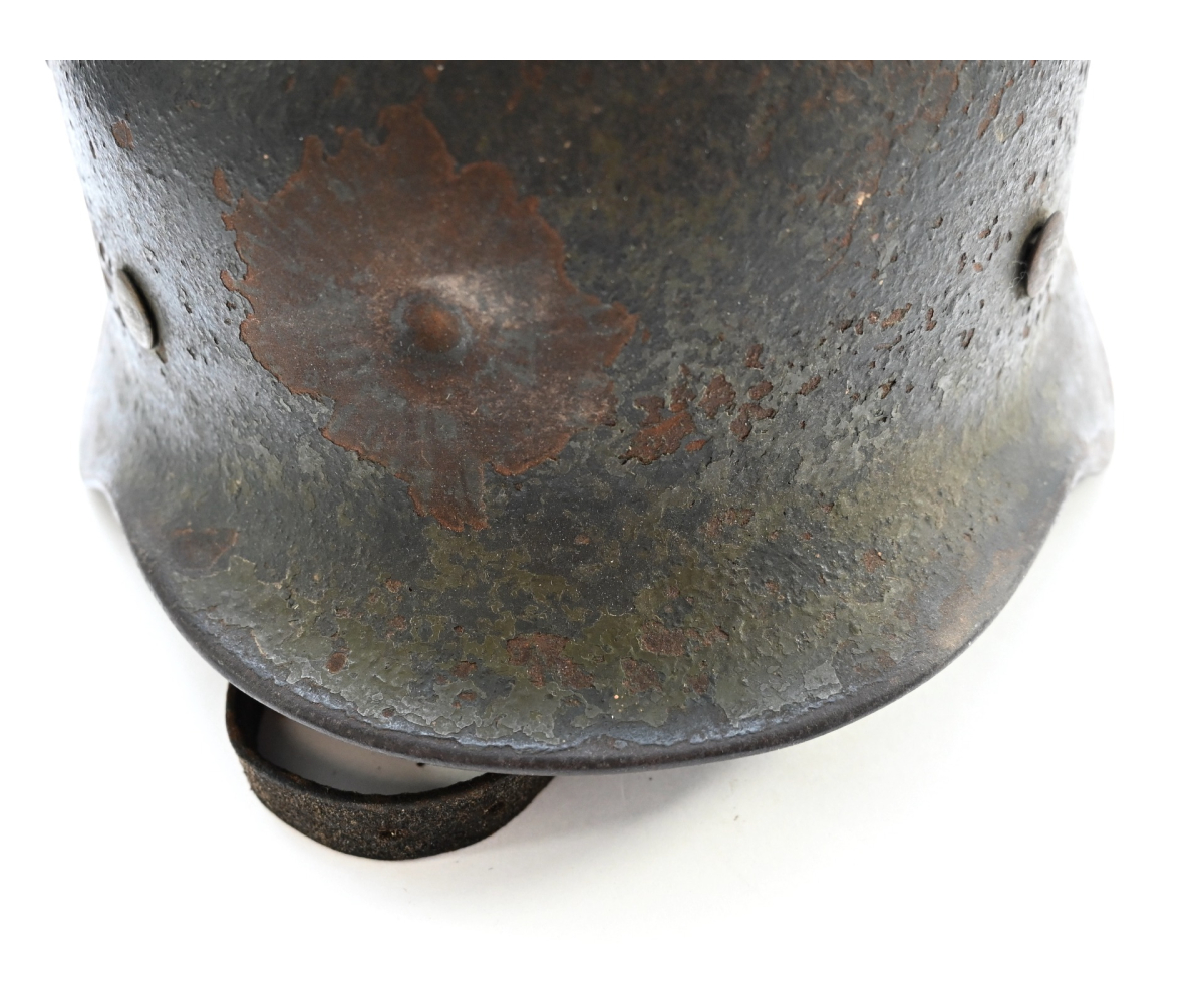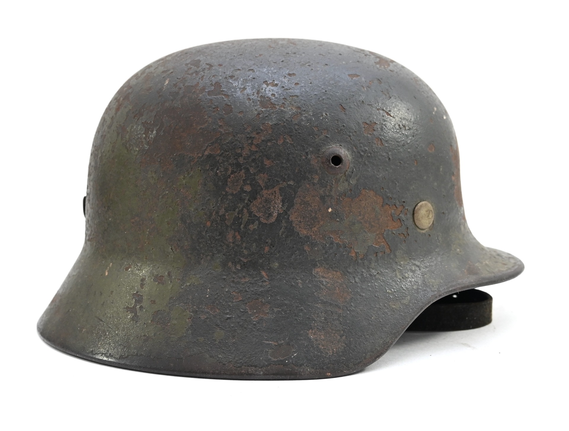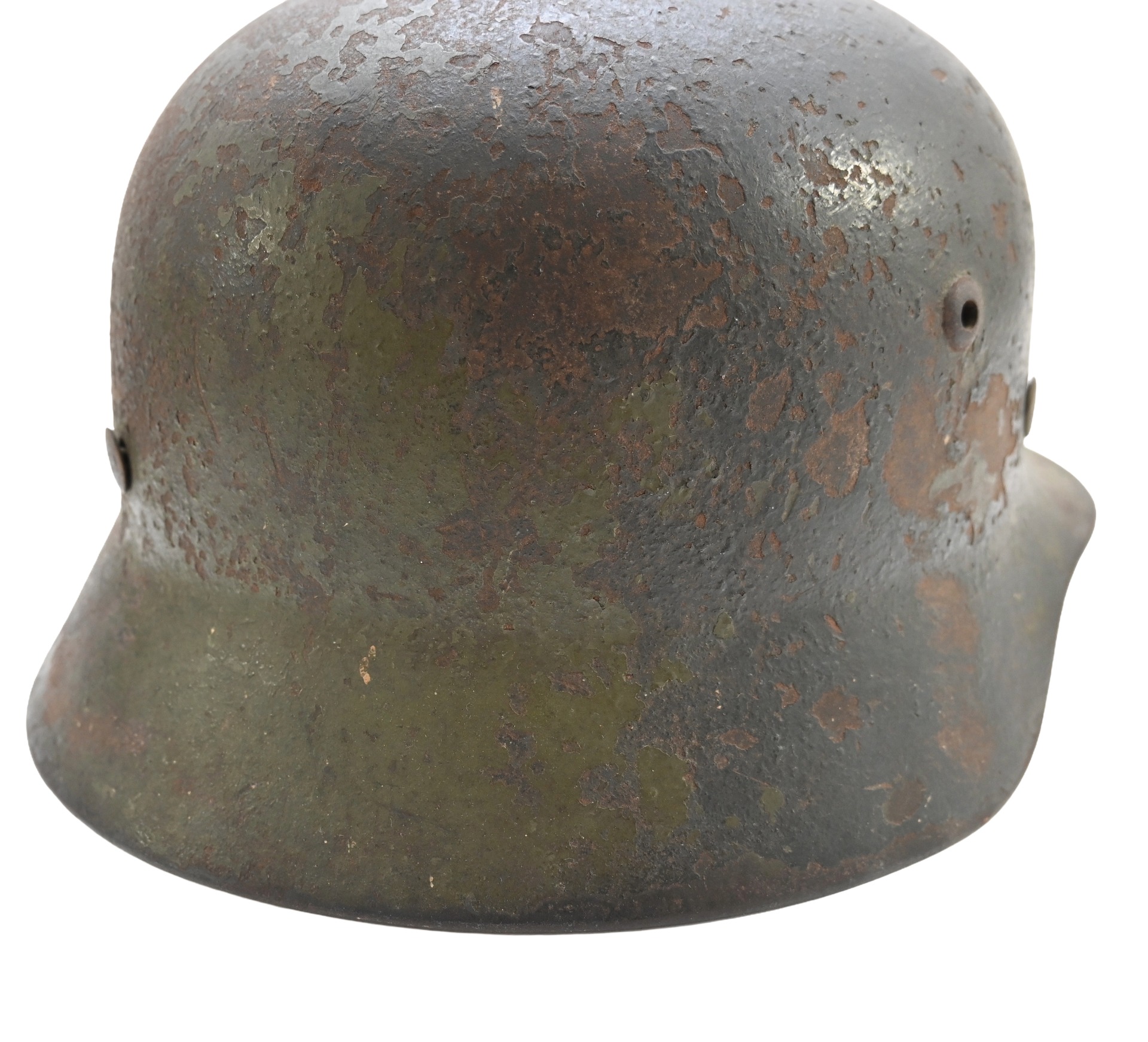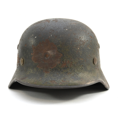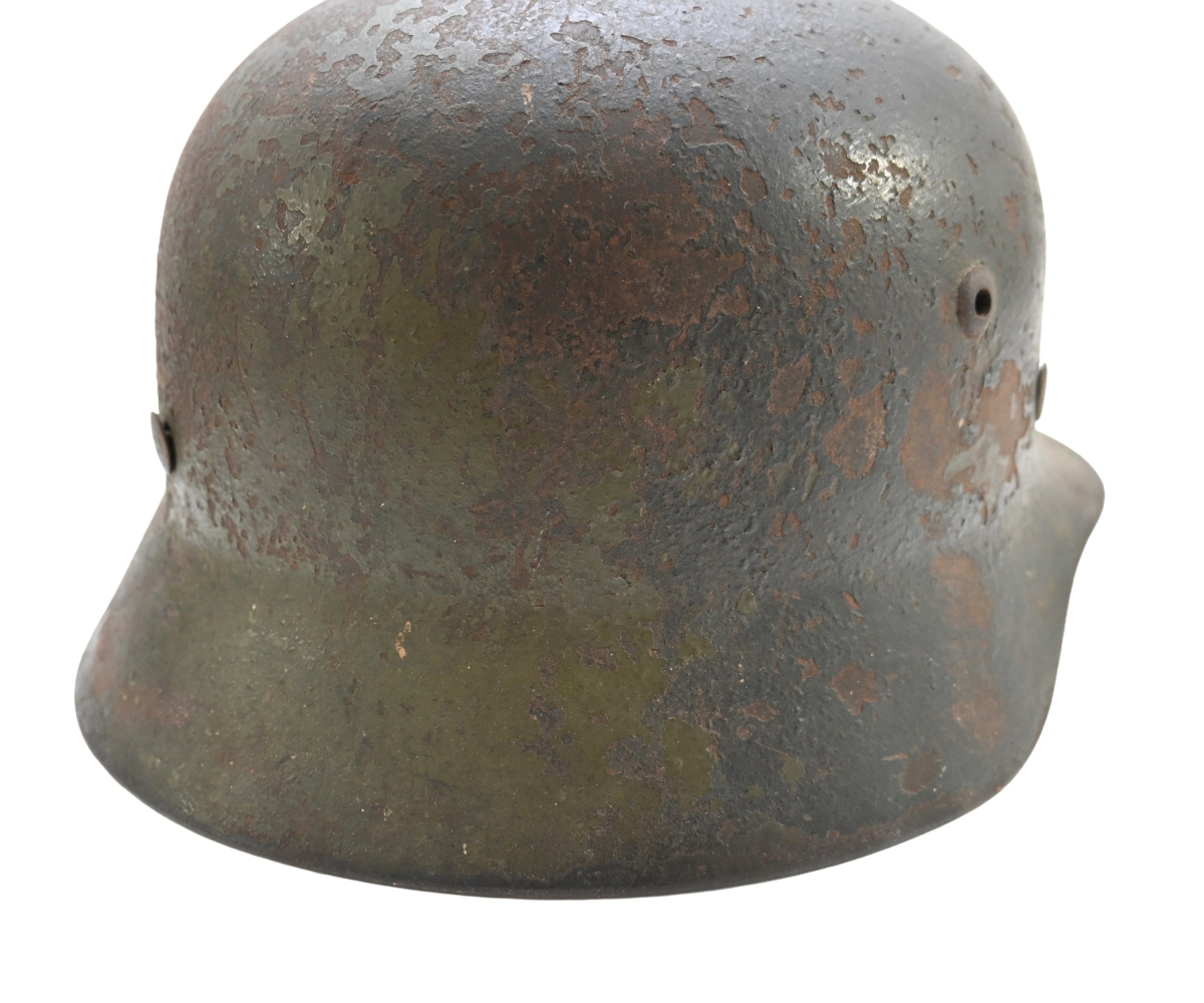 Very nice Wehrmacht M35 two-tone camouflage helmet with a beautiful 'been there' patina.