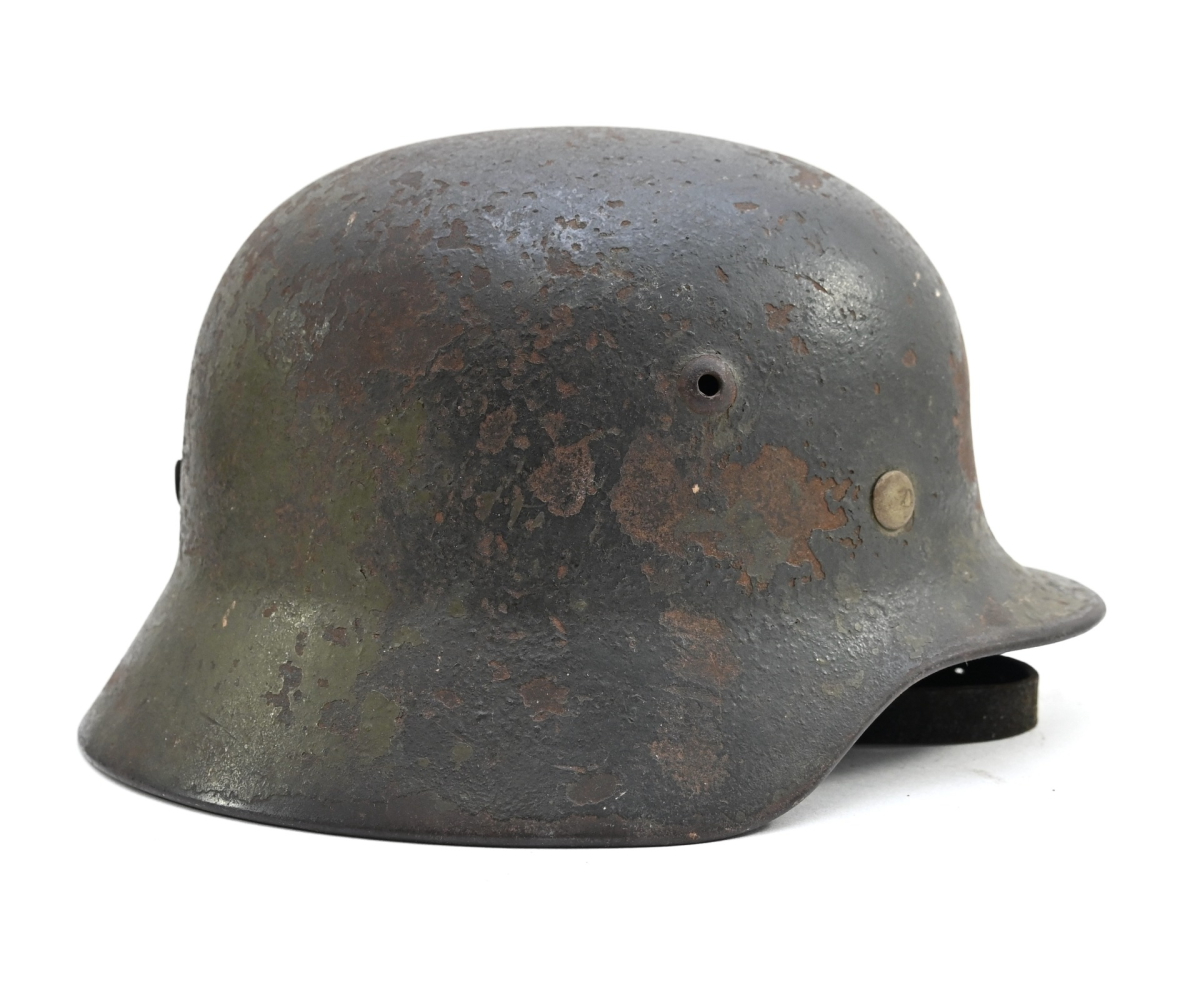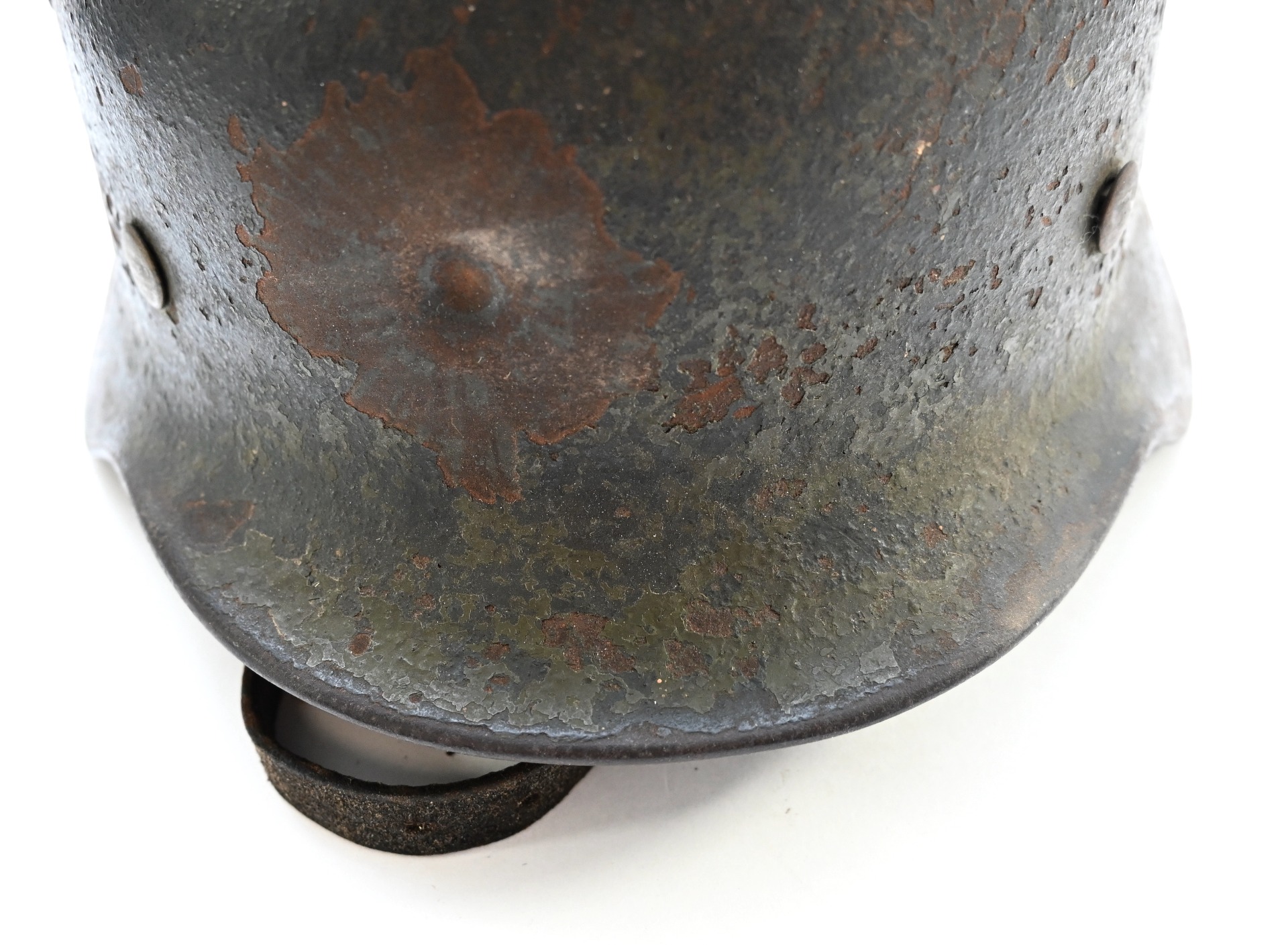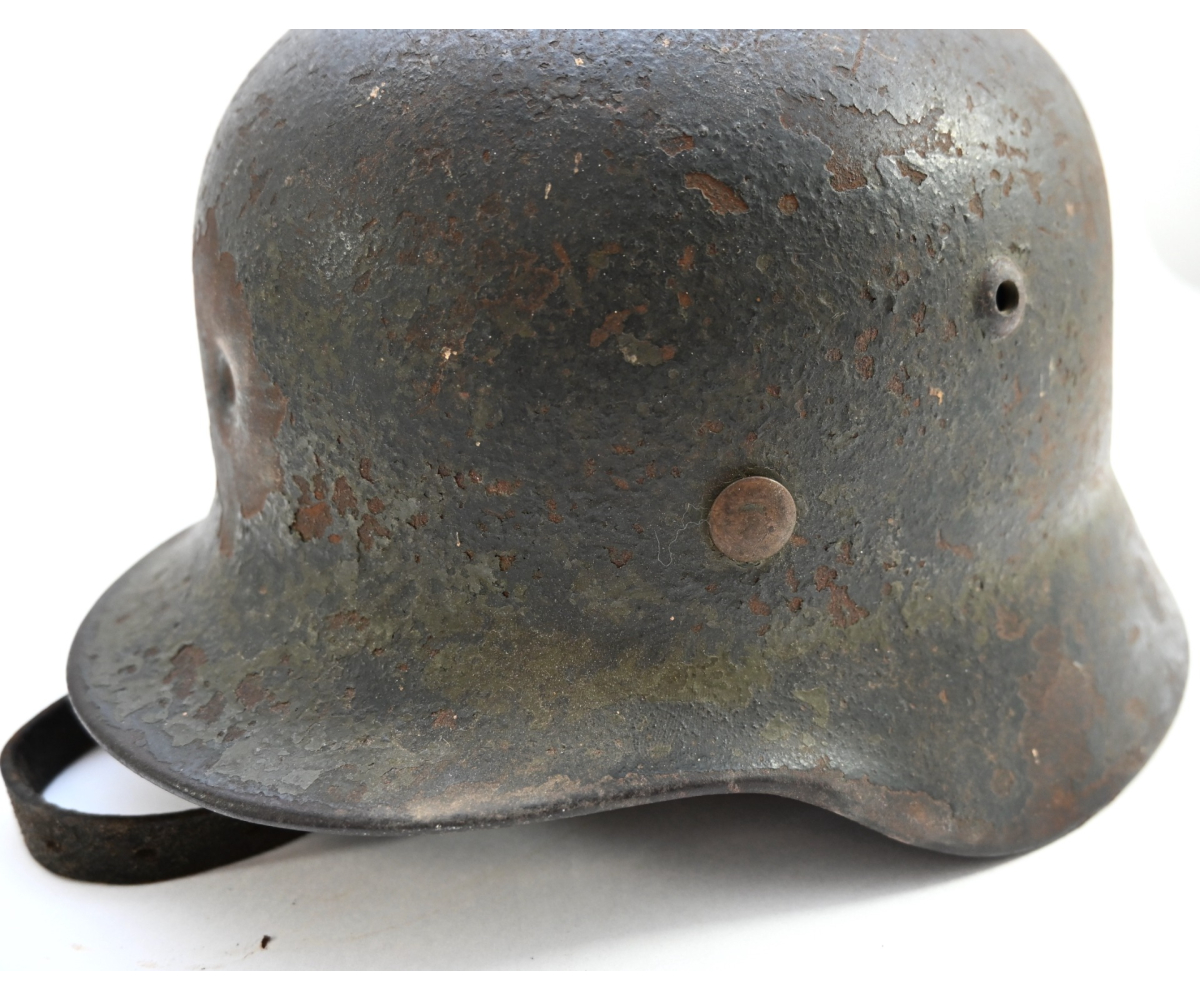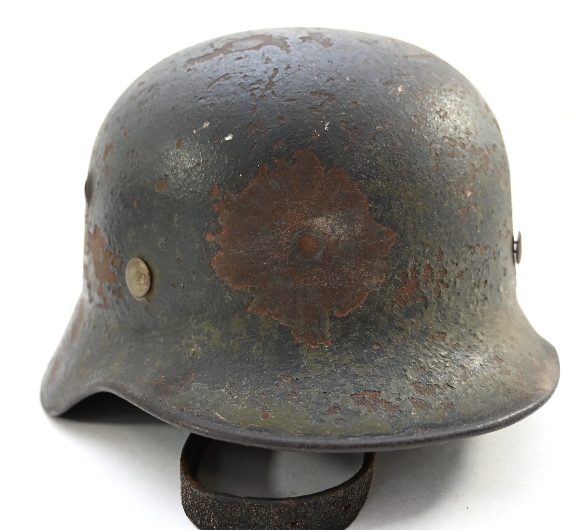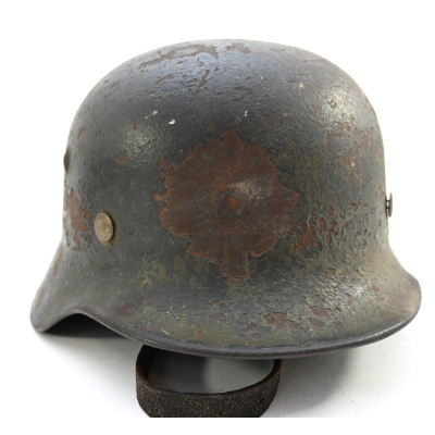 Very nice Wehrmacht M35 two-tone camouflage helmet with a beautiful 'been there' patina.