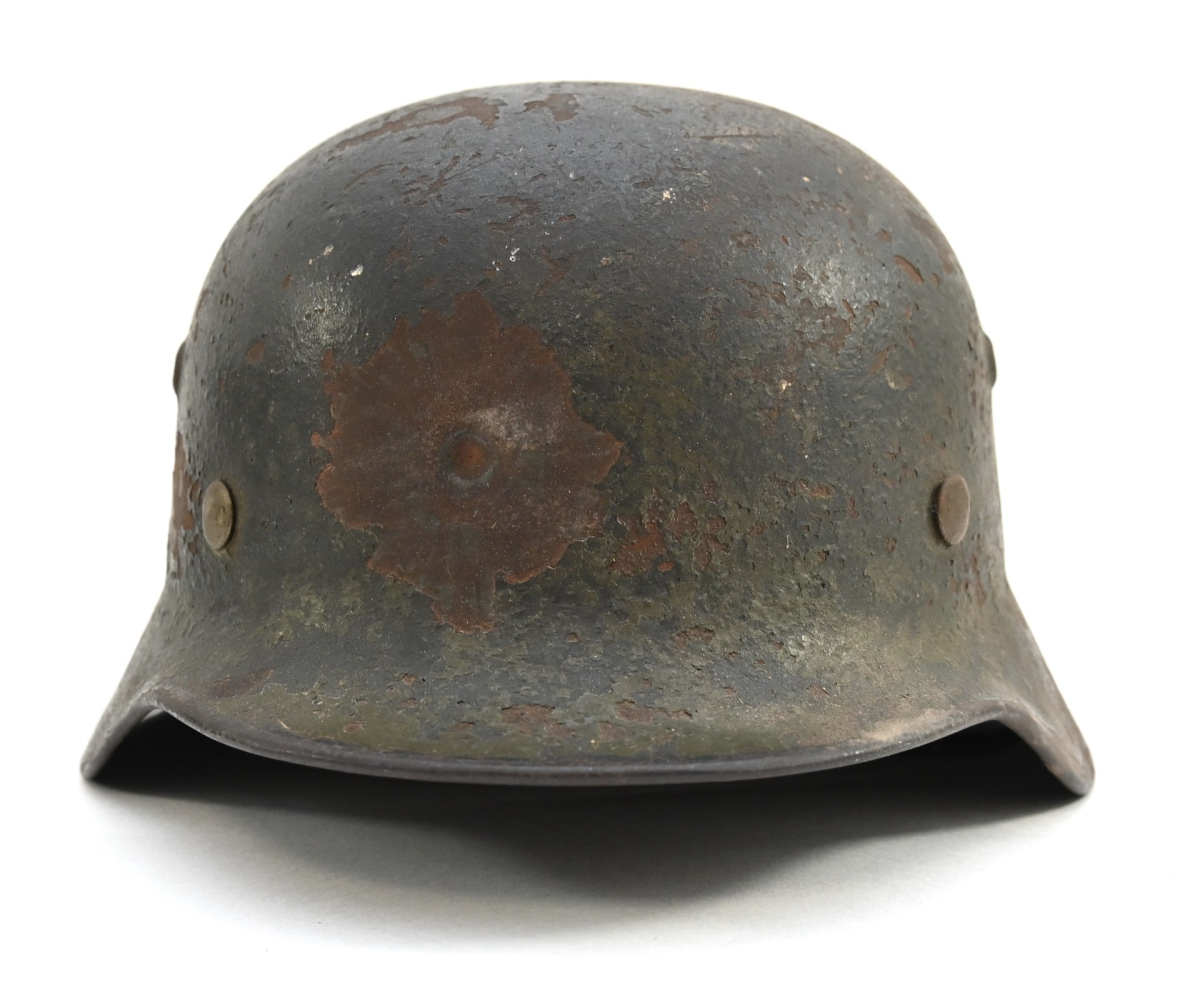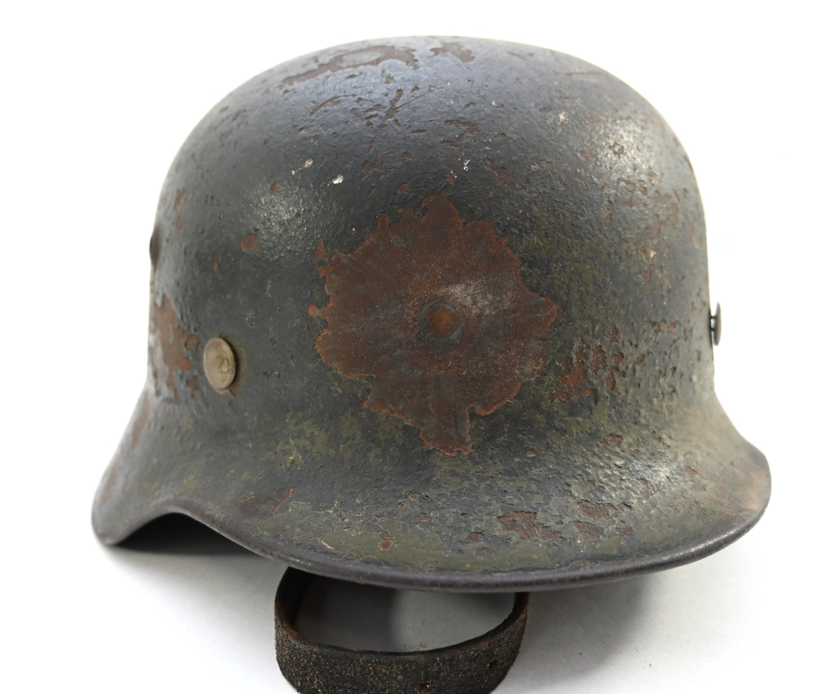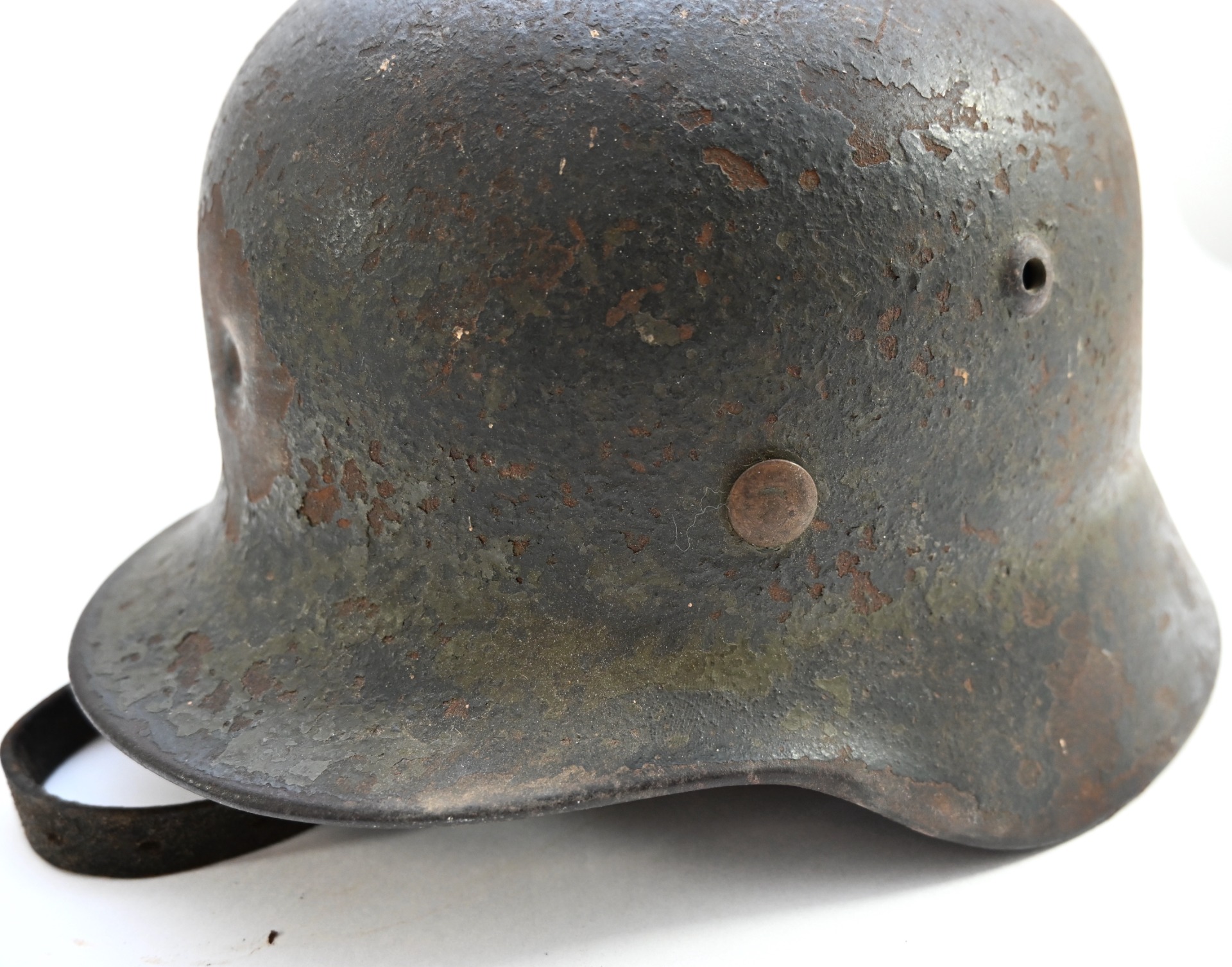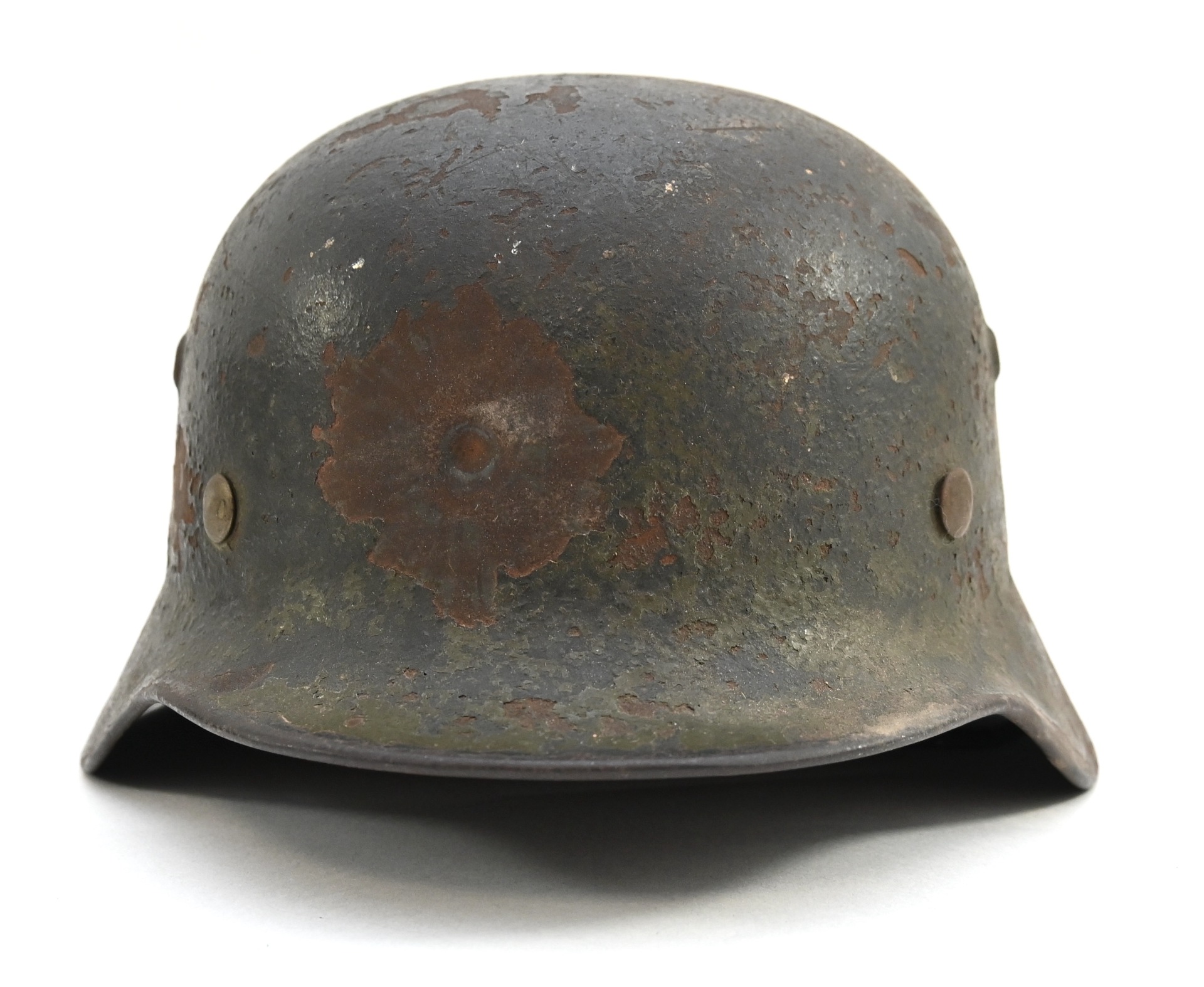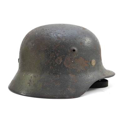 Very nice Wehrmacht M35 two-tone camouflage helmet with a beautiful 'been there' patina.