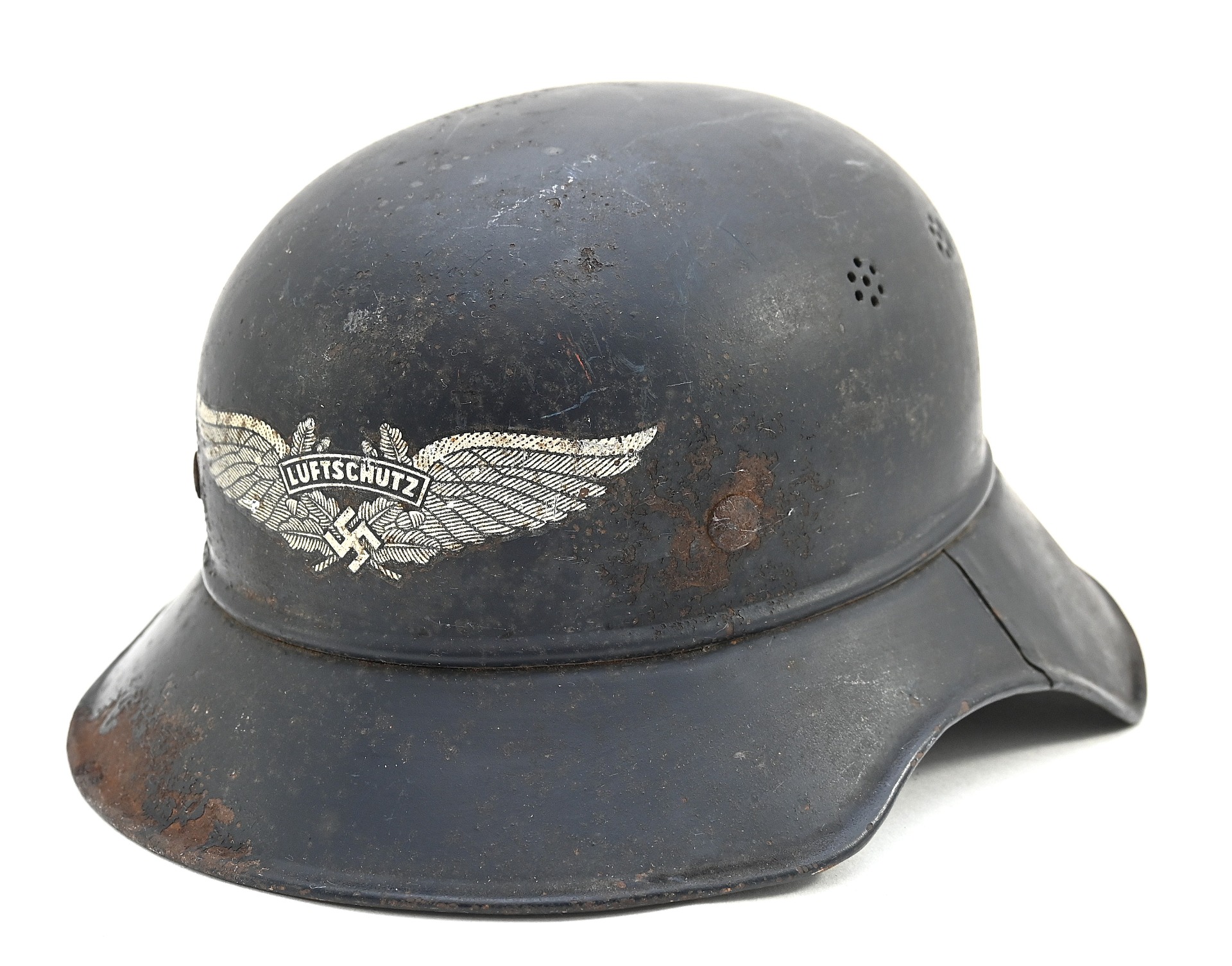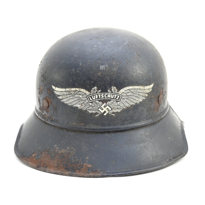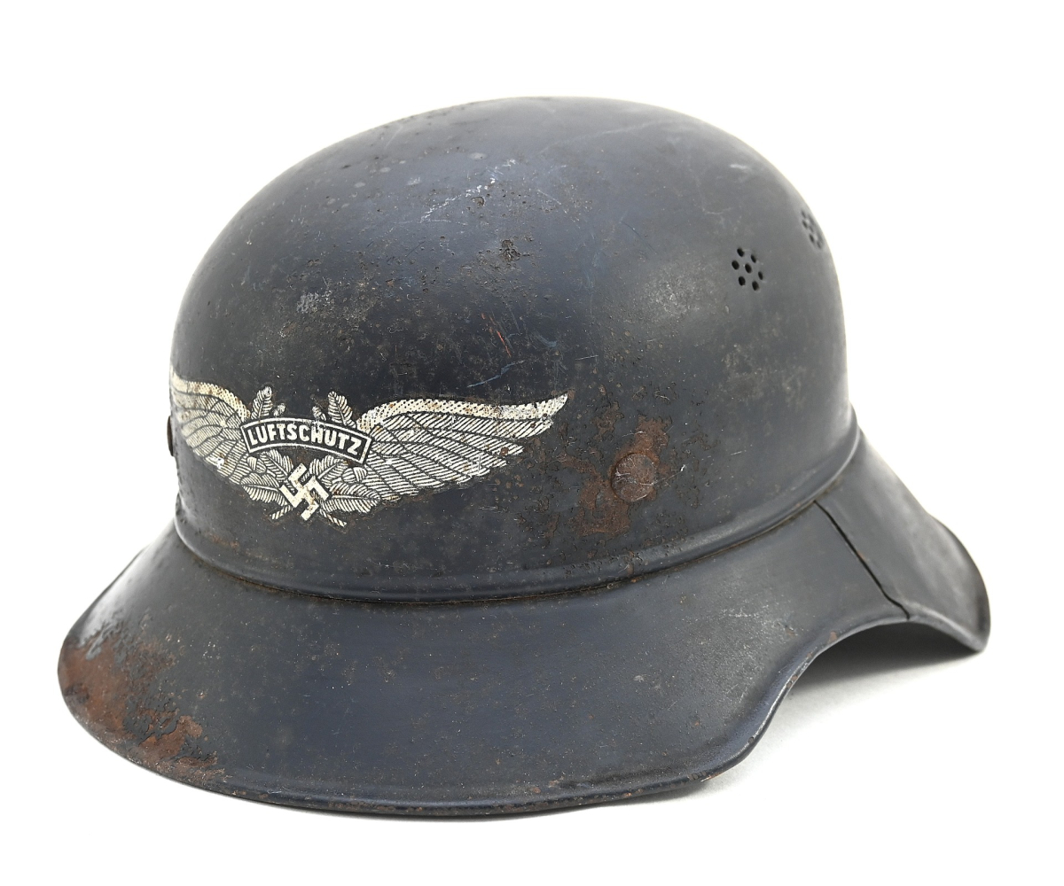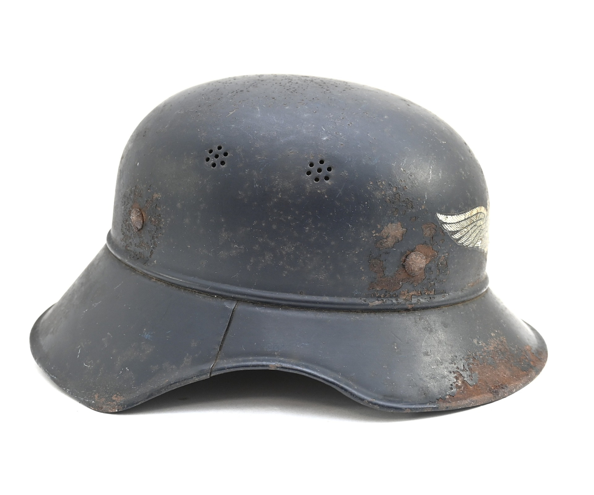 Nice 3-piece constructed Luftschutz 'Gladiator' helmet in worn, but good condition.