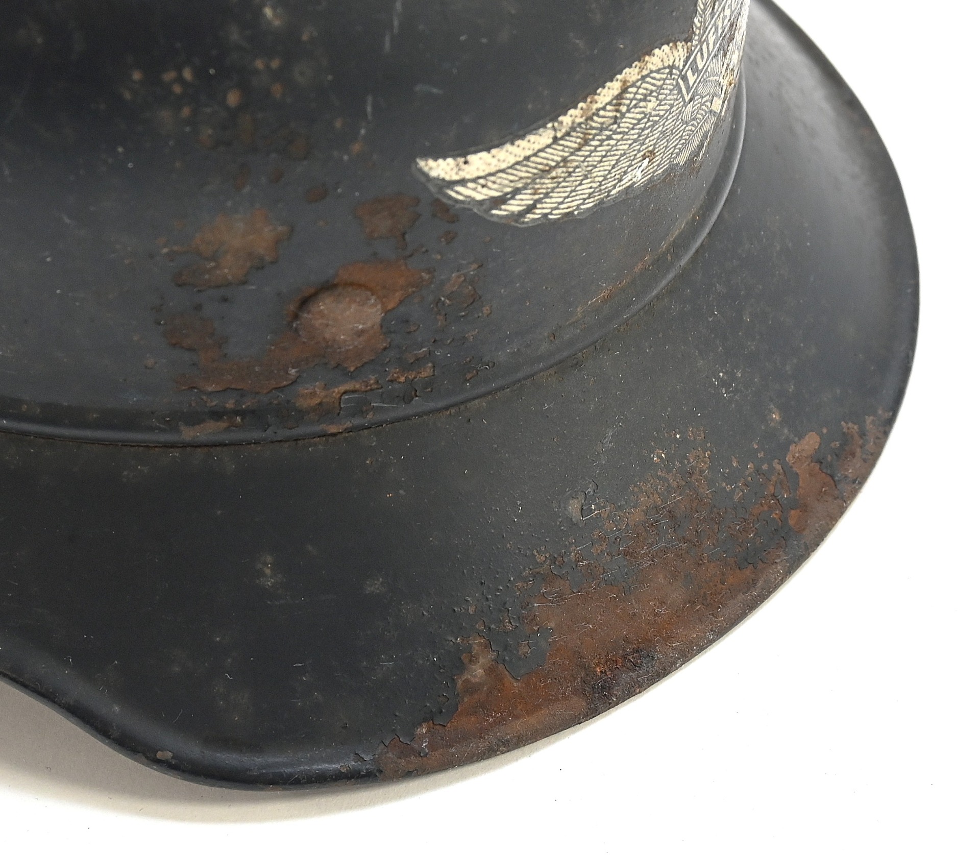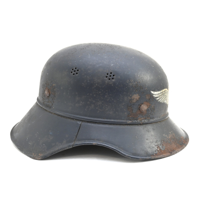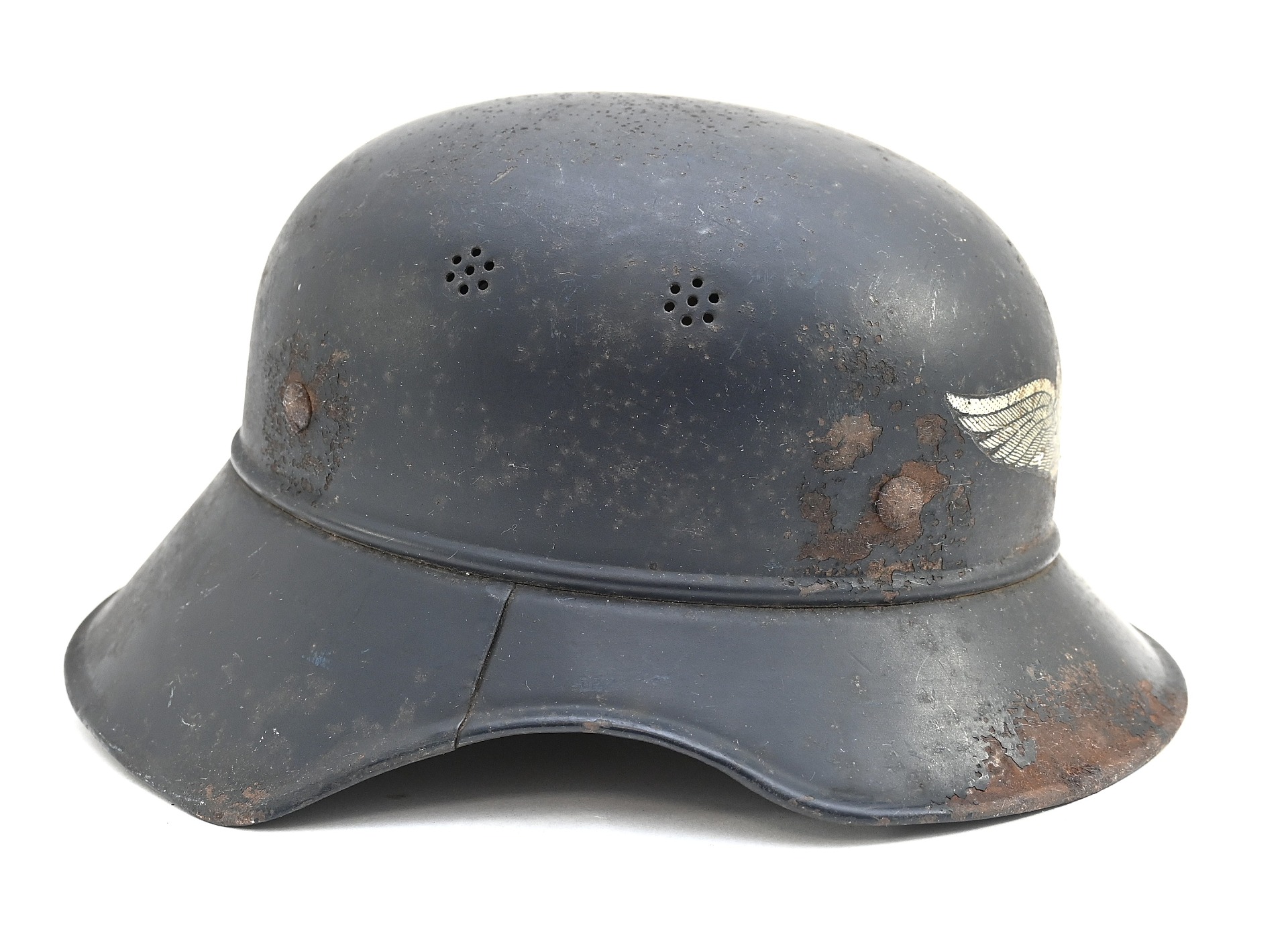 Nice 3-piece constructed Luftschutz 'Gladiator' helmet in worn, but good condition.