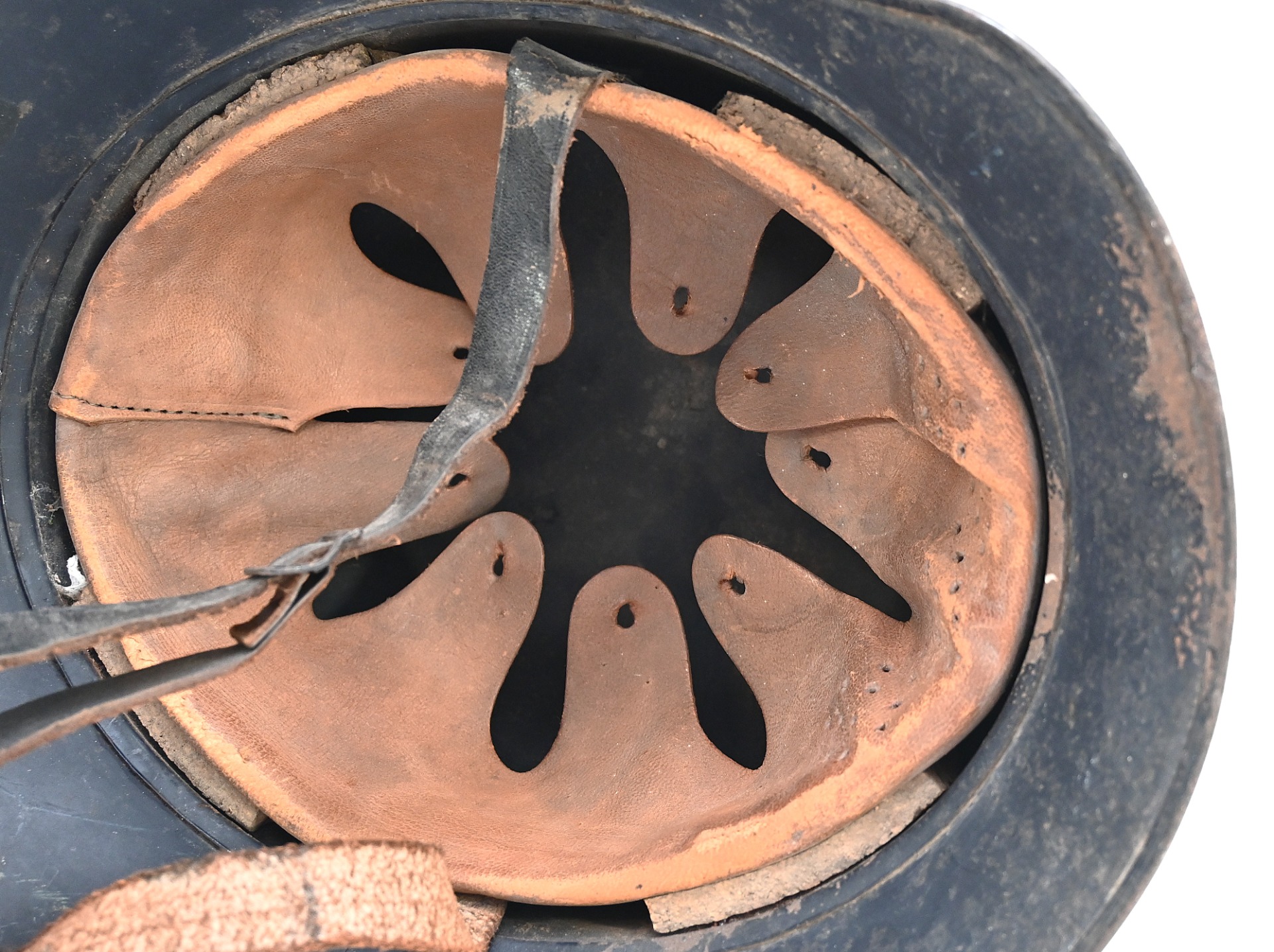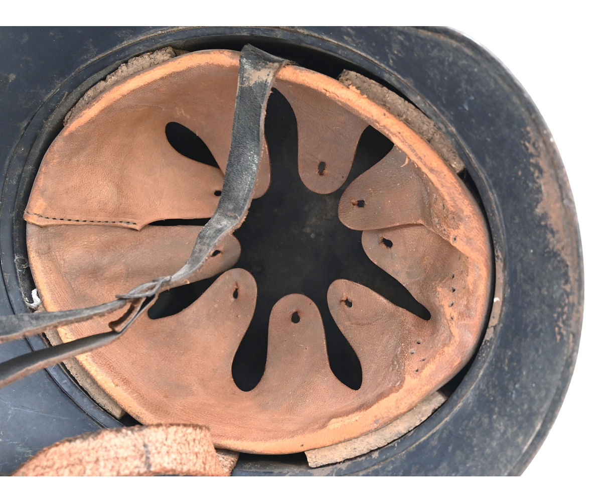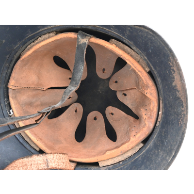 The helmet shows overall normal signs of wear. Over 85% of its original blue color is present and the decal is for 99% intact. The liner and chin strap are present. The helmet is nicely 'RL-2 39/11' marked. The size of the helmet is 55.