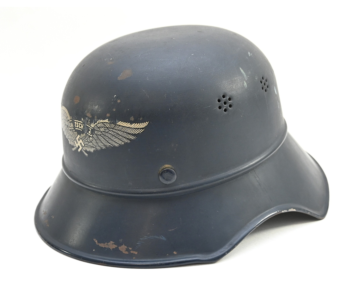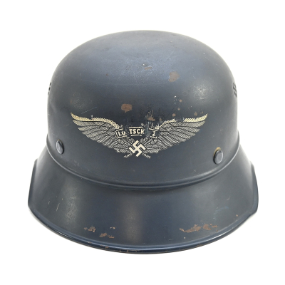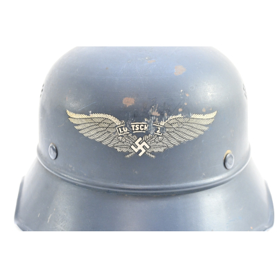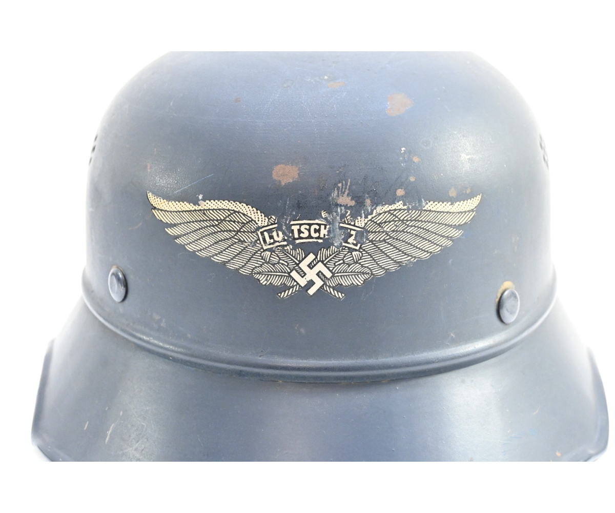Nice 3-piece constructed Luftschutz 'Gladiator' helmet in worn, but good condition.