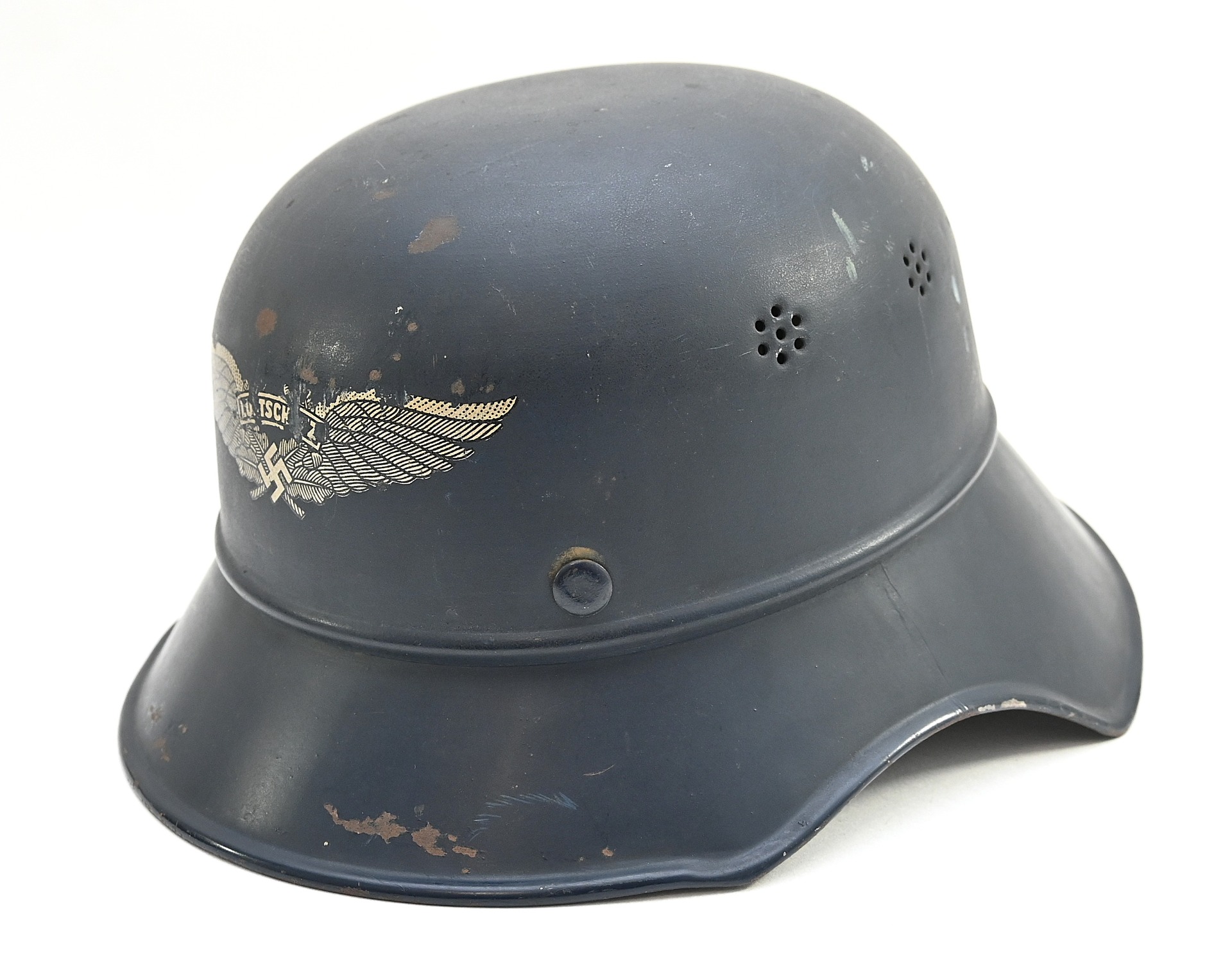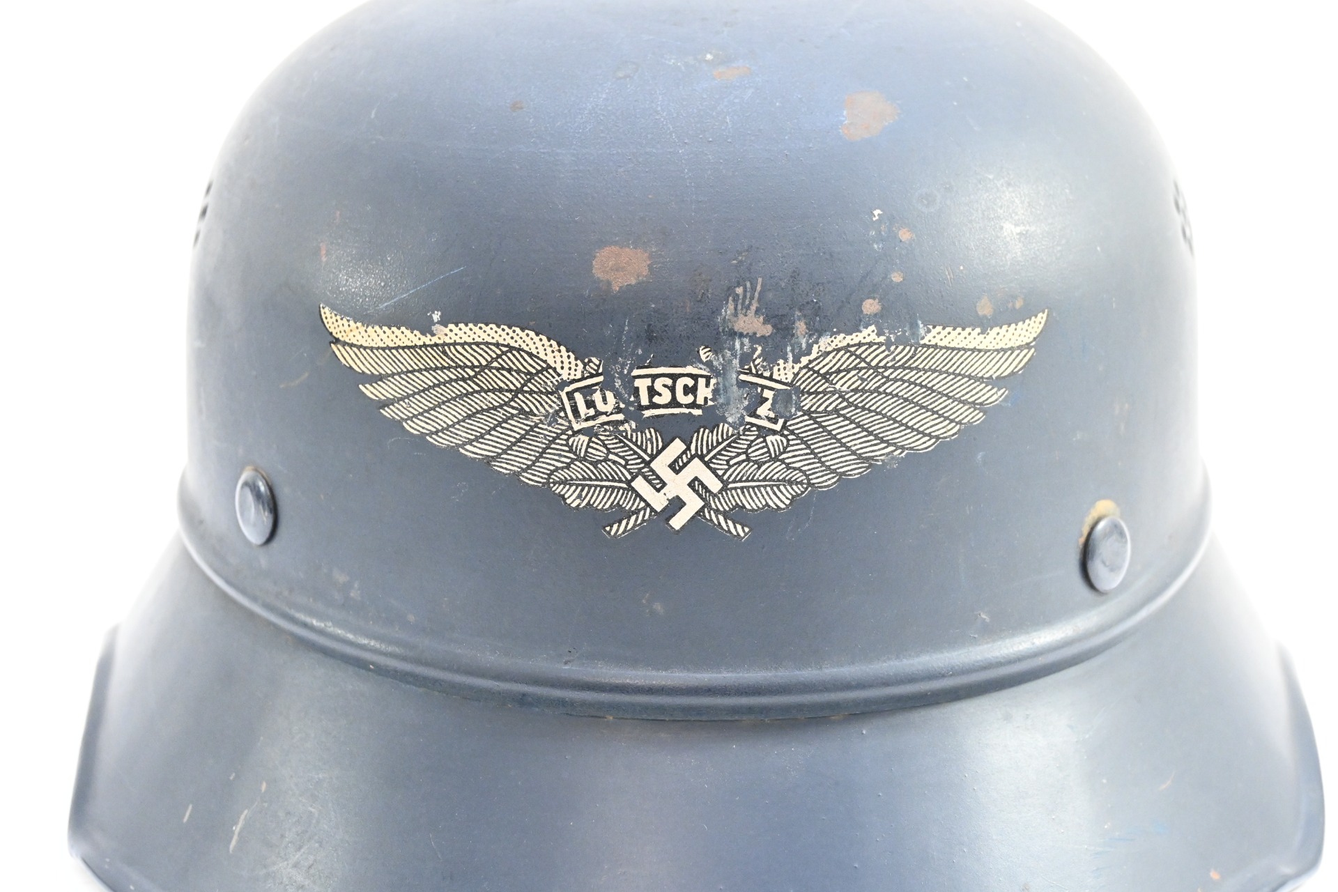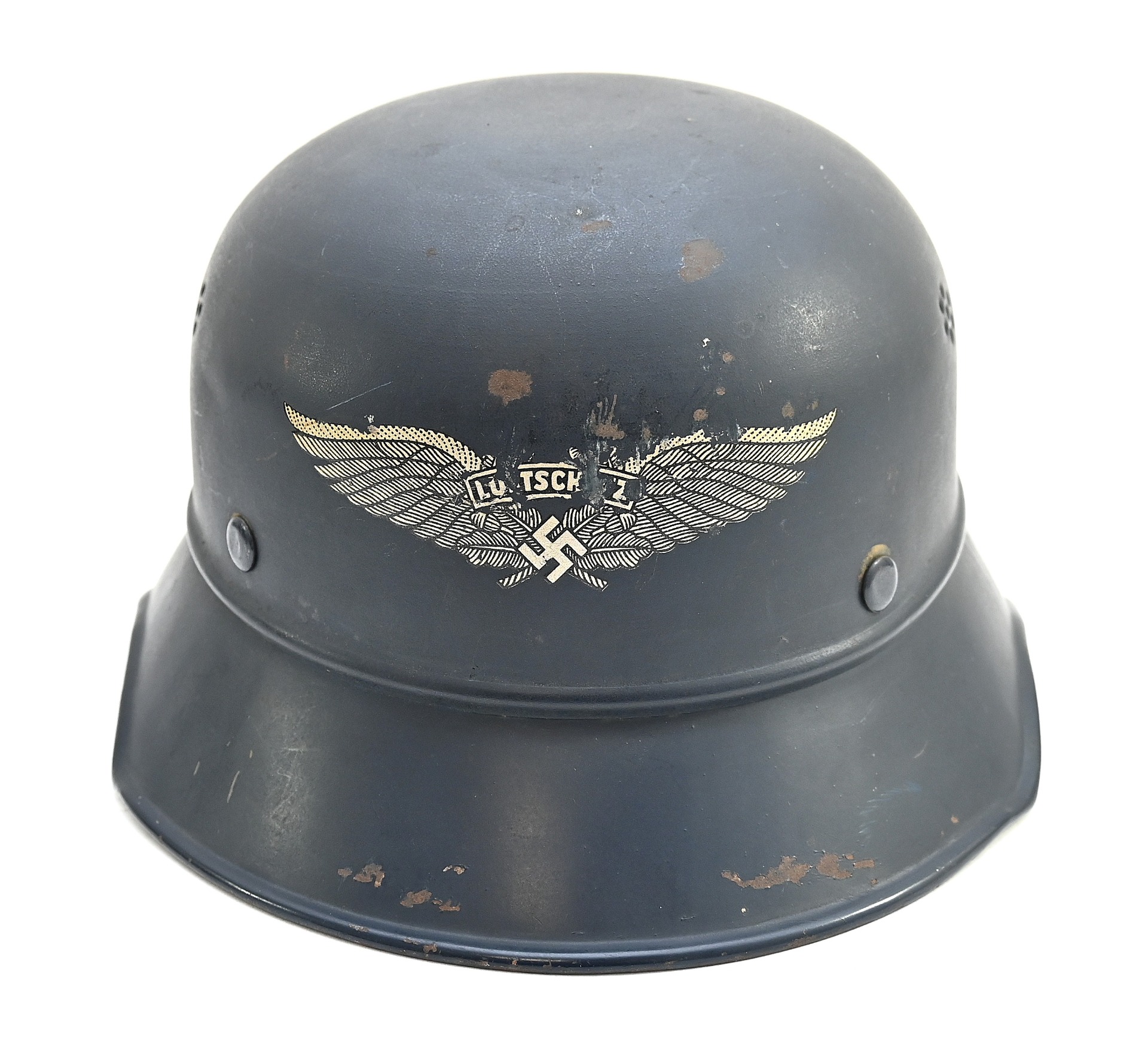 Nice 3-piece constructed Luftschutz 'Gladiator' helmet in worn, but good condition.