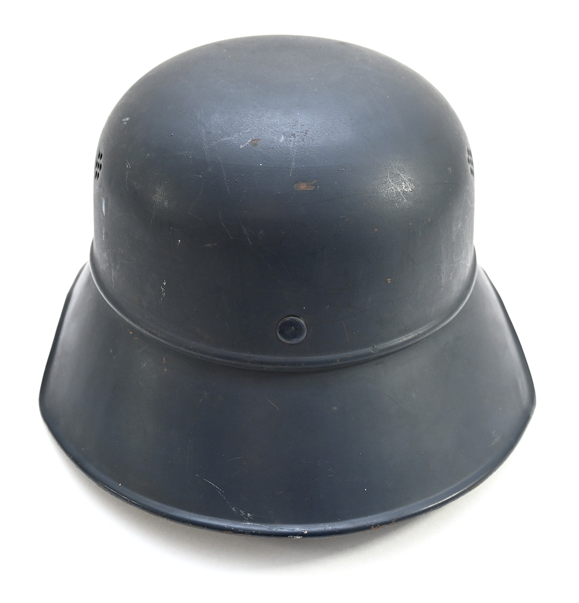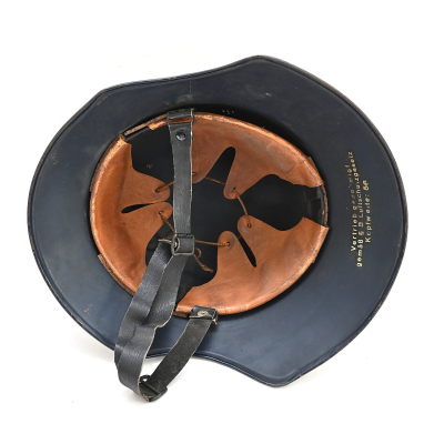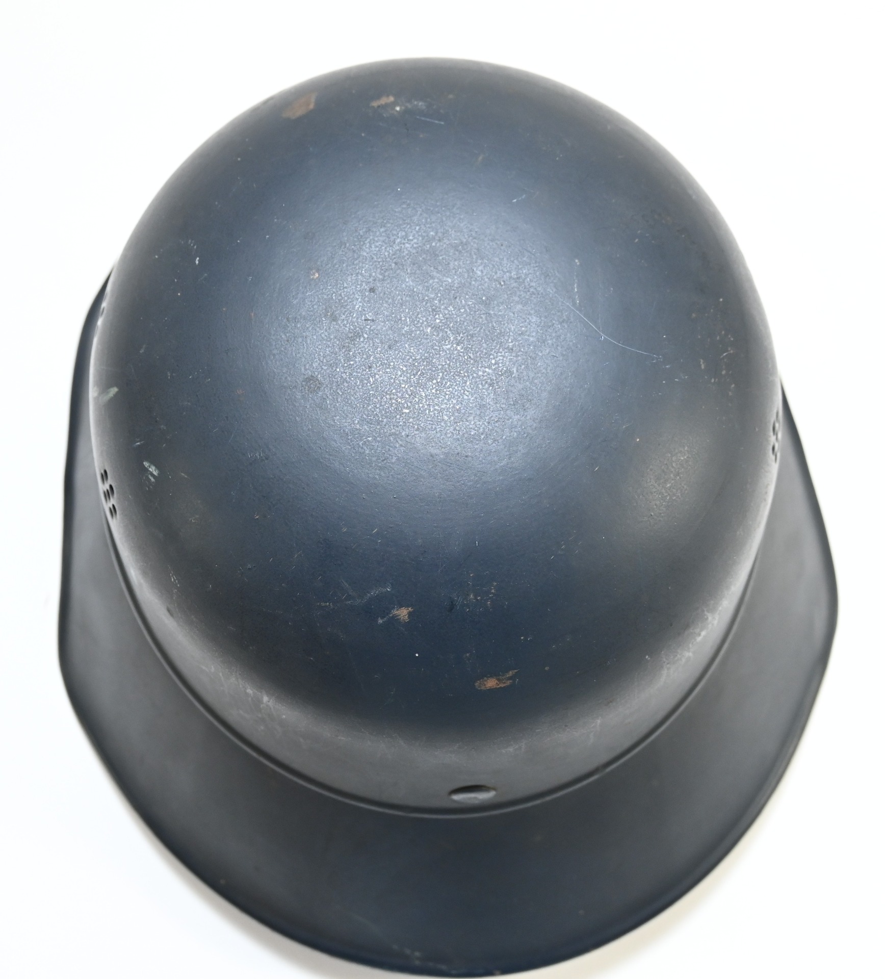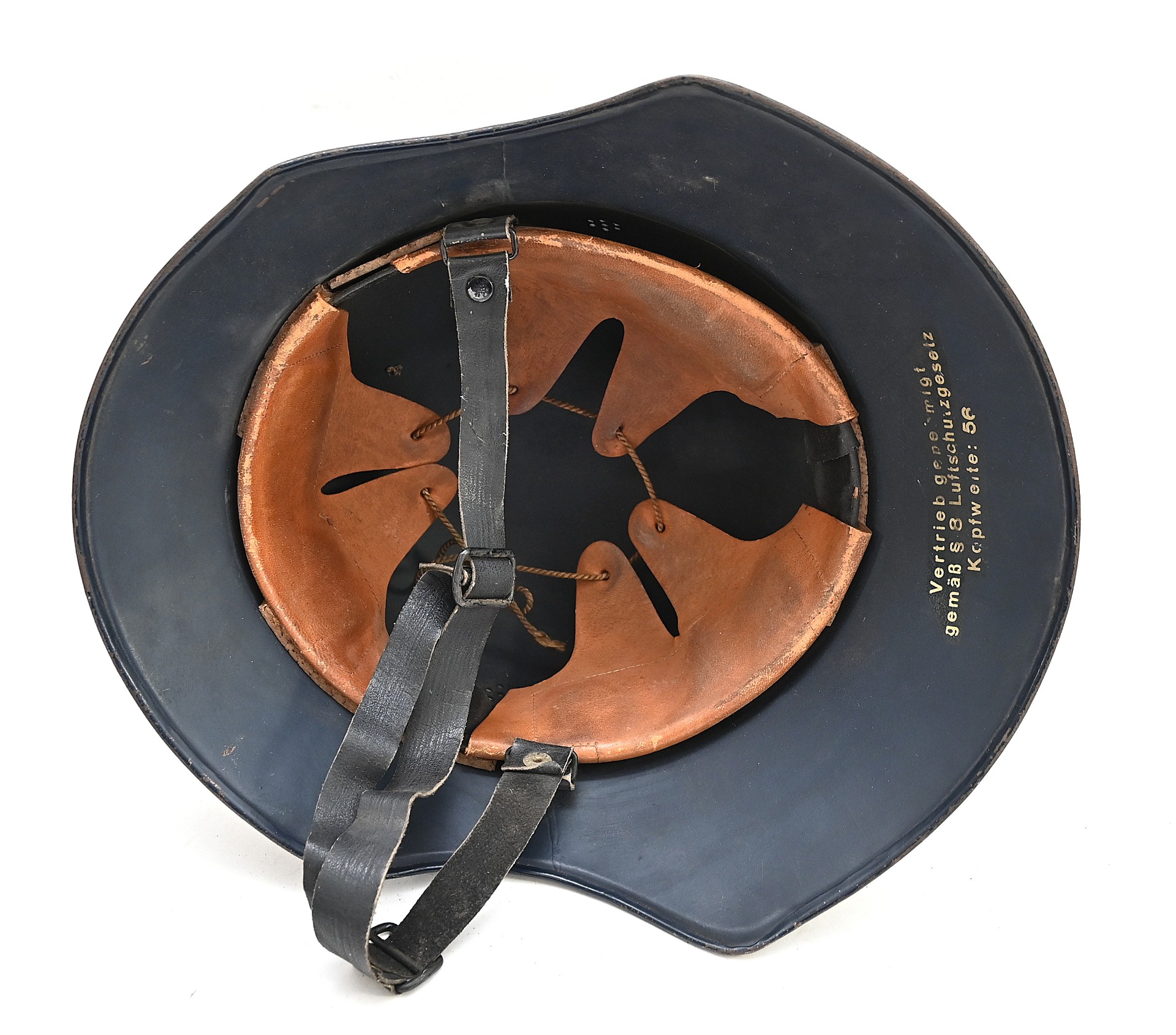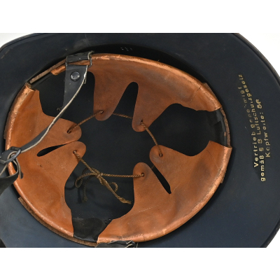 The helmet shows overall normal signs of wear. All of its original blue color is present and the decal is for 99% intact. The liner and chin strap are present. The helmet is nicely 'RL-2 38/28' marked. The size of the helmet is 56.