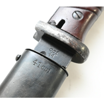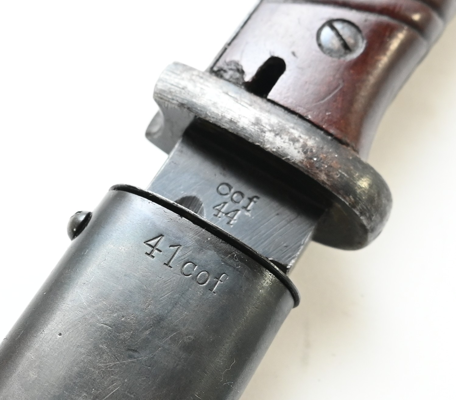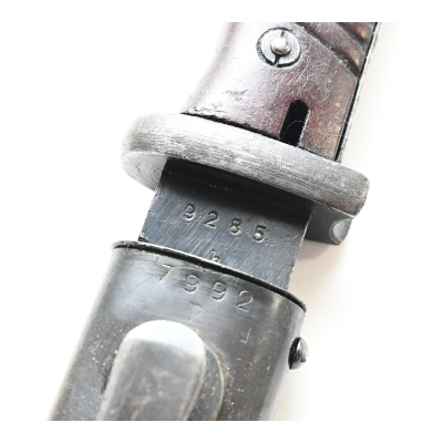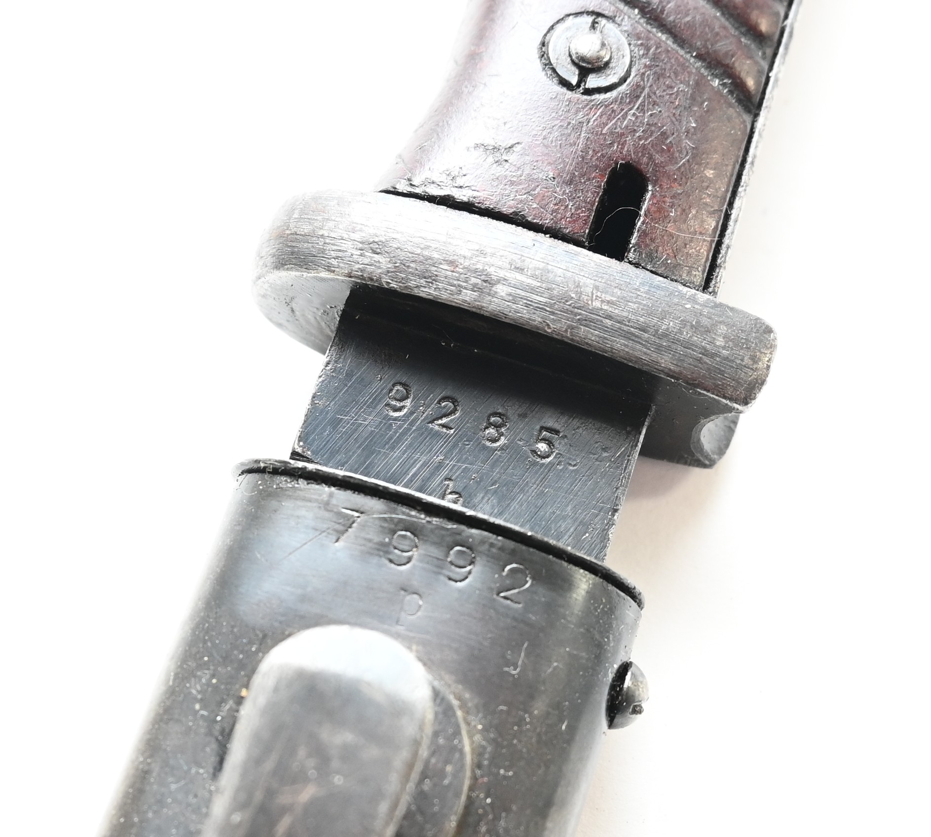 Both the bayonet as the scabbard are marked by the same maker 'cof', but on the other side the blade is marked with number '9285' and the scabbard with number '7992'.