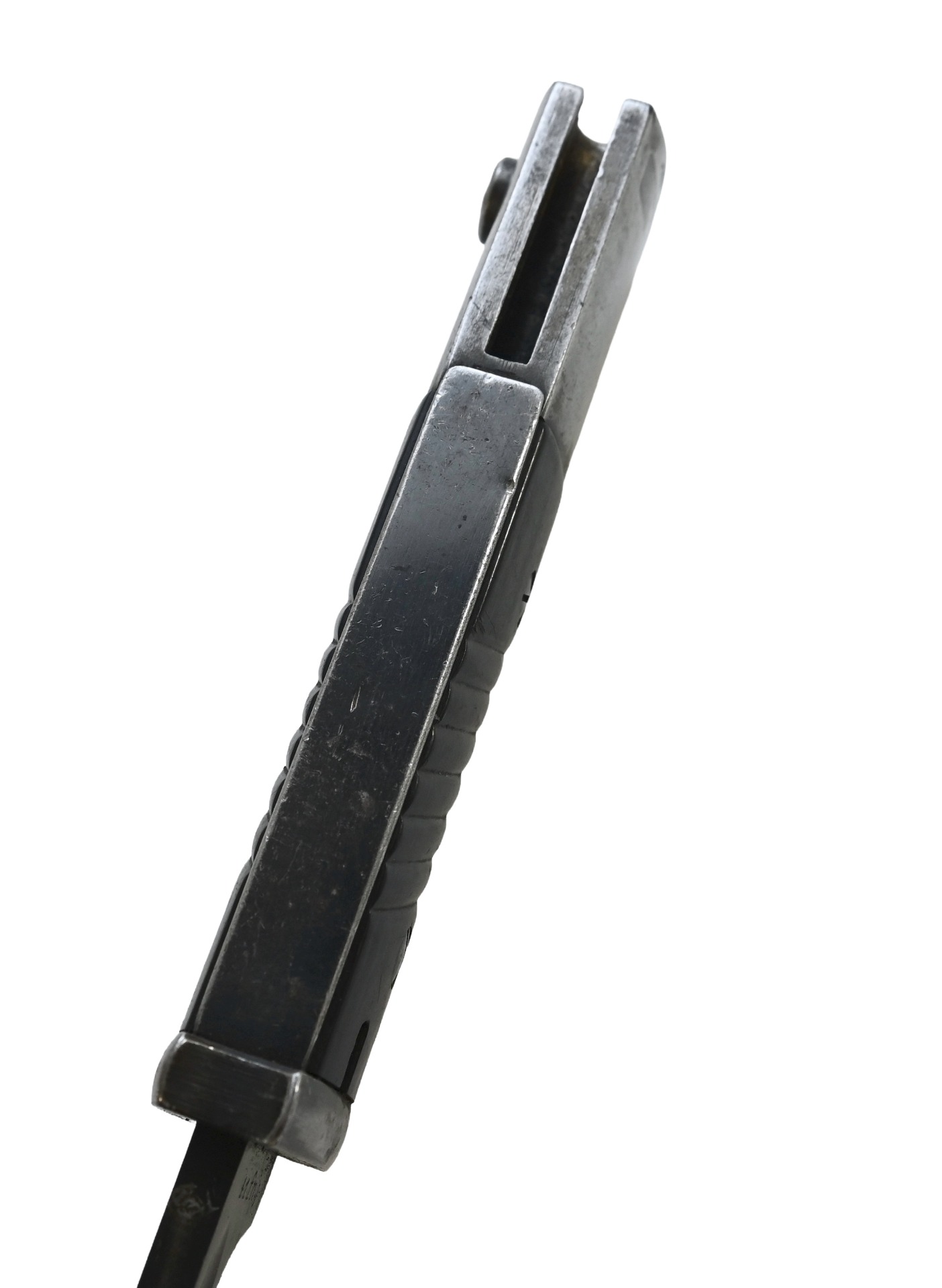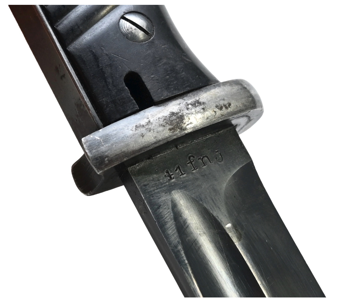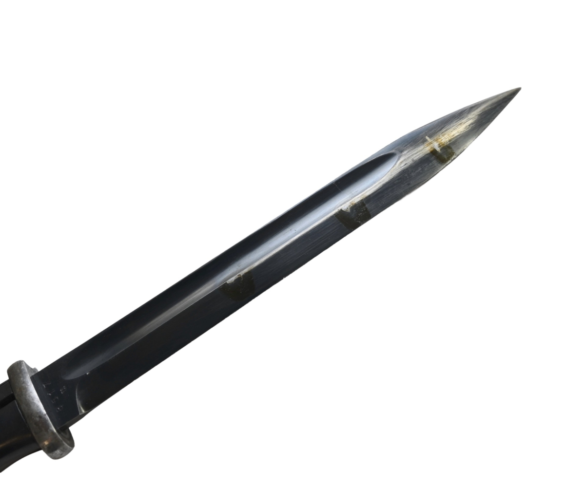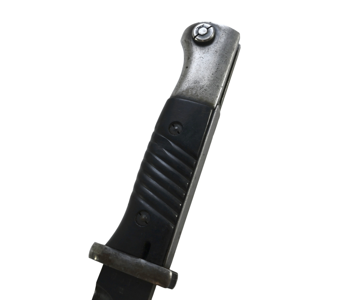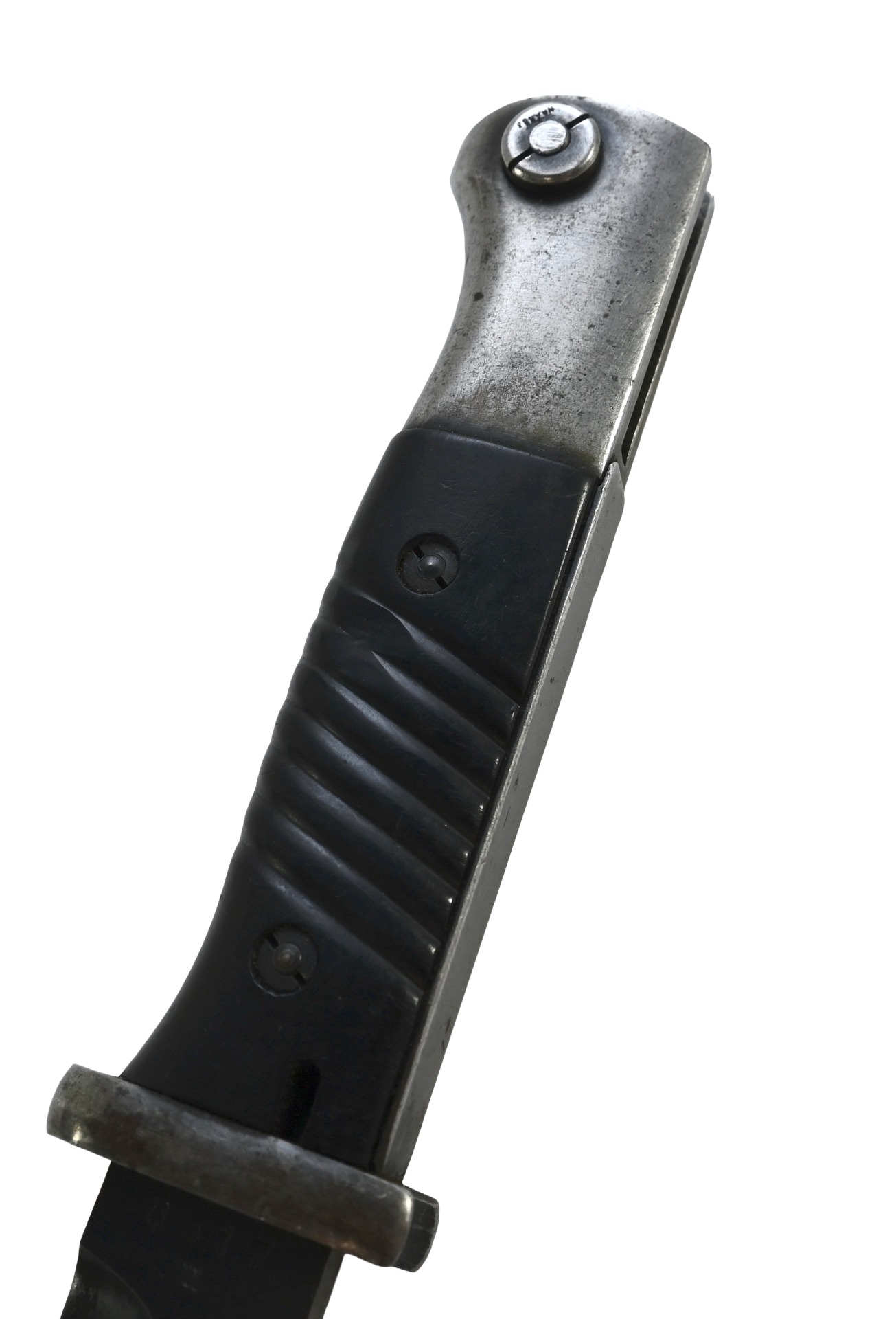 Both the bayonet as the scabbard are marked with the number ‘8517' and on the other side with the maker 'fnj' ('Alexander Coppel GmbH' from 'Solingen'). The set is made in '1941'. Both the blade as the bakelite grips are in good condition. The set has multiple 'WaA' stamps (see photos).