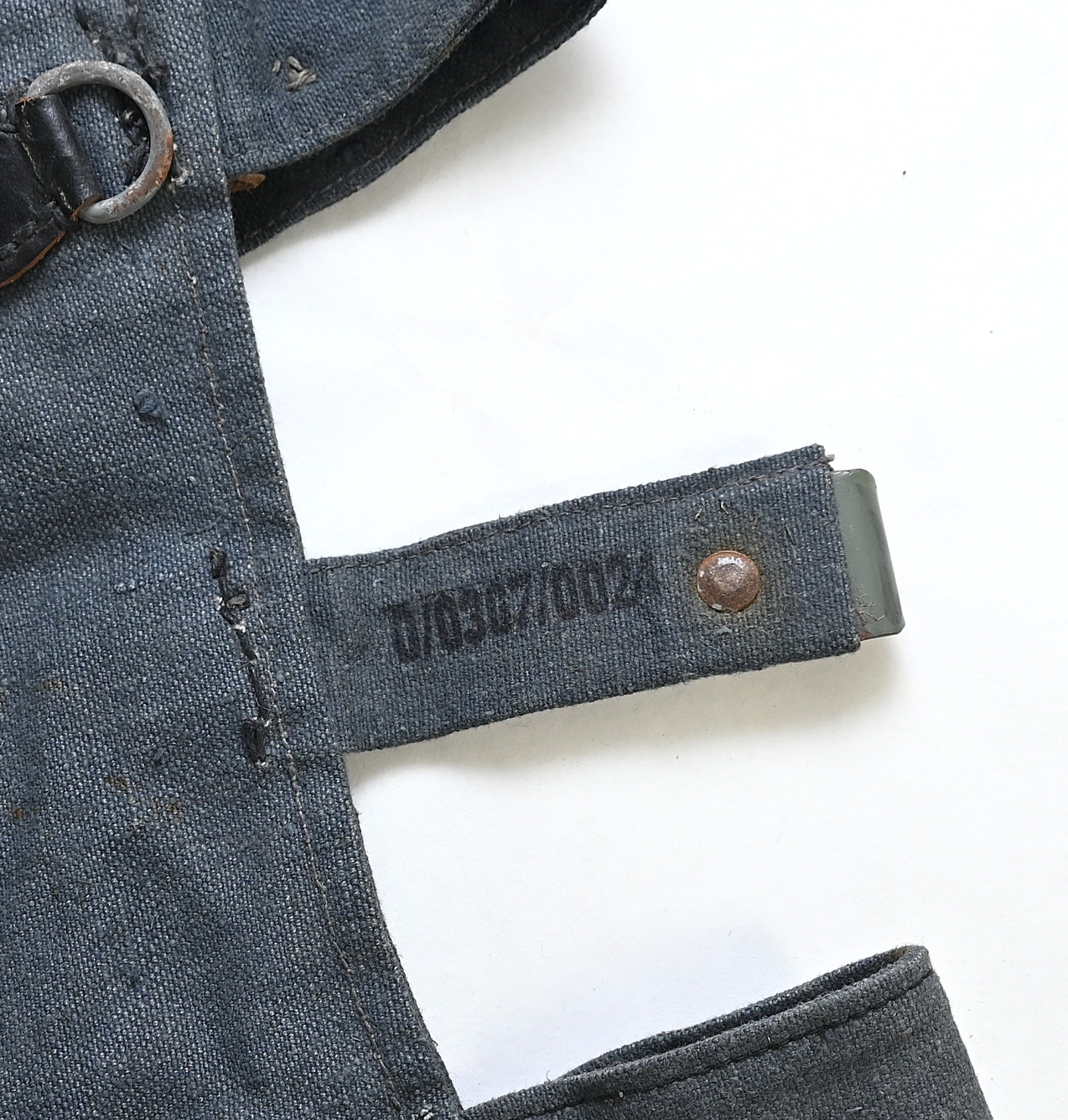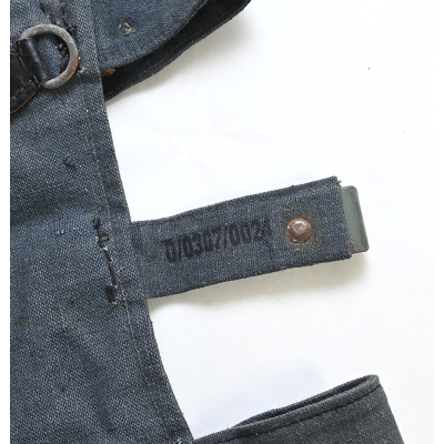 The bag shows overall normal signs of storage wear. Complete with all buttons and (supple) leather parts. Nicely marked on the middl belt support strap with 'RBNr.0/0367/0024'.