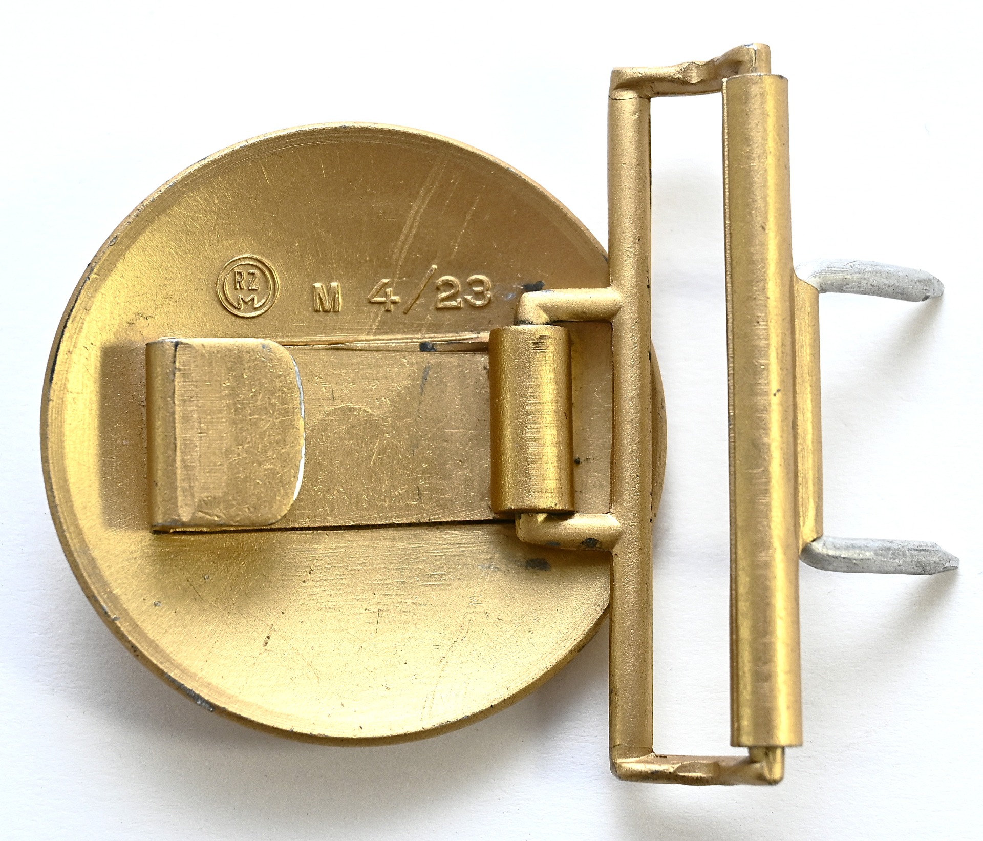 The buckle shows overall minor signs of wear. All of the gilding is present. Nicely marked on the back with 'RZM M4/23' which means it was produced by Friedrich Linden from Lüdenscheid.