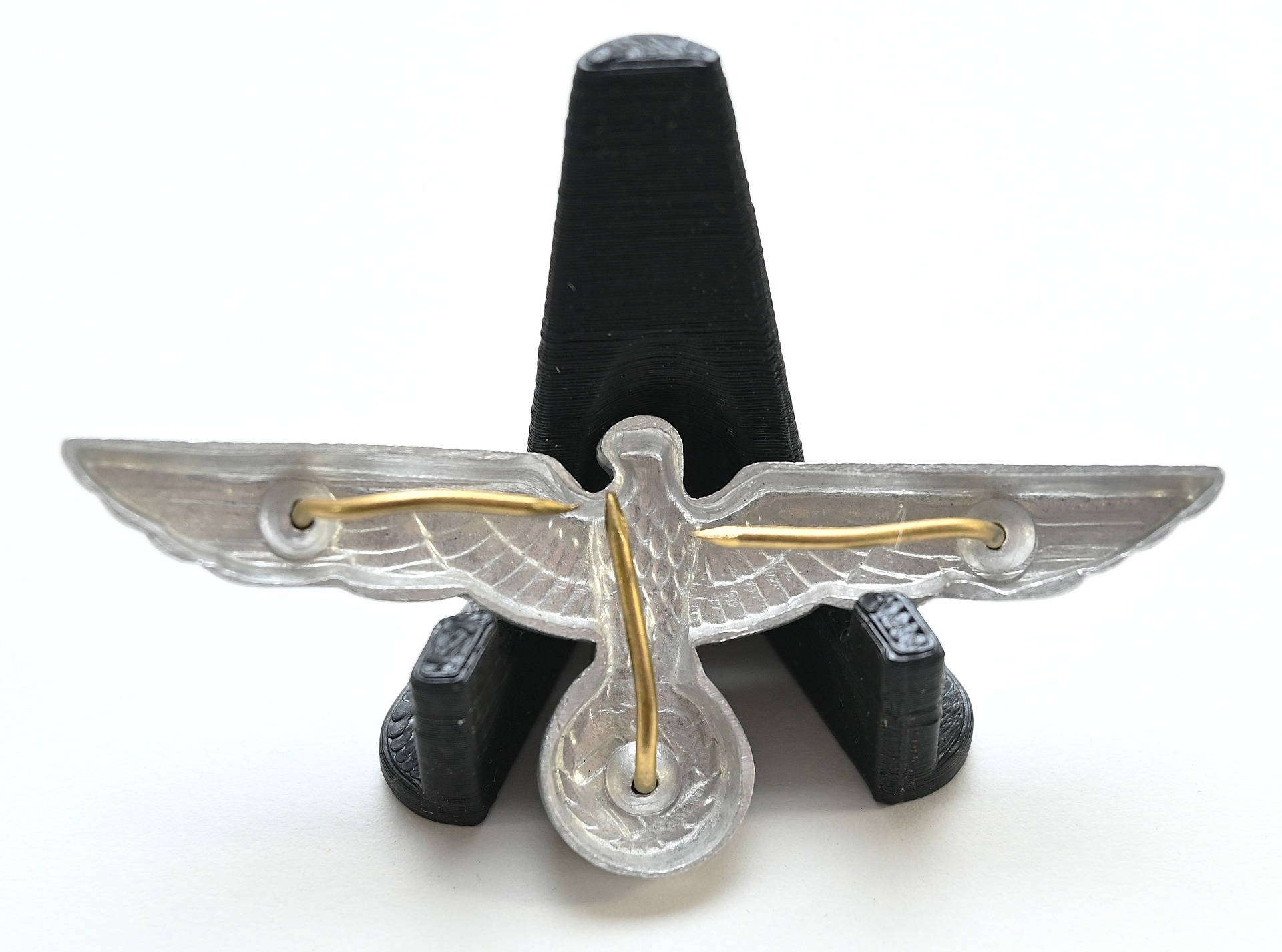 The eagle shows overall normal signs of storage wear. It's complete with 3 prongs on the back.