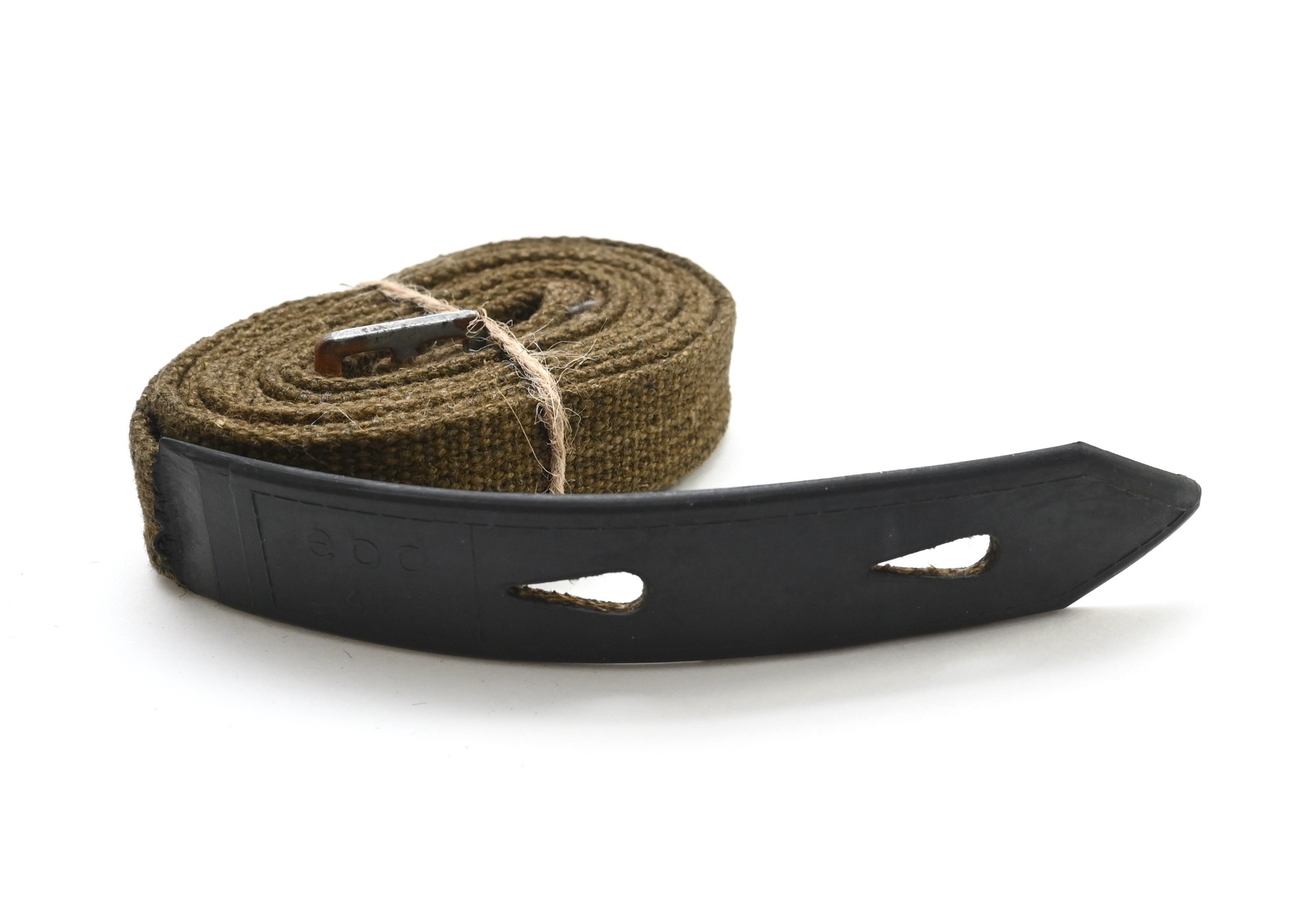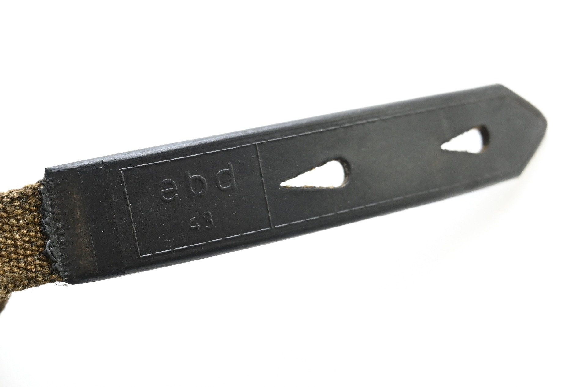 The strap shows overall normal signs of storage wear. It's solid and there are no damages. The rubber section is still supple. Marked with a 3-letter code 'ebd43'.