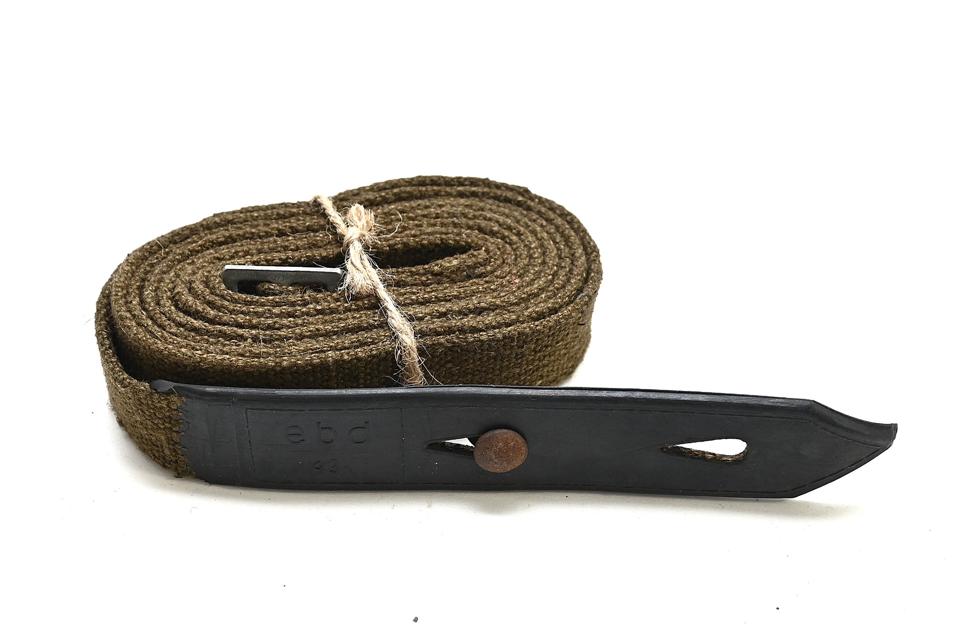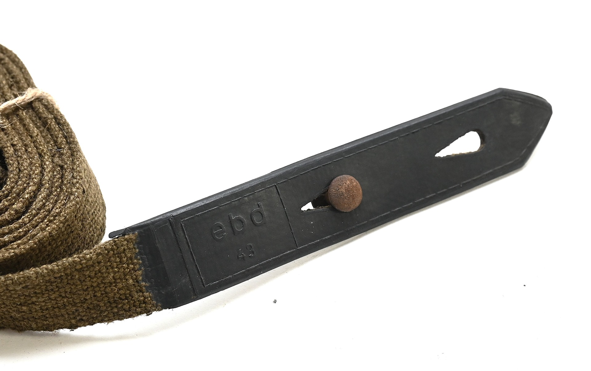 The strap shows overall normal signs of storage wear. It's solid and there are no damages. The rubber section is still supple. Marked with a 3-letter code 'ebd43'.