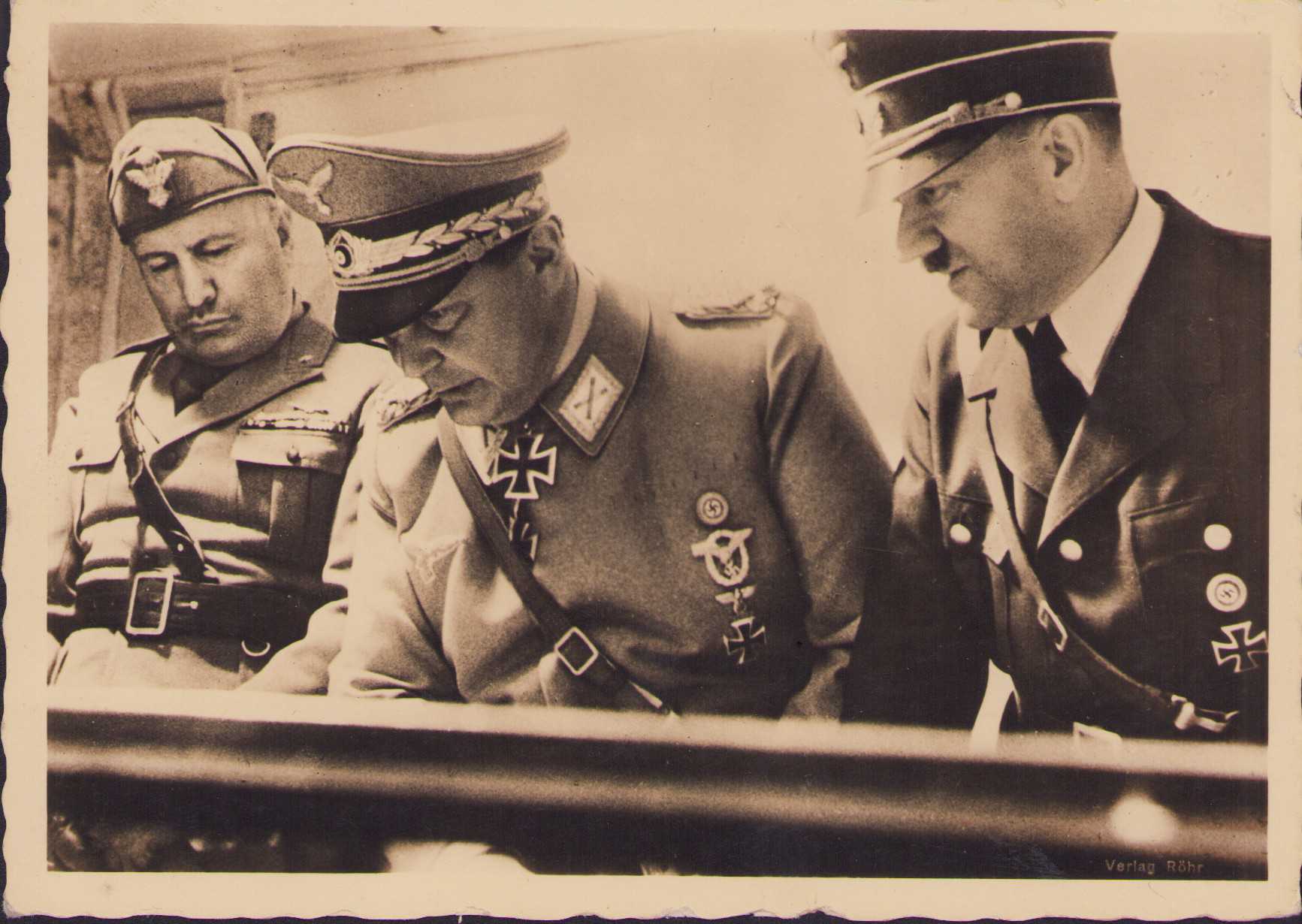 Very nice propaganda postcard in excellent condition of Benito Mussolini, Hermann Göring and Adolf Hitler.
