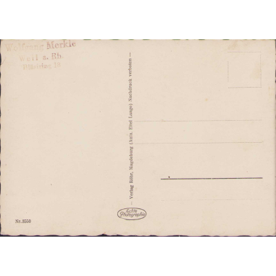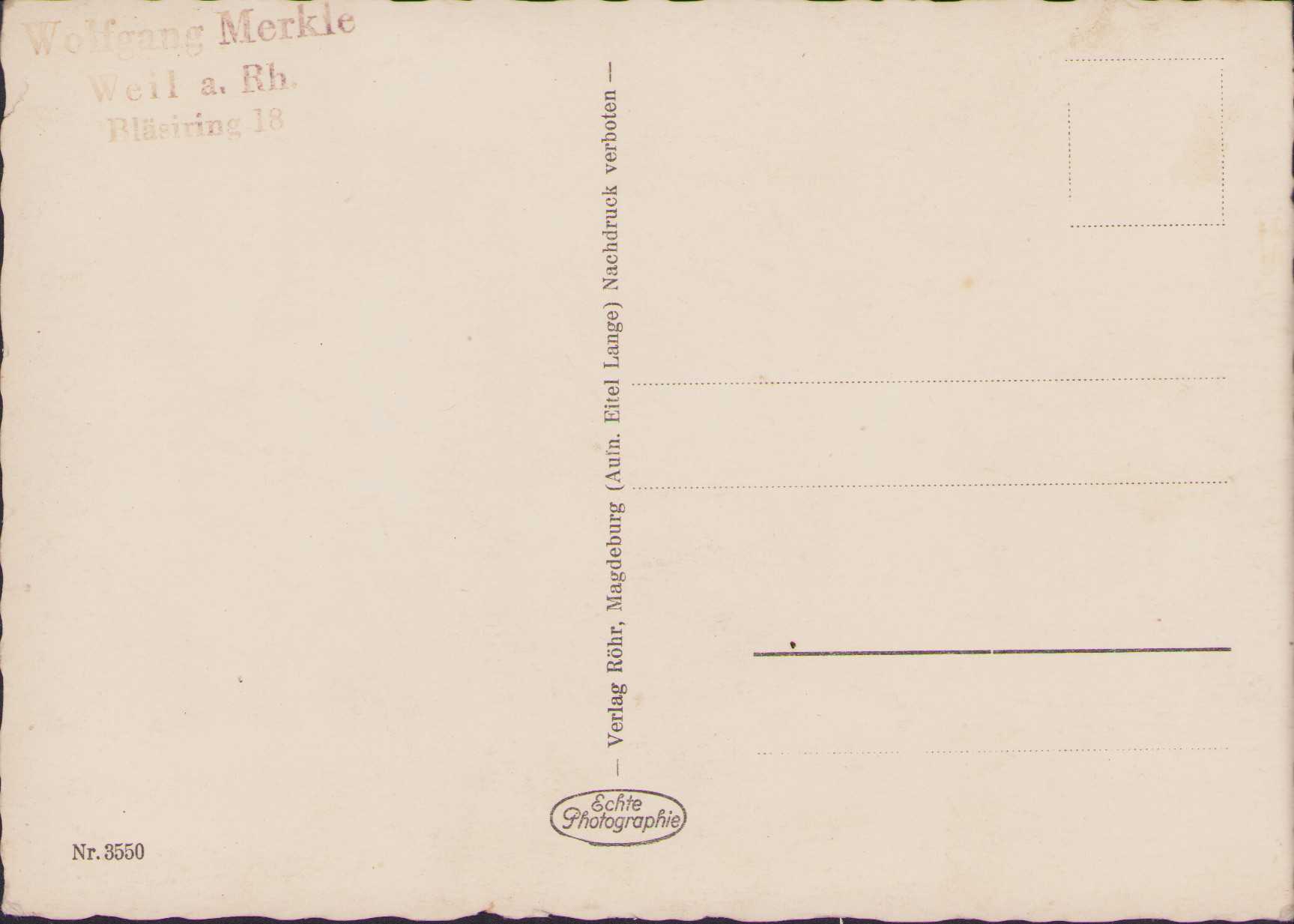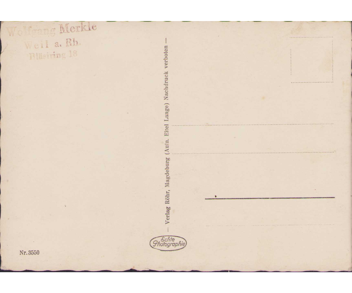 The postcard shows overall normal signs of storage wear. Named on th back Wolfgang Merkle.