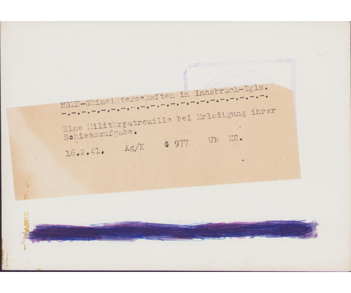 The photograph shows overall normal signs of storage wear. It's complete with paper caption on the back. It was taken during a sport contest and here they are at the shooting range.