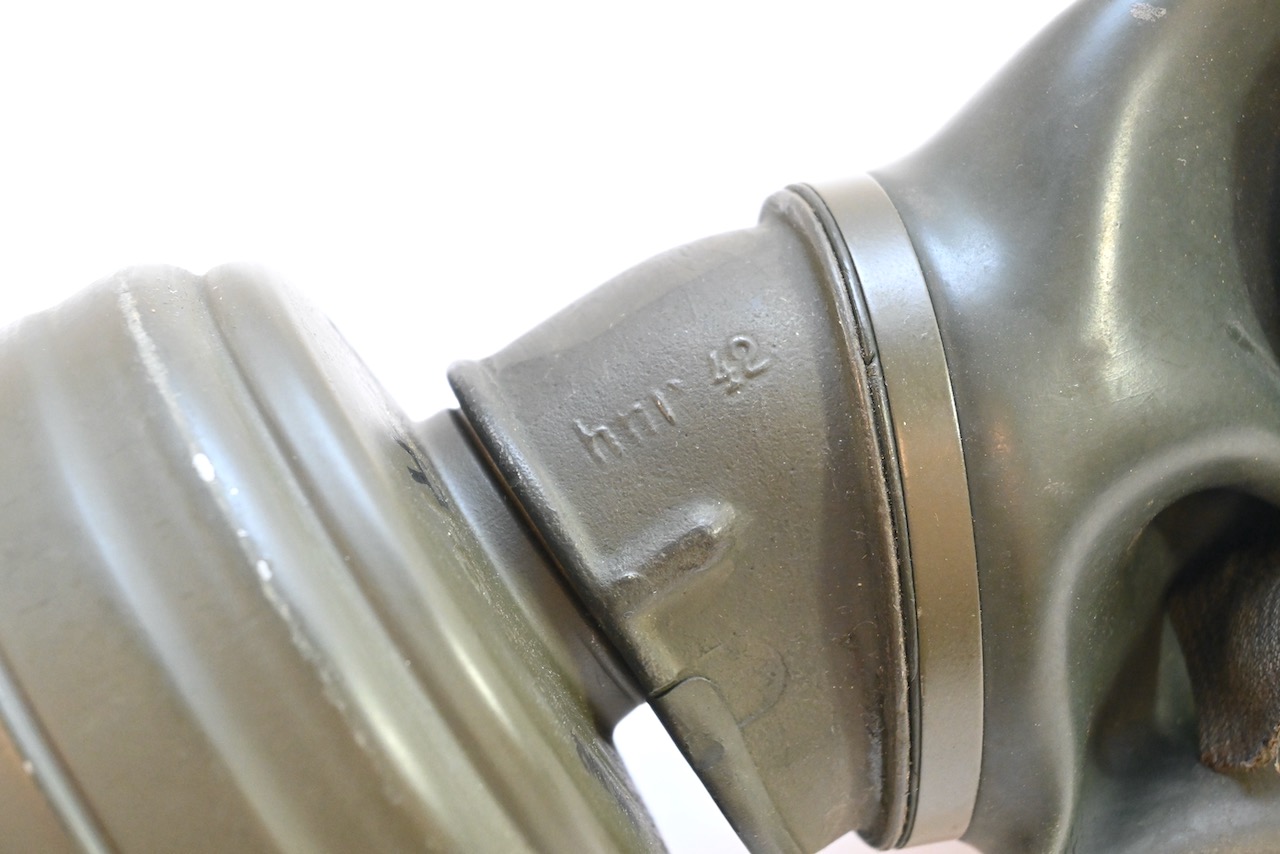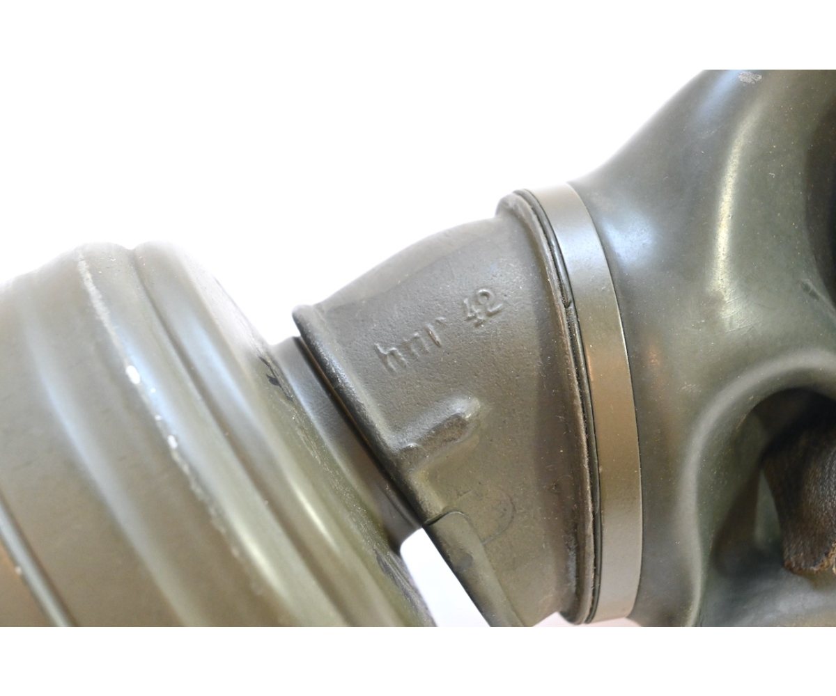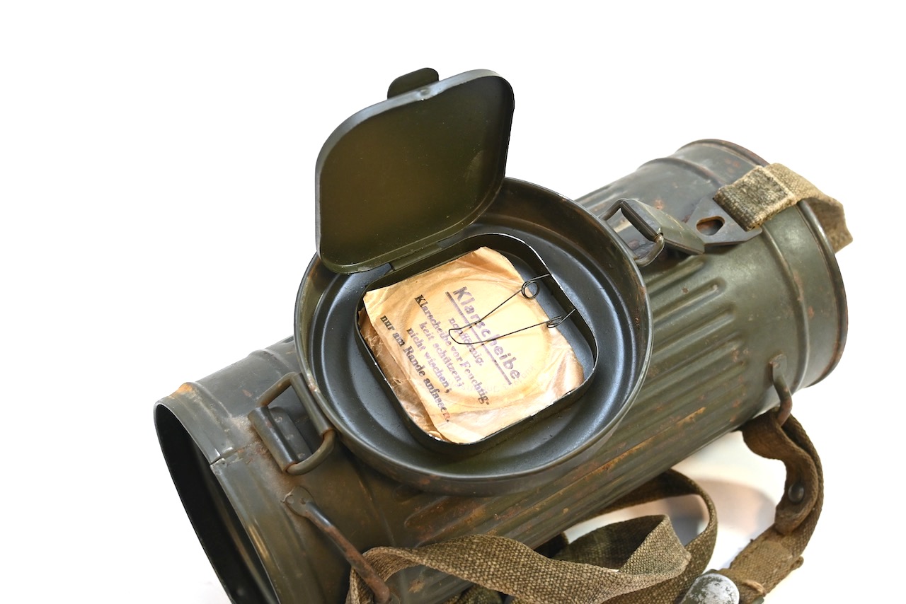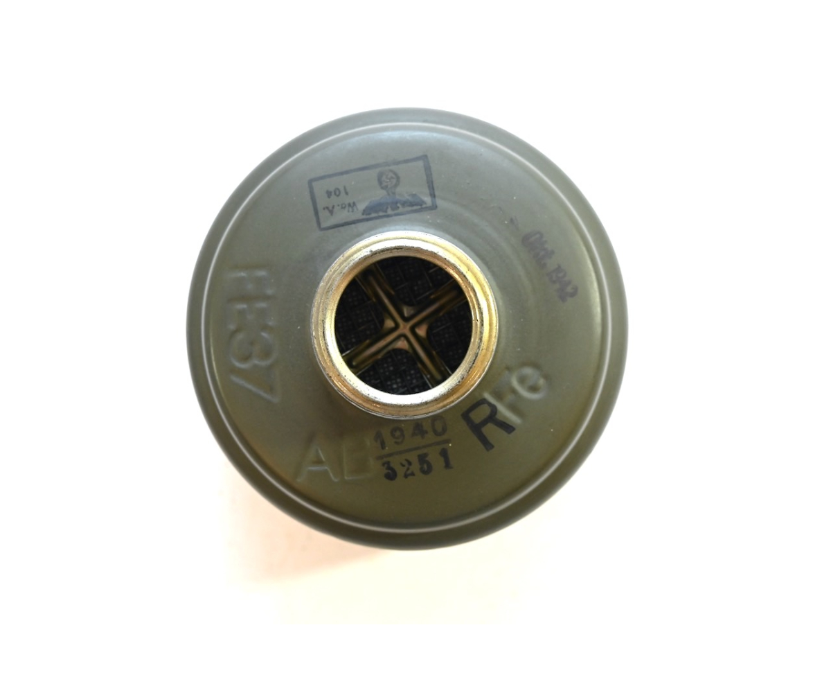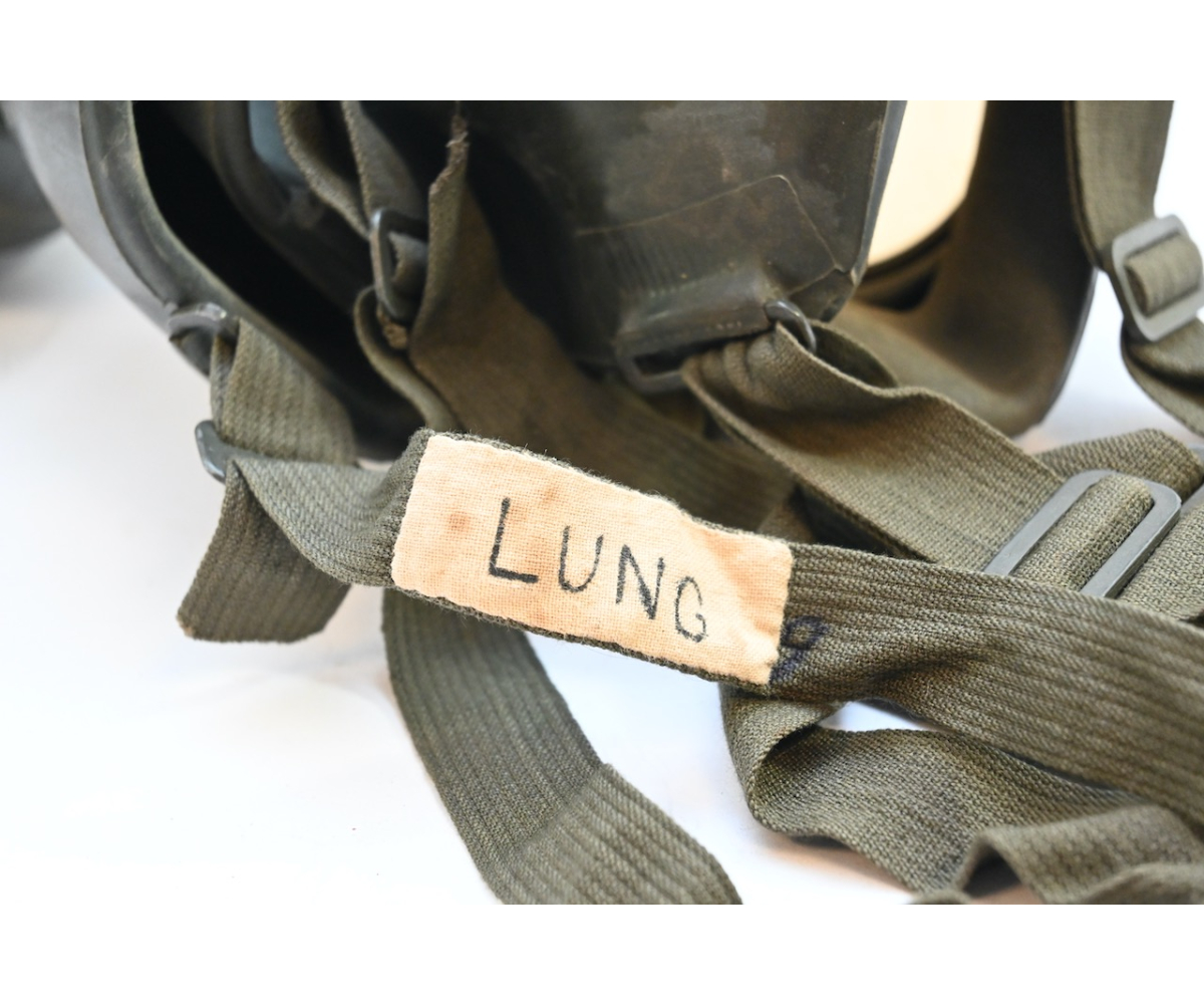 The gasmask is also in great condition. The Canvas is supple and it's complete with straps and filter. There is also a nametag of Lung attached to one of the straps. Both the gasmask (1942) and the filter (1942) are multiple marked. The set comes with it's retaining spring and cleaning cloth. Overall a very nice set!