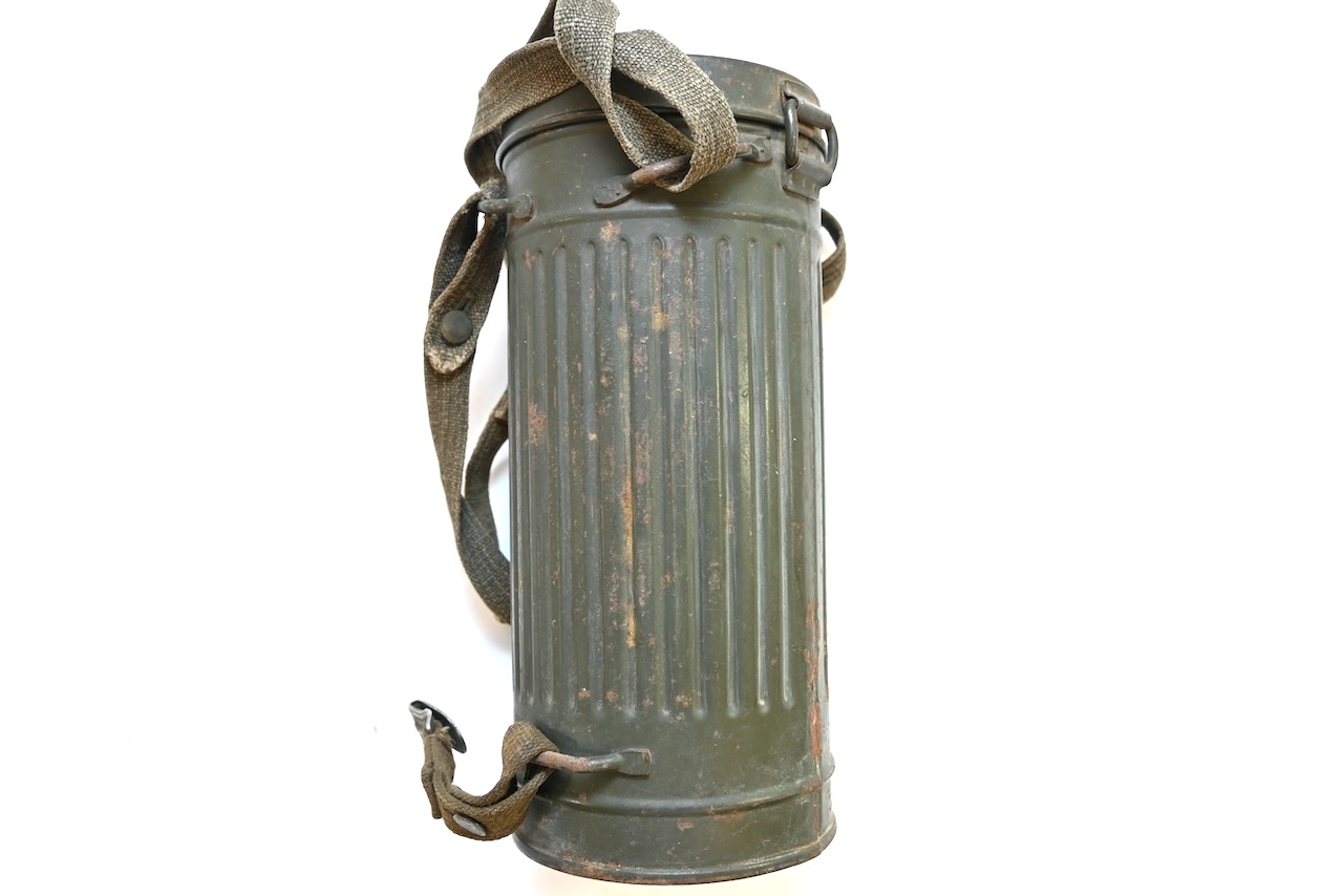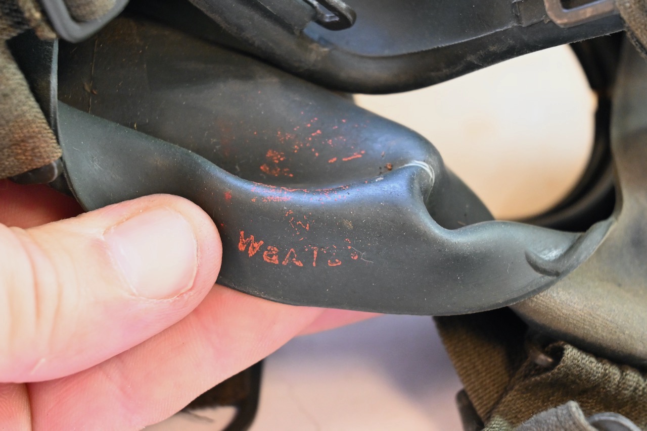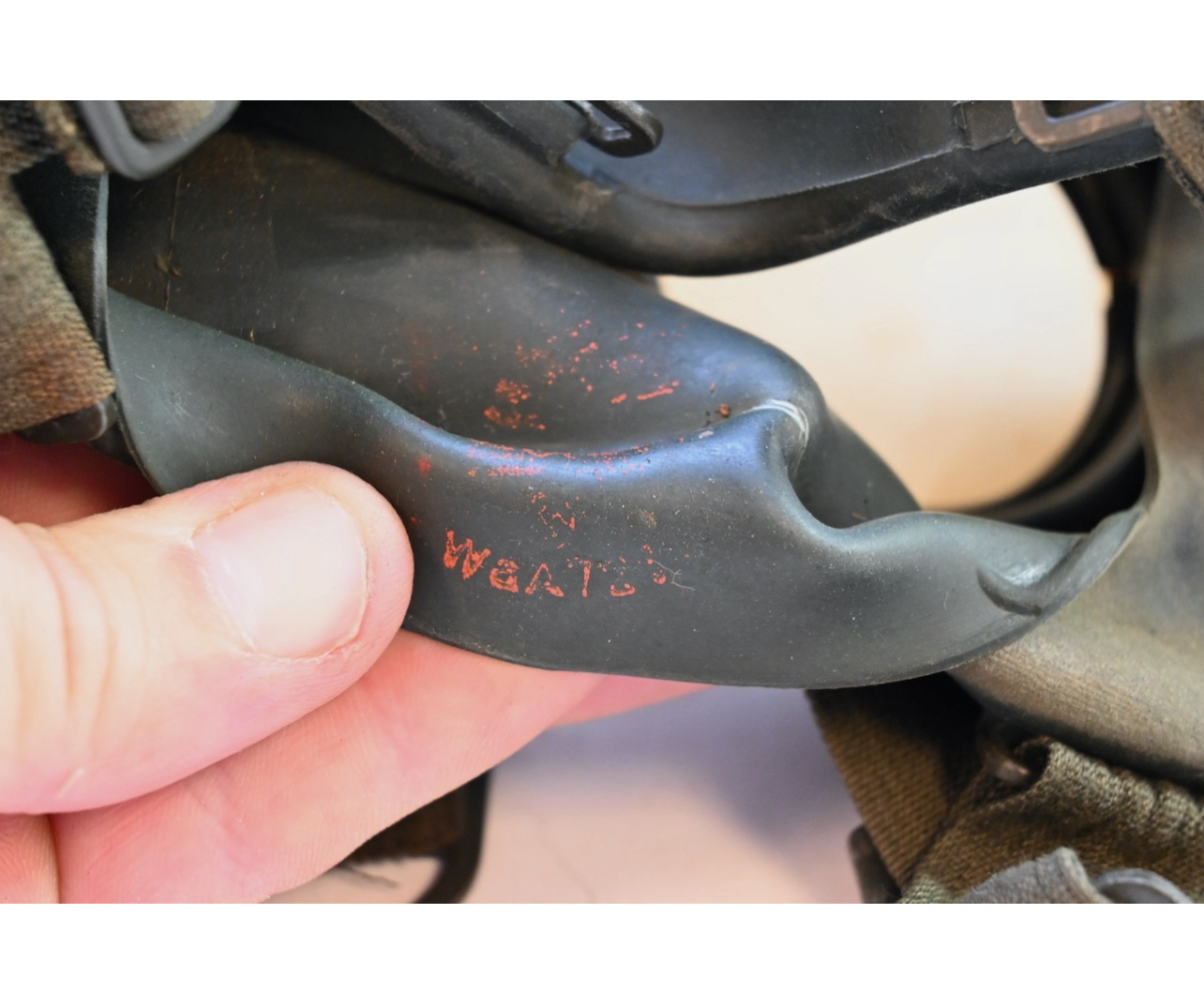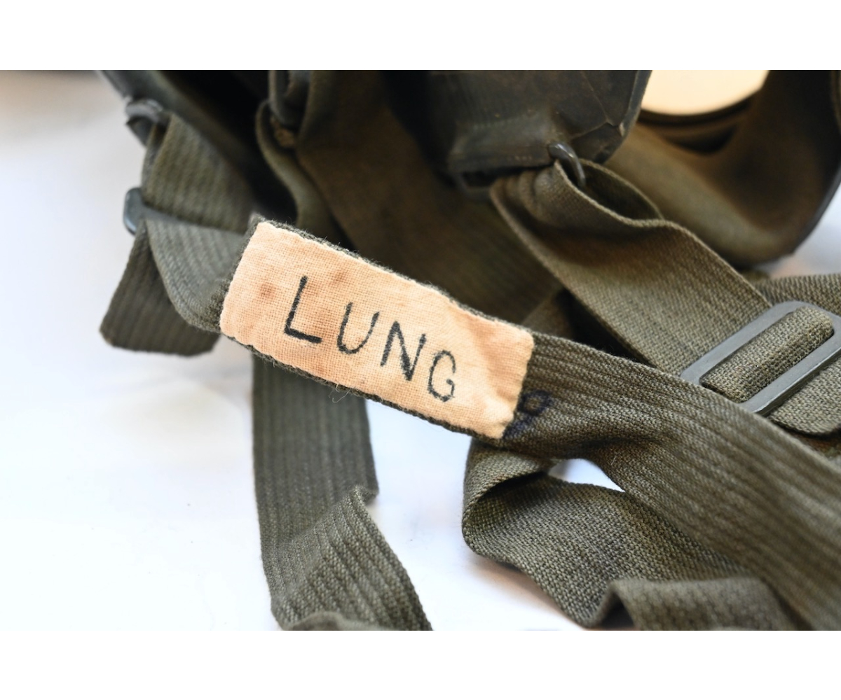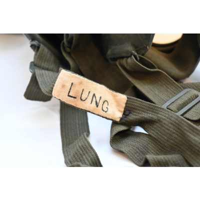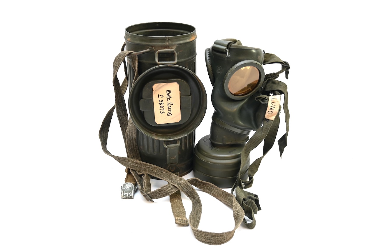 The gasmask is also in great condition. The Canvas is supple and it's complete with straps and filter. There is also a nametag of Lung attached to one of the straps. Both the gasmask (1942) and the filter (1942) are multiple marked. The set comes with it's retaining spring and cleaning cloth. Overall a very nice set!