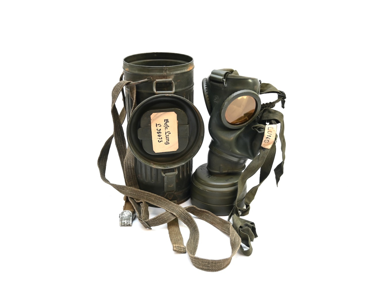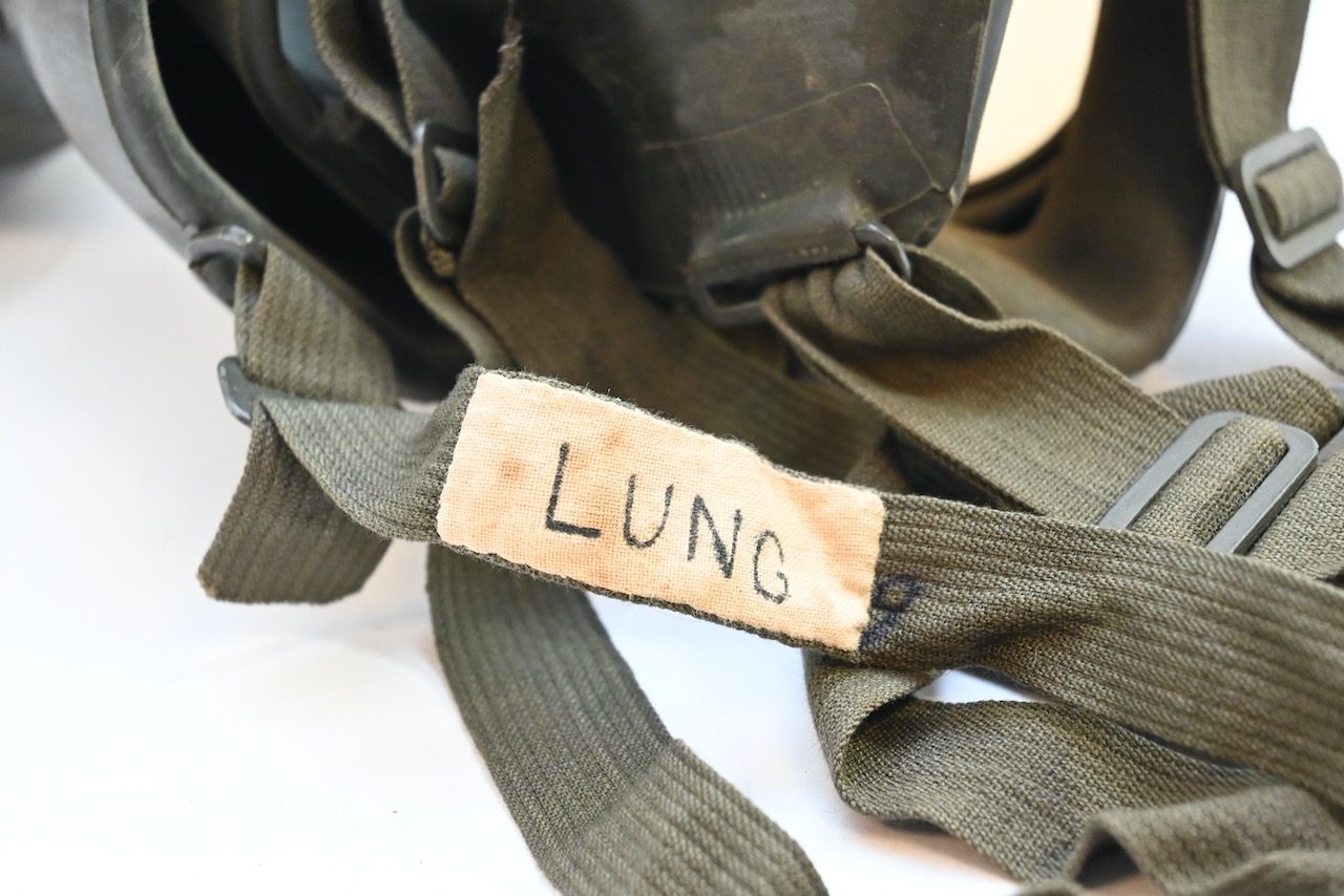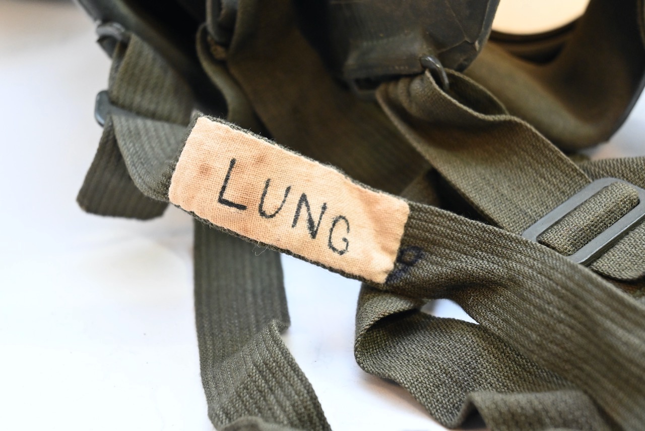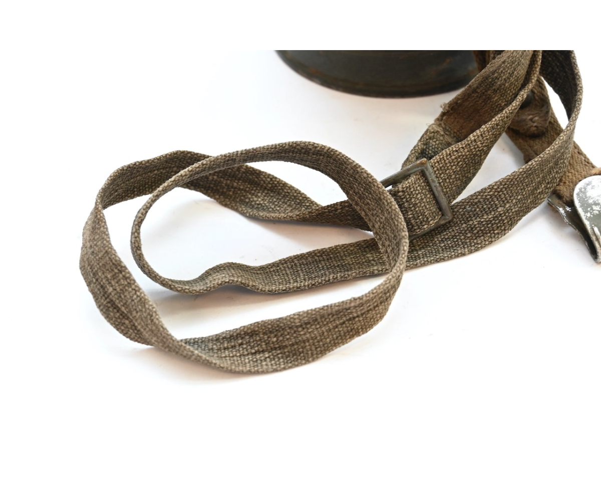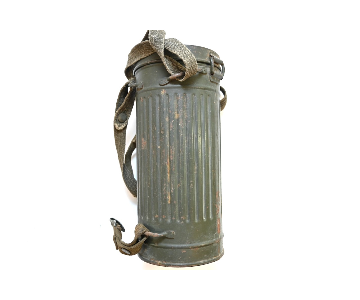 The gasmask is also in great condition. The Canvas is supple and it's complete with straps and filter. There is also a nametag of Lung attached to one of the straps. Both the gasmask (1942) and the filter (1942) are multiple marked. The set comes with it's retaining spring and cleaning cloth. Overall a very nice set!