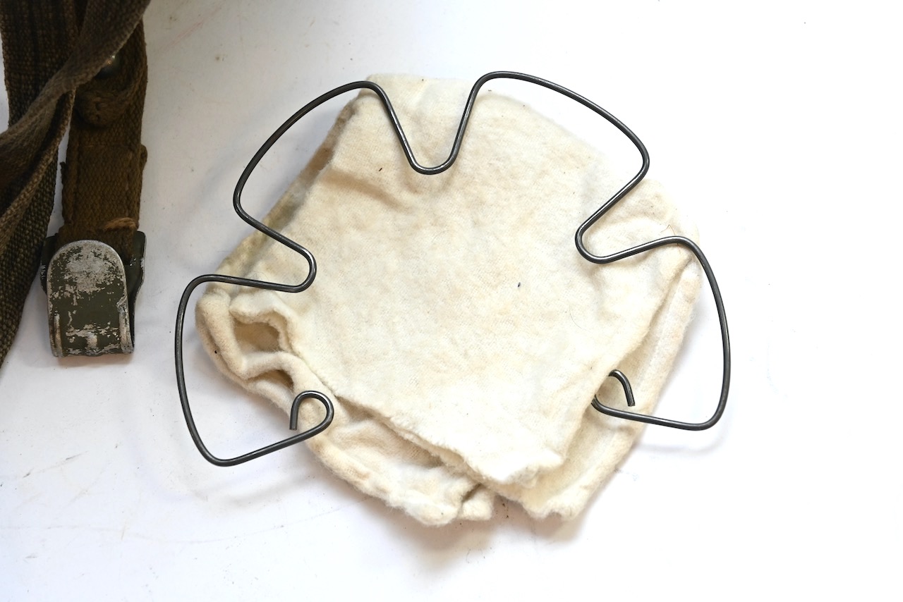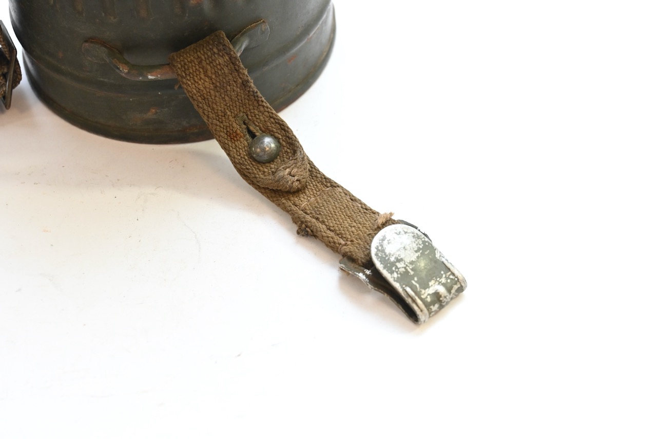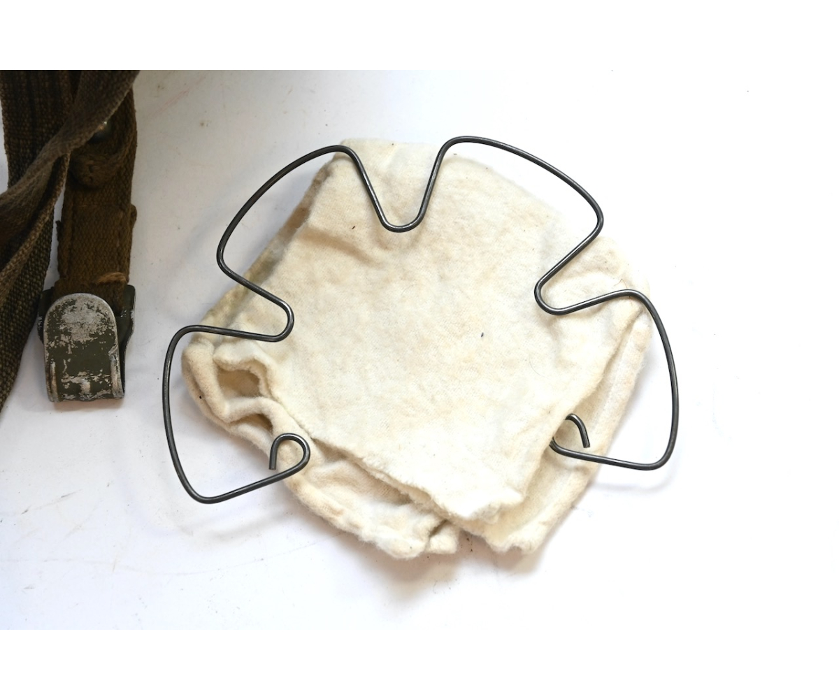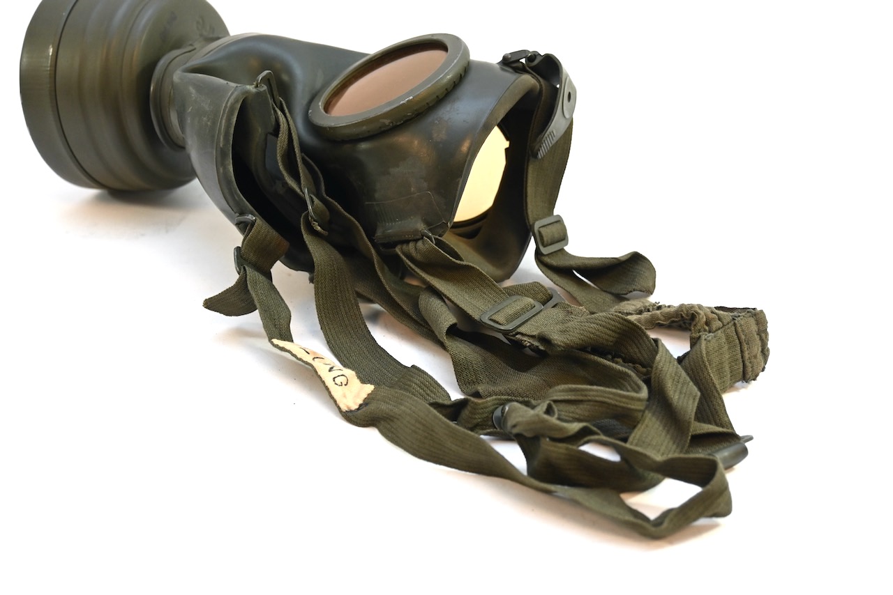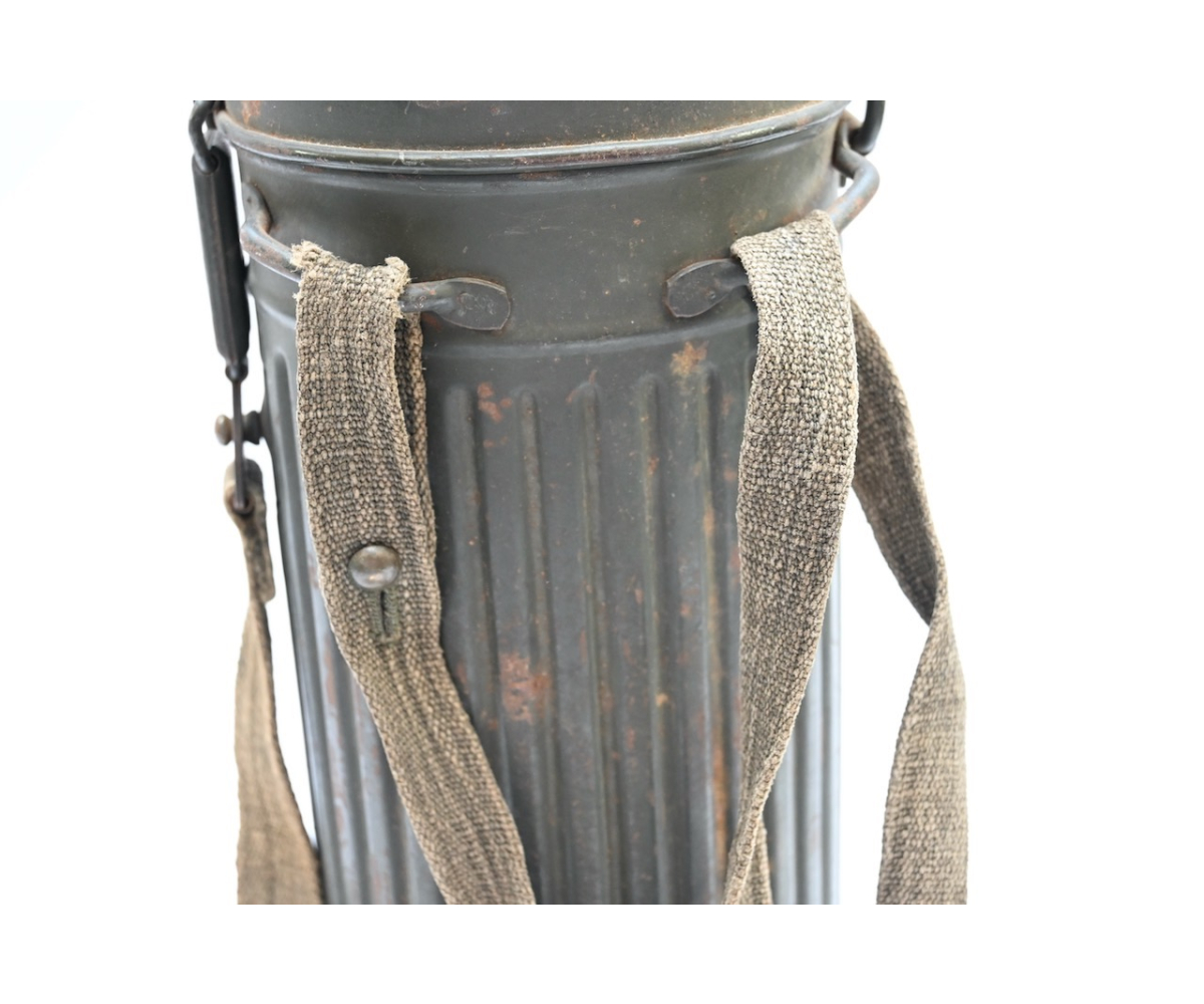 The gasmask is also in great condition. The Canvas is supple and it's complete with straps and filter. There is also a nametag of Lung attached to one of the straps. Both the gasmask (1942) and the filter (1942) are multiple marked. The set comes with it's retaining spring and cleaning cloth. Overall a very nice set!