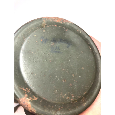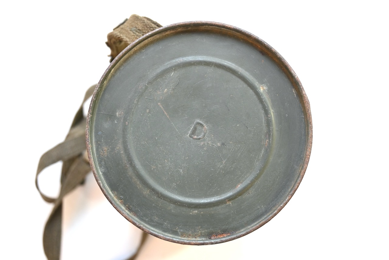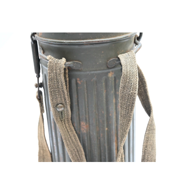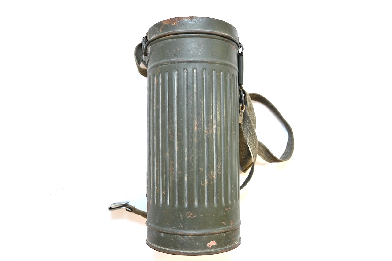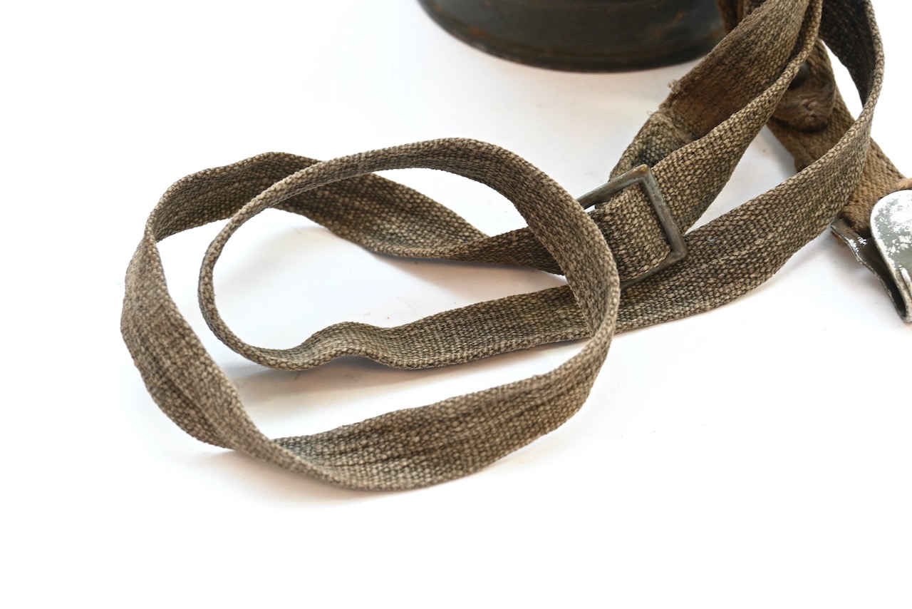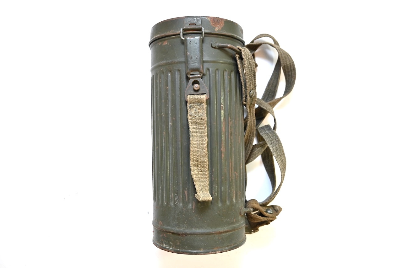 The overall condition of the set is excellent. It shows normal signs of use. The canister contains 95+% all of it it's original color. Complete with the long and short strap. The canister is maker marked frn42 which means it was produced in 1942. On the lid of the spare glasses there is a label that says Gefr.Lung (Gefreiter) and L38673 which is a Feldpostnummer and relates to the 3. Kompanie Luftgau-Nachrichten-Regiment 8. In November 1941 this regiment became Luftgau-Nachrichten-Regiment Kiew and in in September 1942 Luftgau-Nachrichten-Regiment Charkow. Lung also wrote his name on top of the canister with pencil.