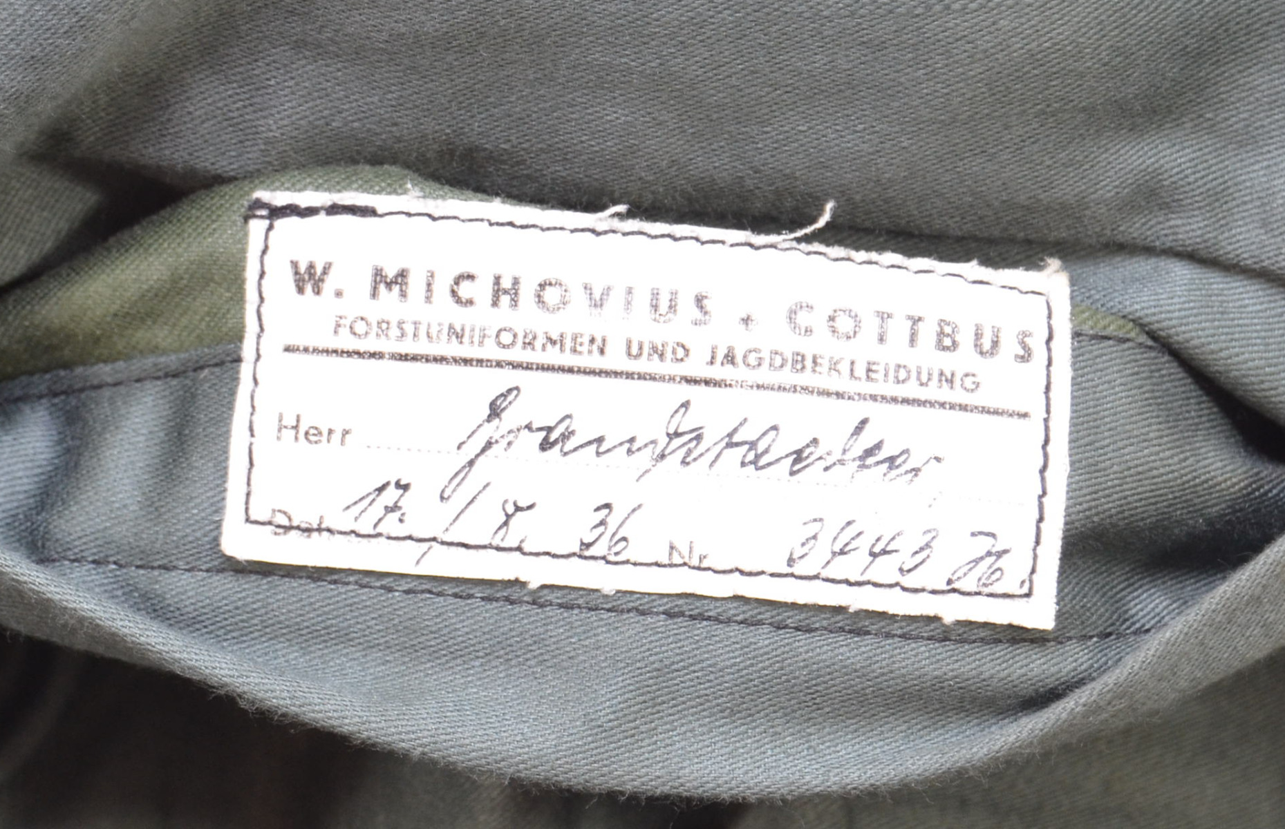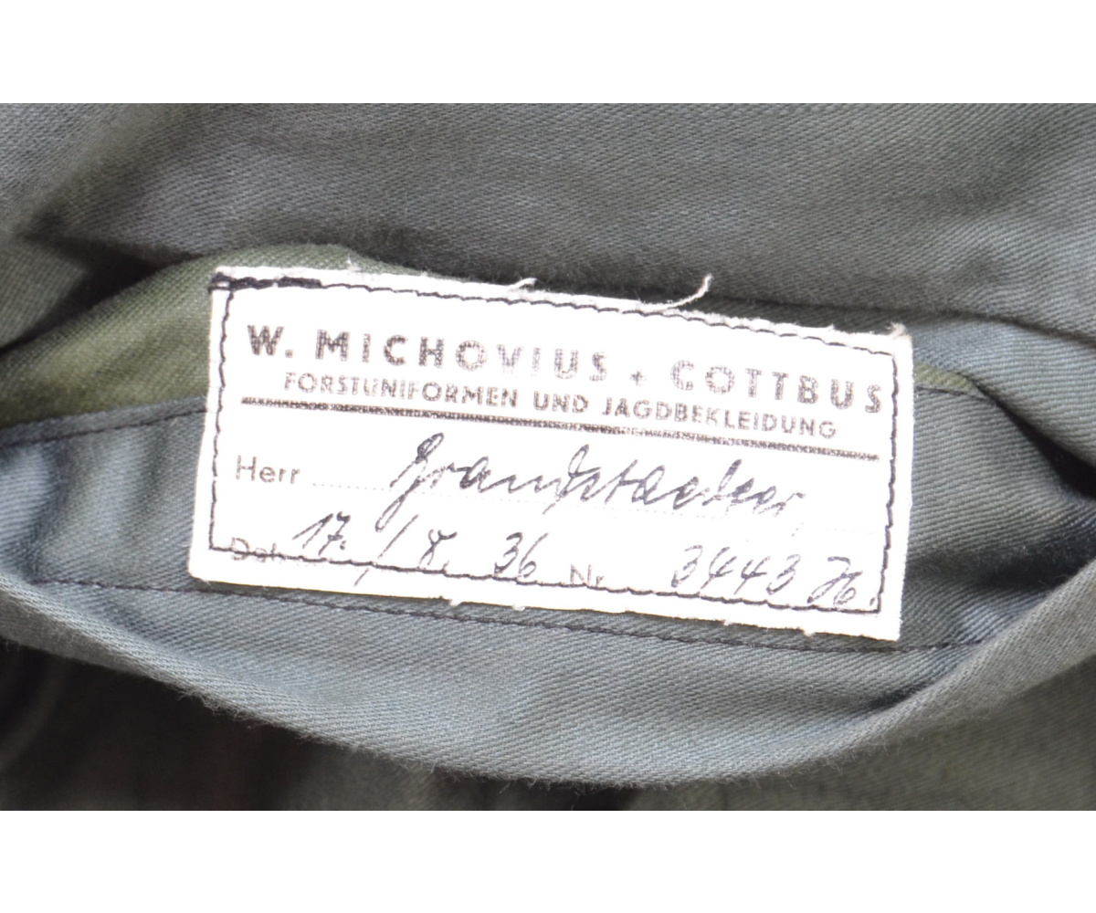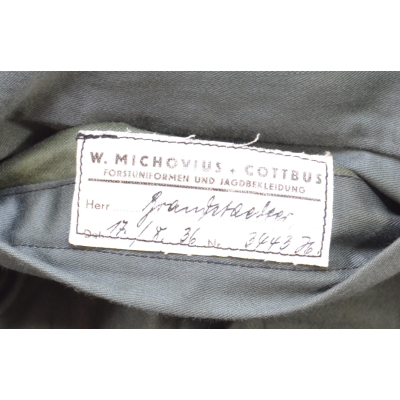 The tunic shows no signs of wear. Complete with all original buttons and insignia. The makers label of 'W.Michovius' from Cottbus is present. Inside the inner pocket is a nametag attached and its dated 1936. The size is approx and M (see the last photo for the sizes in cm). Hard to upgrade.