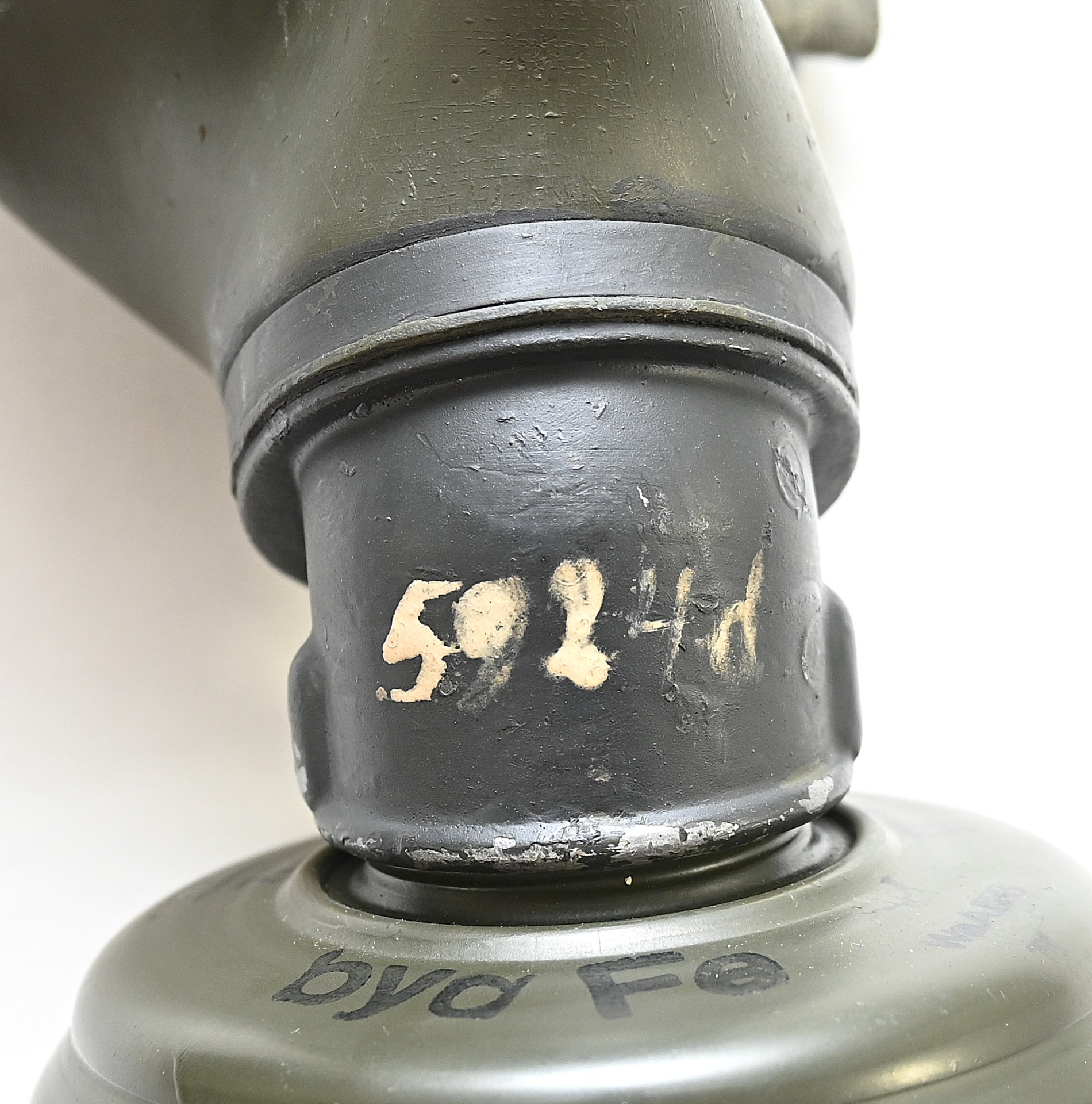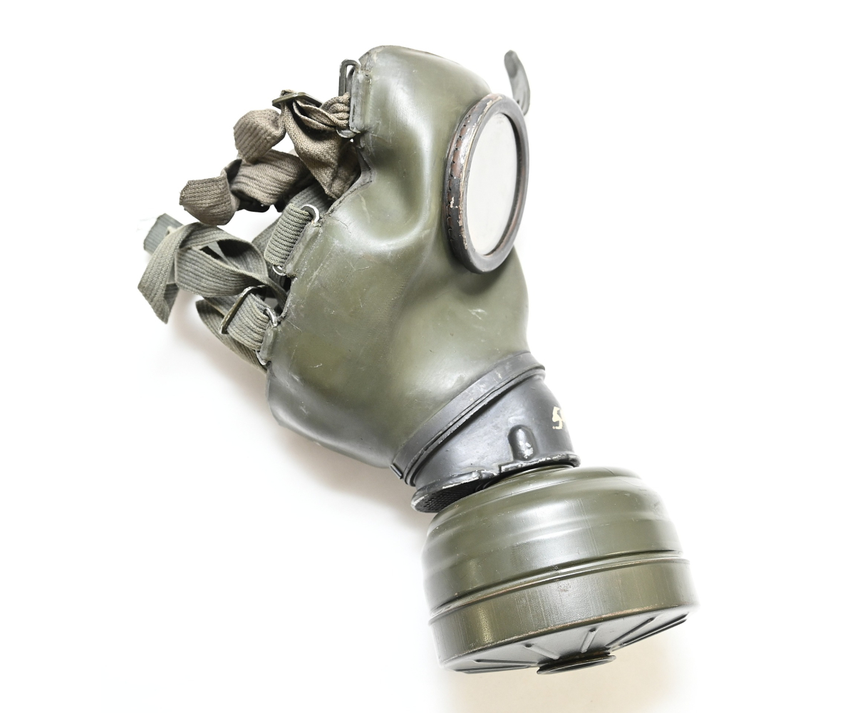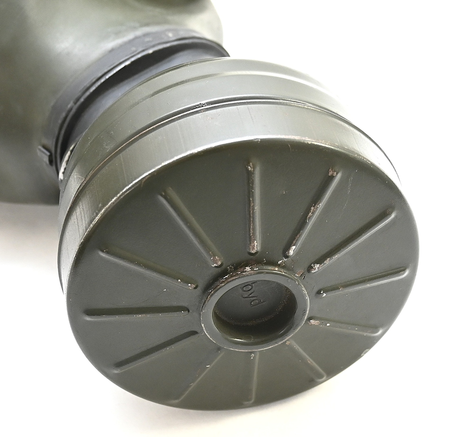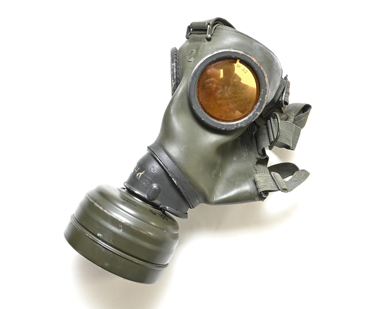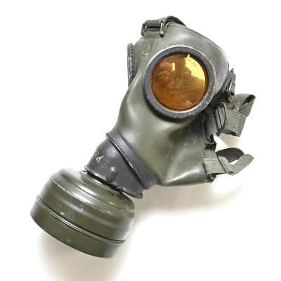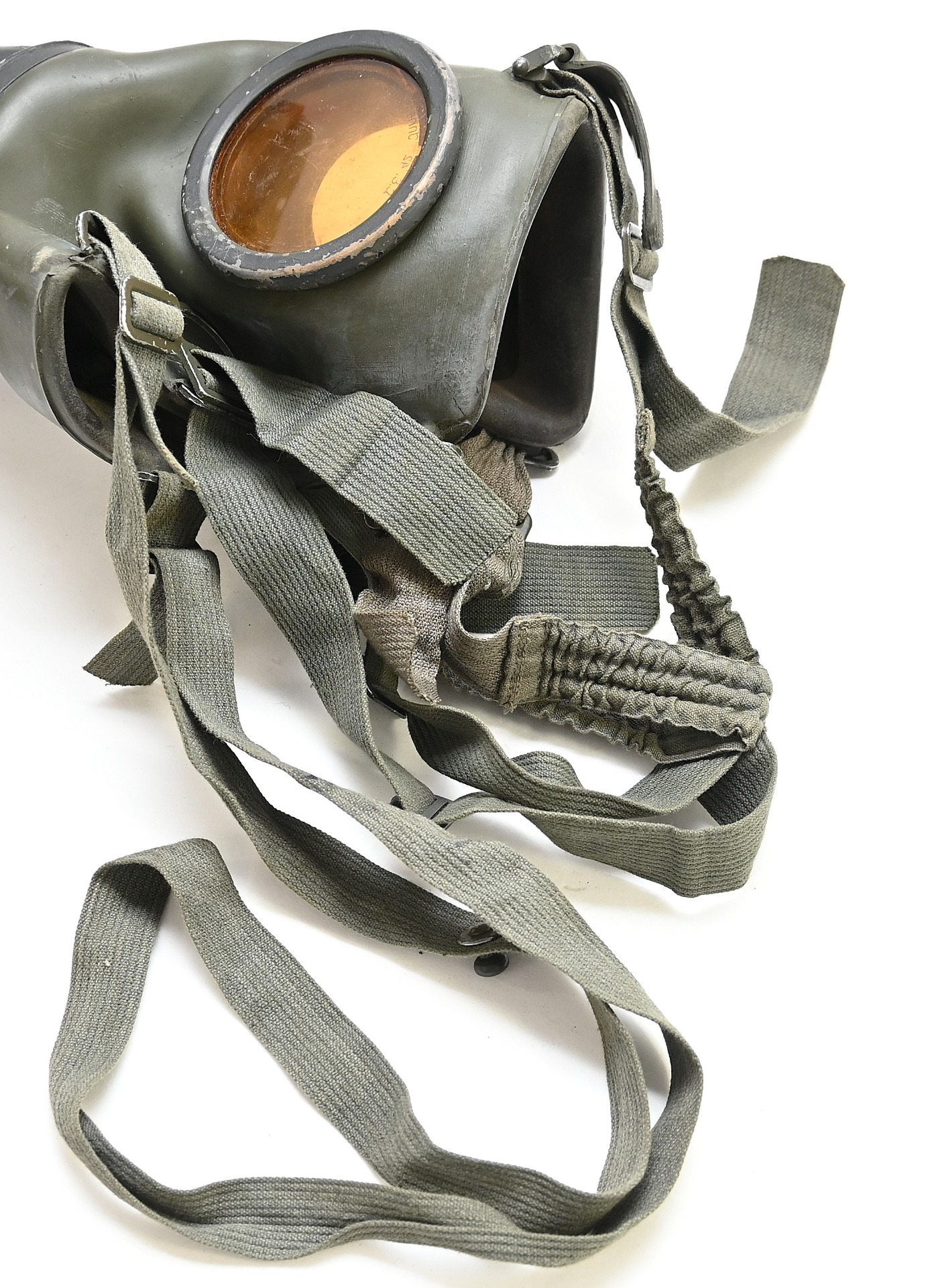 The overall condition of the set is very nice. It shows normal signs of use. The canister contains 90% of its original color. It's dated 1940 on the lid for the spare glasses and the nametag reads Oberfeldwebel Friedrich Wackler. Its complete with a long and short strap (1937). The gasmask is in absolute top condition and is the harder to find green rubber variant. It's complete with filter, all the straps and multiple markings. The set comes with spare glasses, a retaining spring and it's often missing cloth.