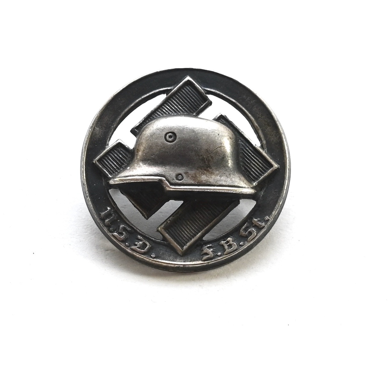 Very nice 'Nationalsozialistischer Deutscher Frontkämperbund Stahlhelm' (N.S.D.F.B.St.) member's pin in worn, but excellent condition.