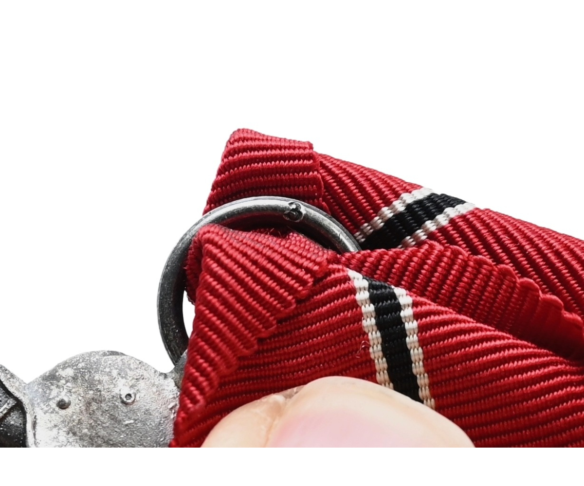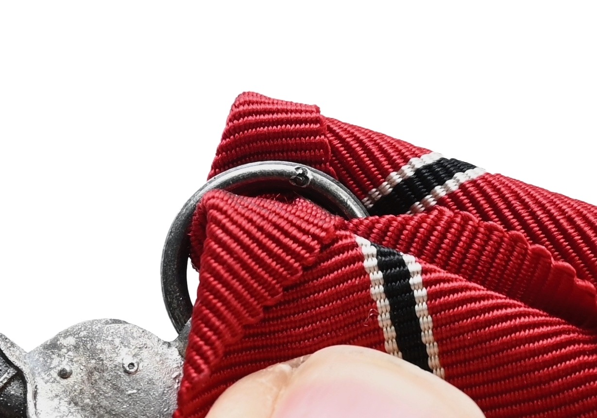 The overall condition of both the medal and ribbon is good. The ring is marked with the number '3' what means it was produced by 'Wilhelm Deumer' from 'Lüdenscheid'.