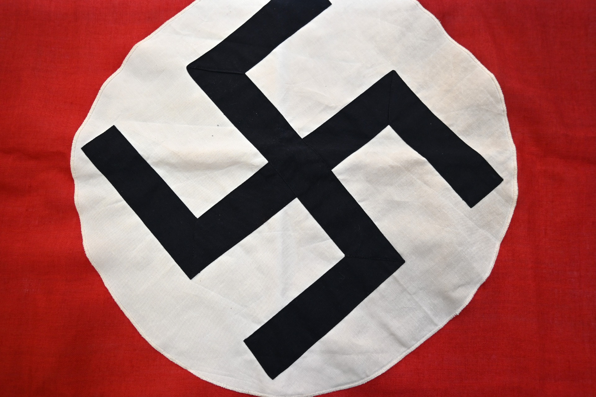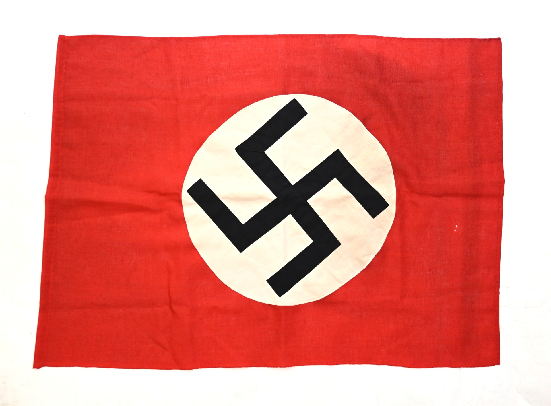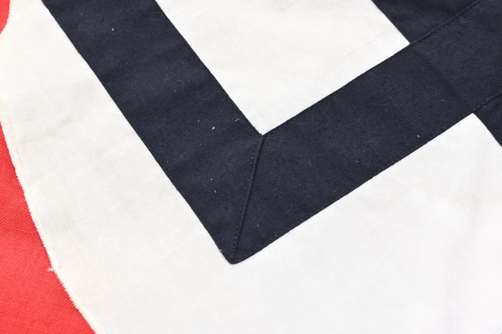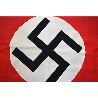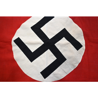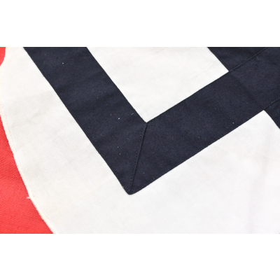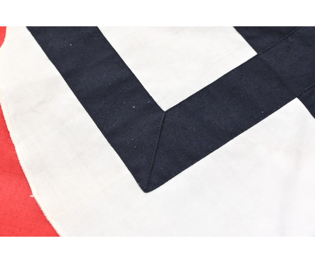 The flag shows overall normal signs of wear. It's a double sided piece. The size is approx. 66cms*89cms. Good size for in a display cabinet.