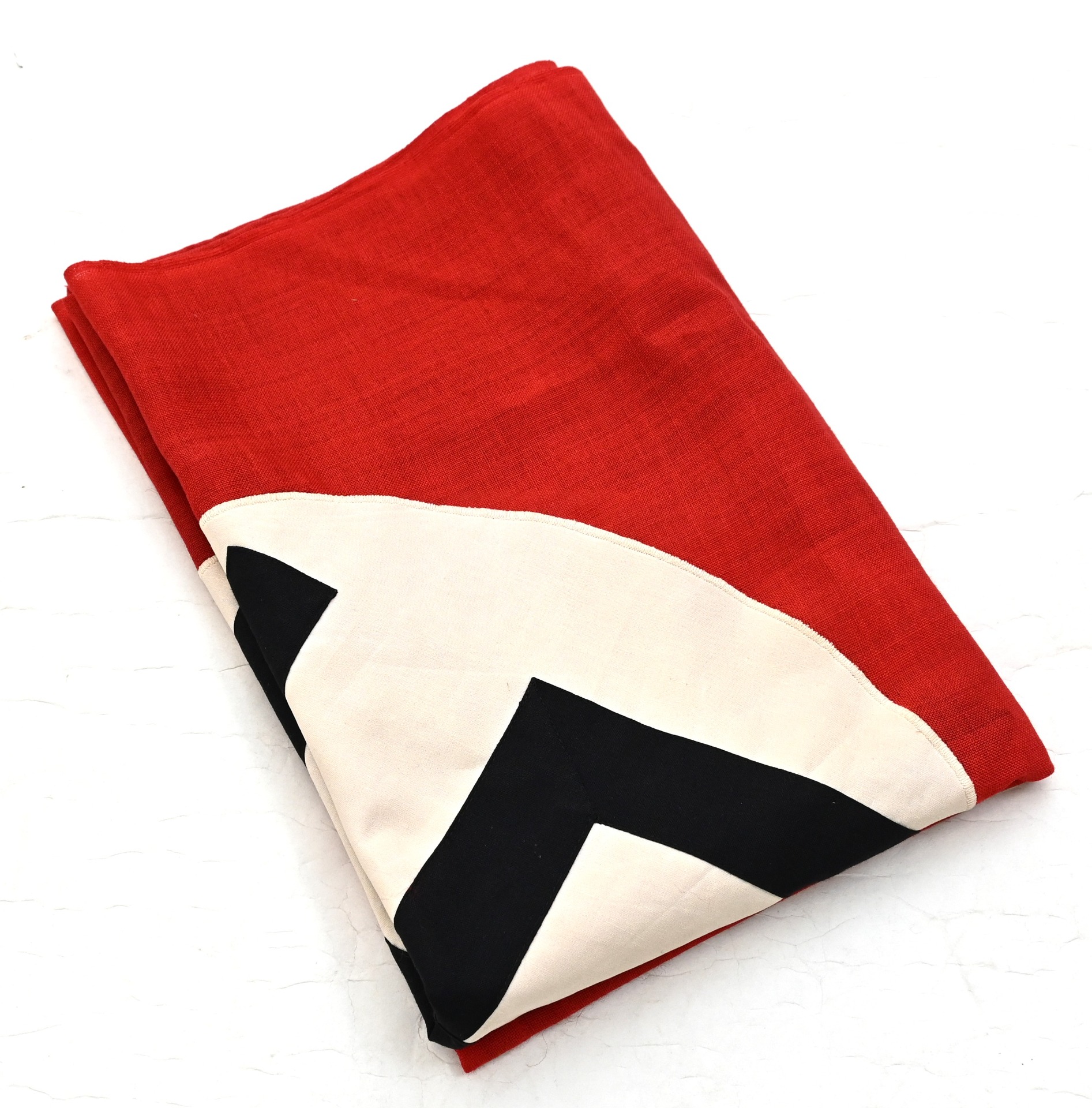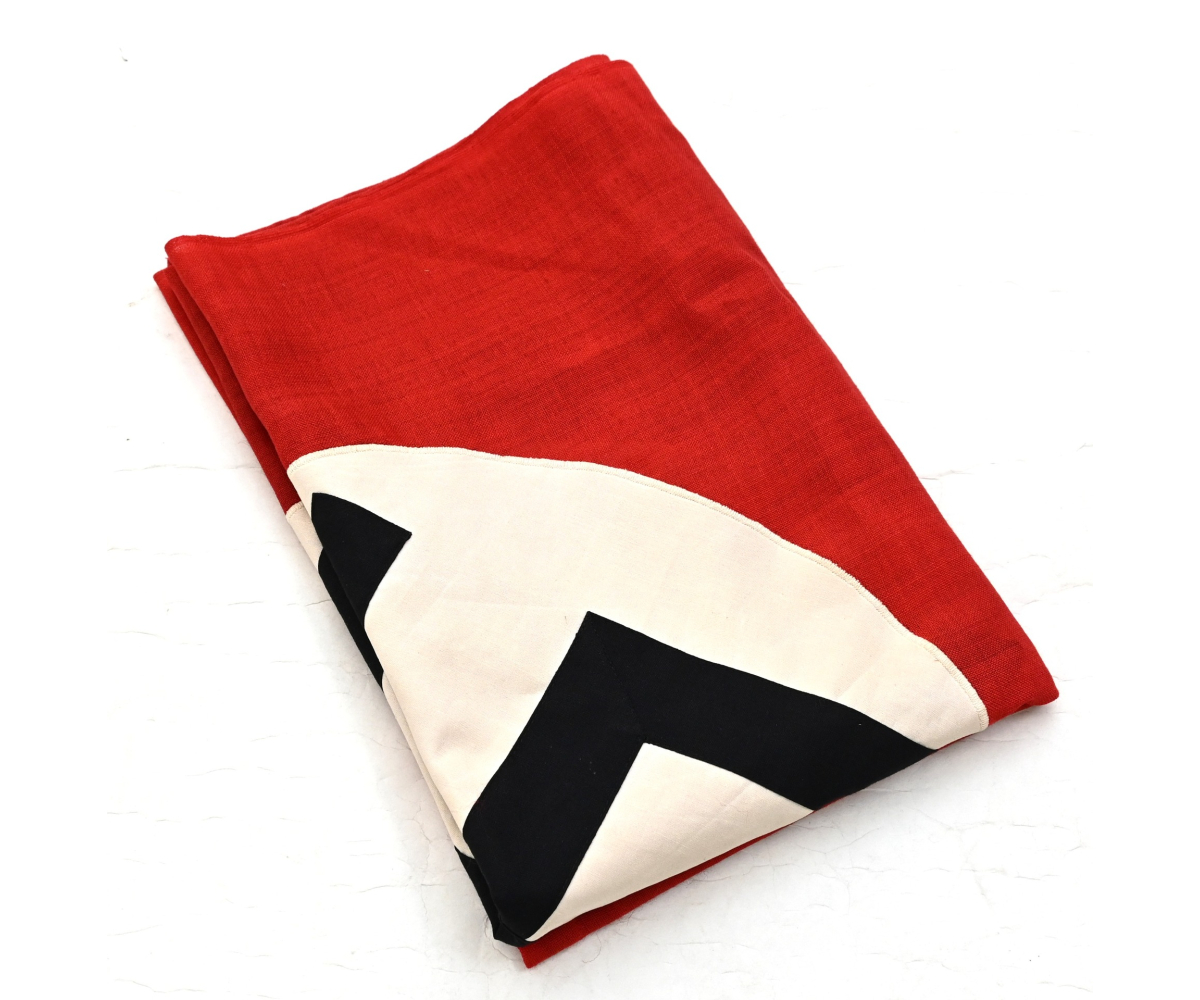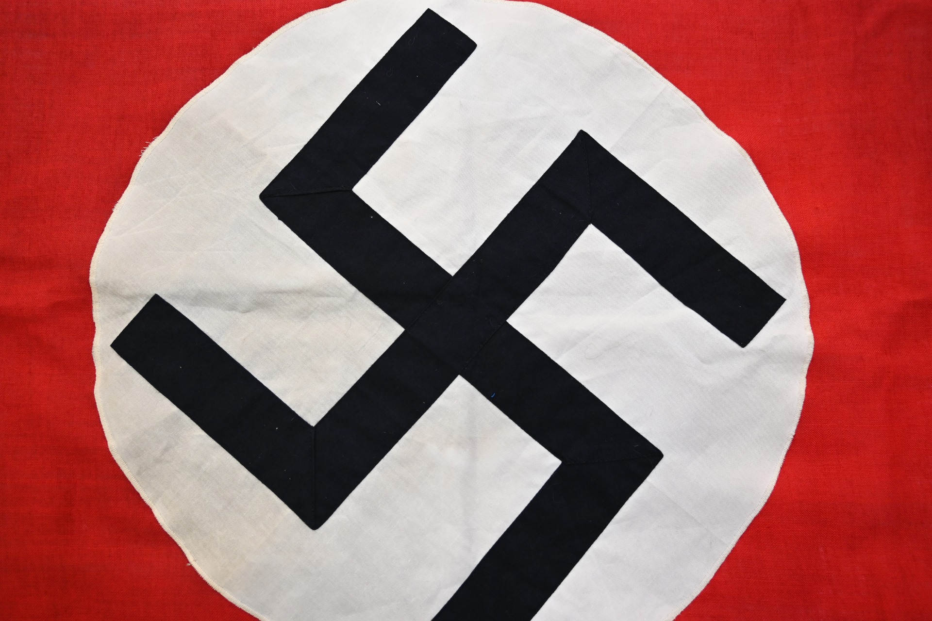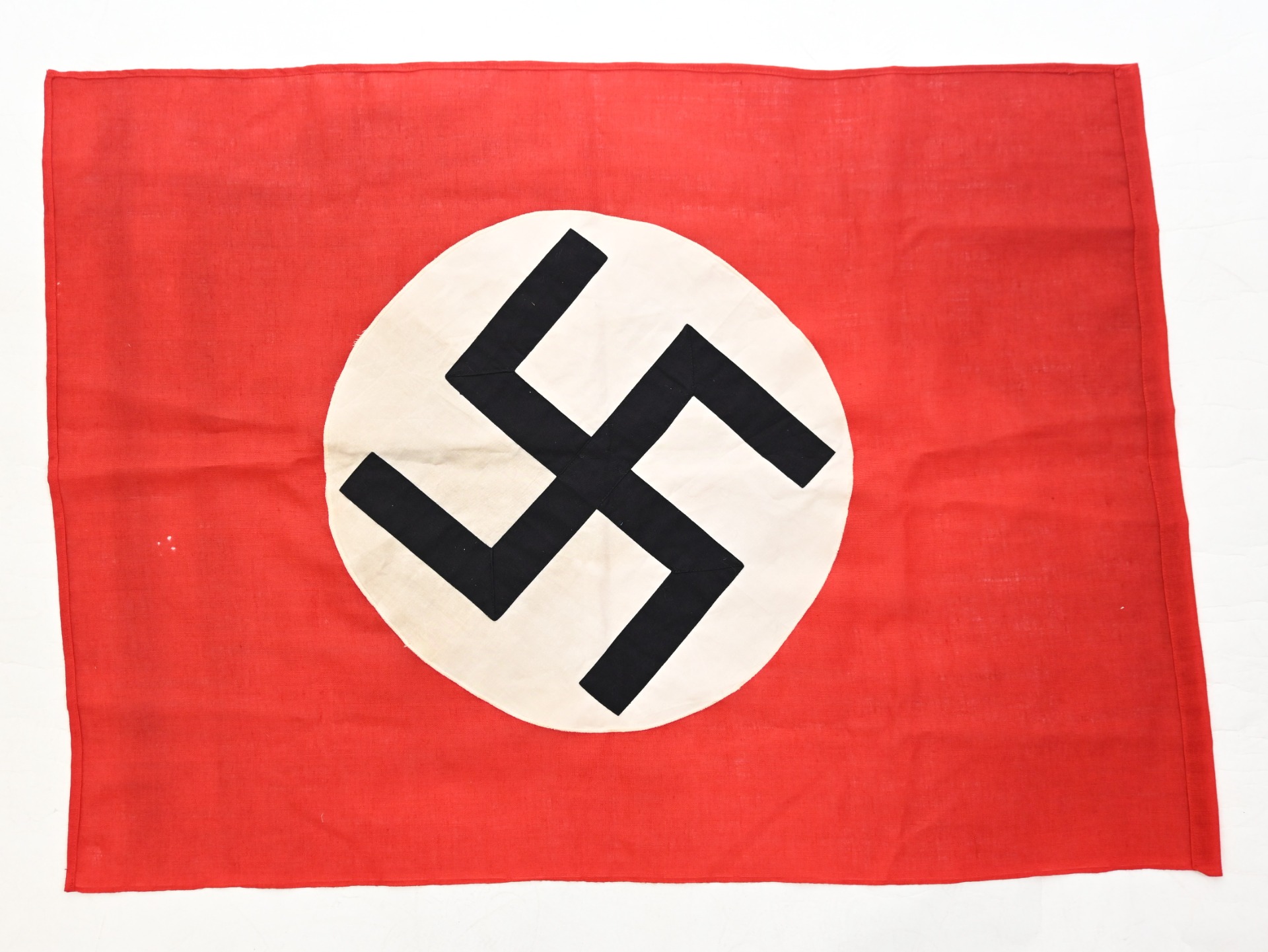 The flag shows overall normal signs of wear. It's a double sided piece. The size is approx. 66cms*89cms. Good size for in a display cabinet.