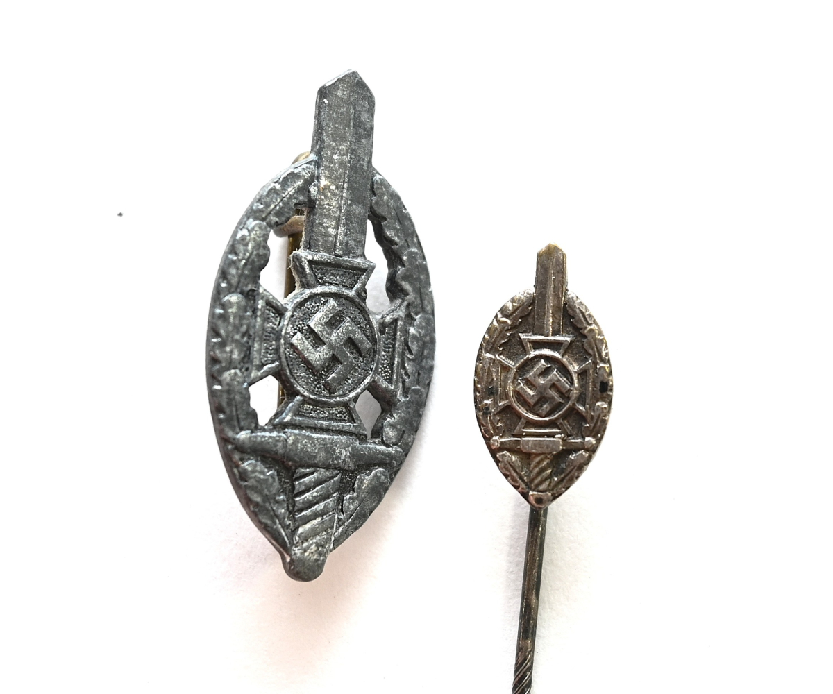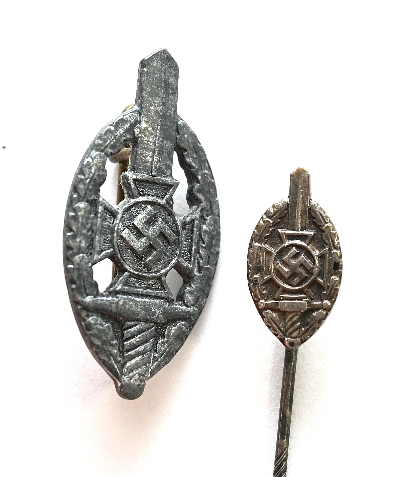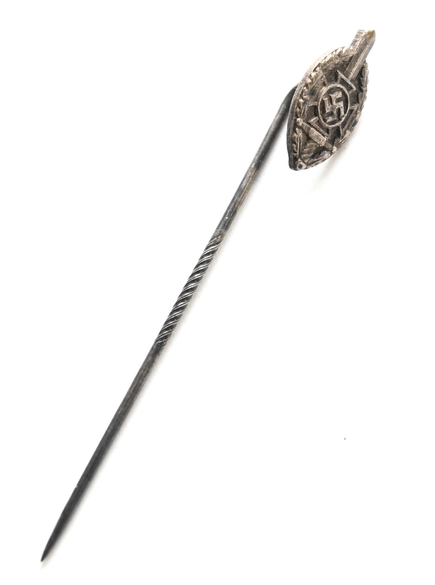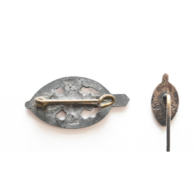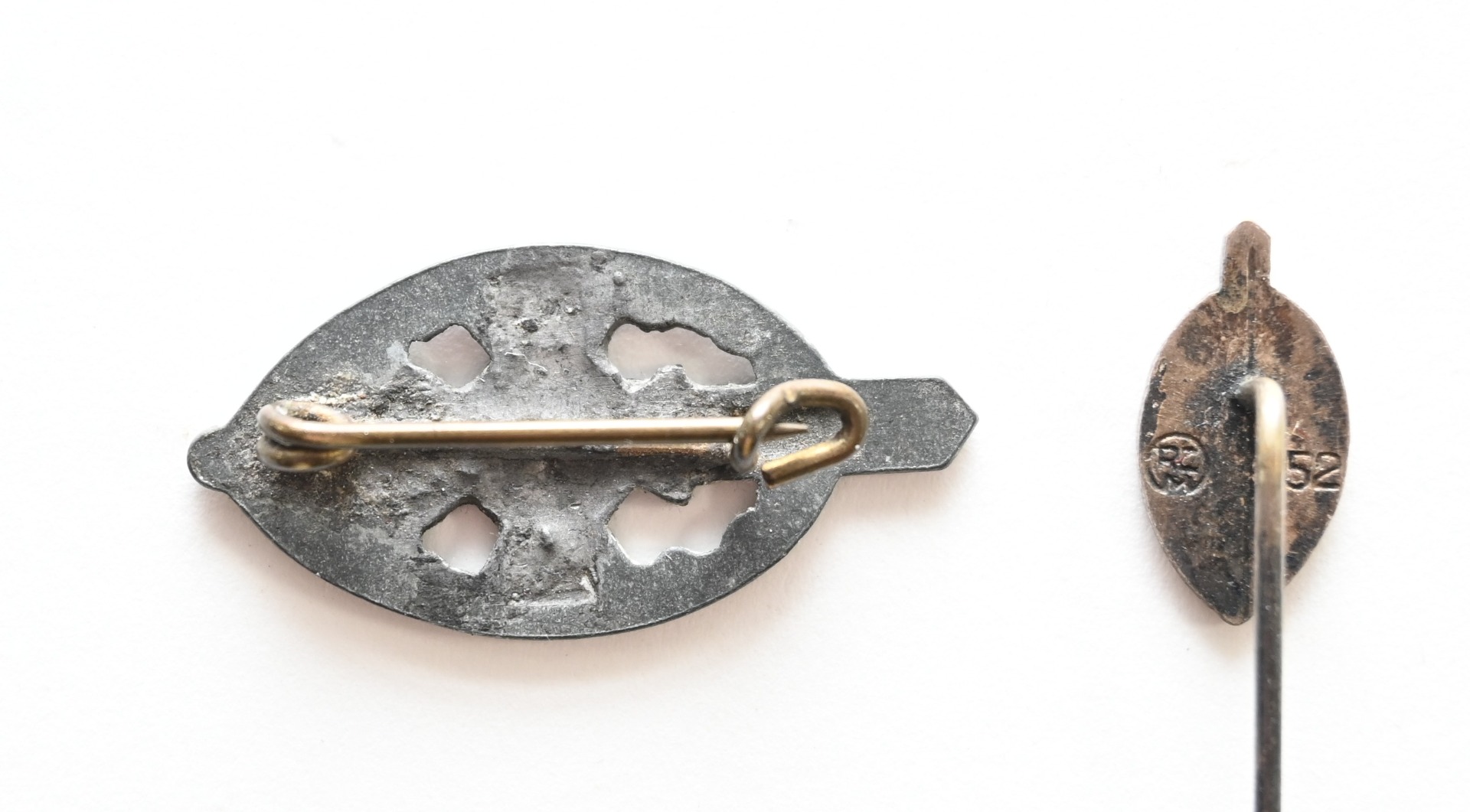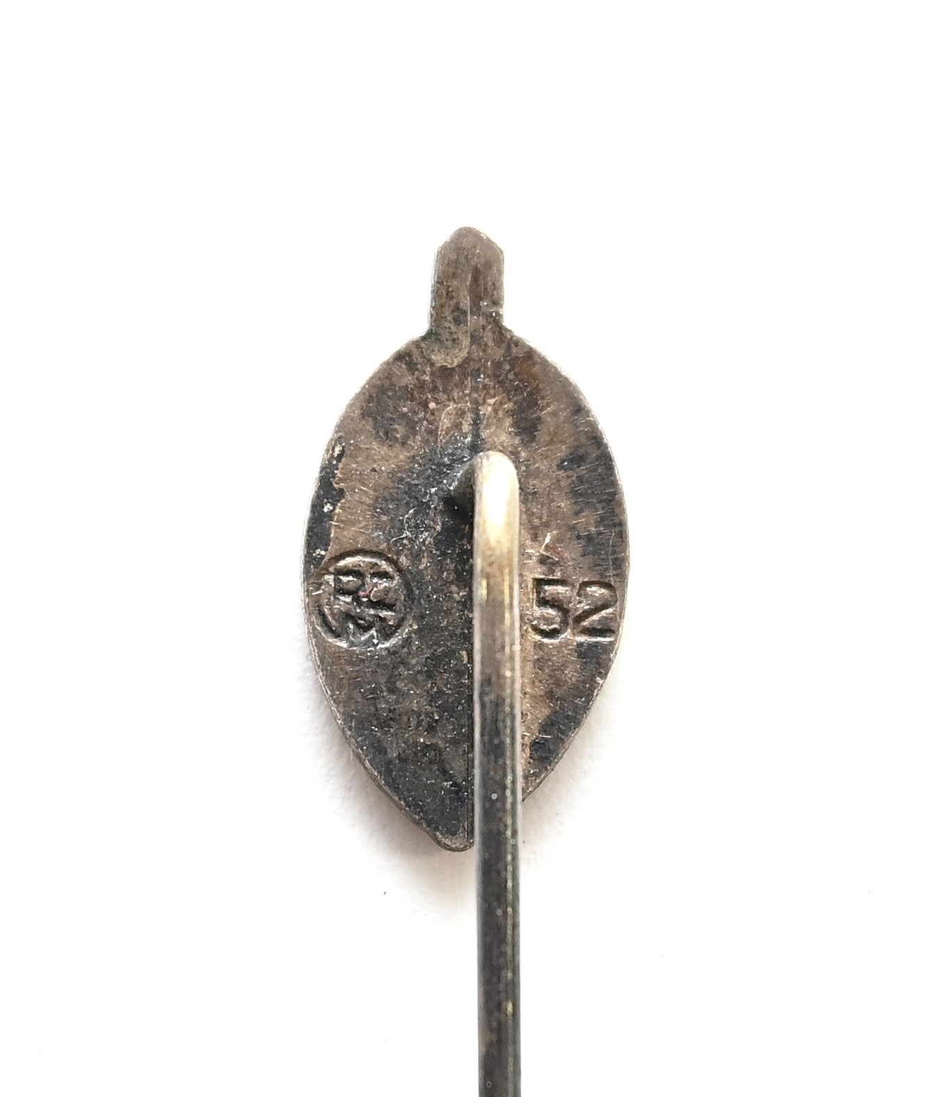 Both pieces shows overall normal signs of wear. The badge is complete with safety pin on the back. The stickpin is marked 'RZM' and '52'.